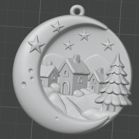 Mô hình trang trí Giáng sinh này có một ngôi làng mùa đông thanh bình nằm gọn trong vầng trăng lưỡi liềm. Những ngôi nhà nhỏ, những vì sao, đồi núi và cây tuyết tạo nên một câu chuyện ngày lễ ấm cúng trong một món đồ trang trí duy nhất. Mô hình in đẹp với màu trắng, đa sắc, hoặc tô điểm chi tiết bằng sơn. Mô hình dễ in và là một bổ sung tinh tế cho bất kỳ cây thông Giáng sinh lộng lẫy nào hoặc bộ quà tặng thủ công. Hoàn hảo để tạo ra một bầu không khí ngày lễ ấm áp.