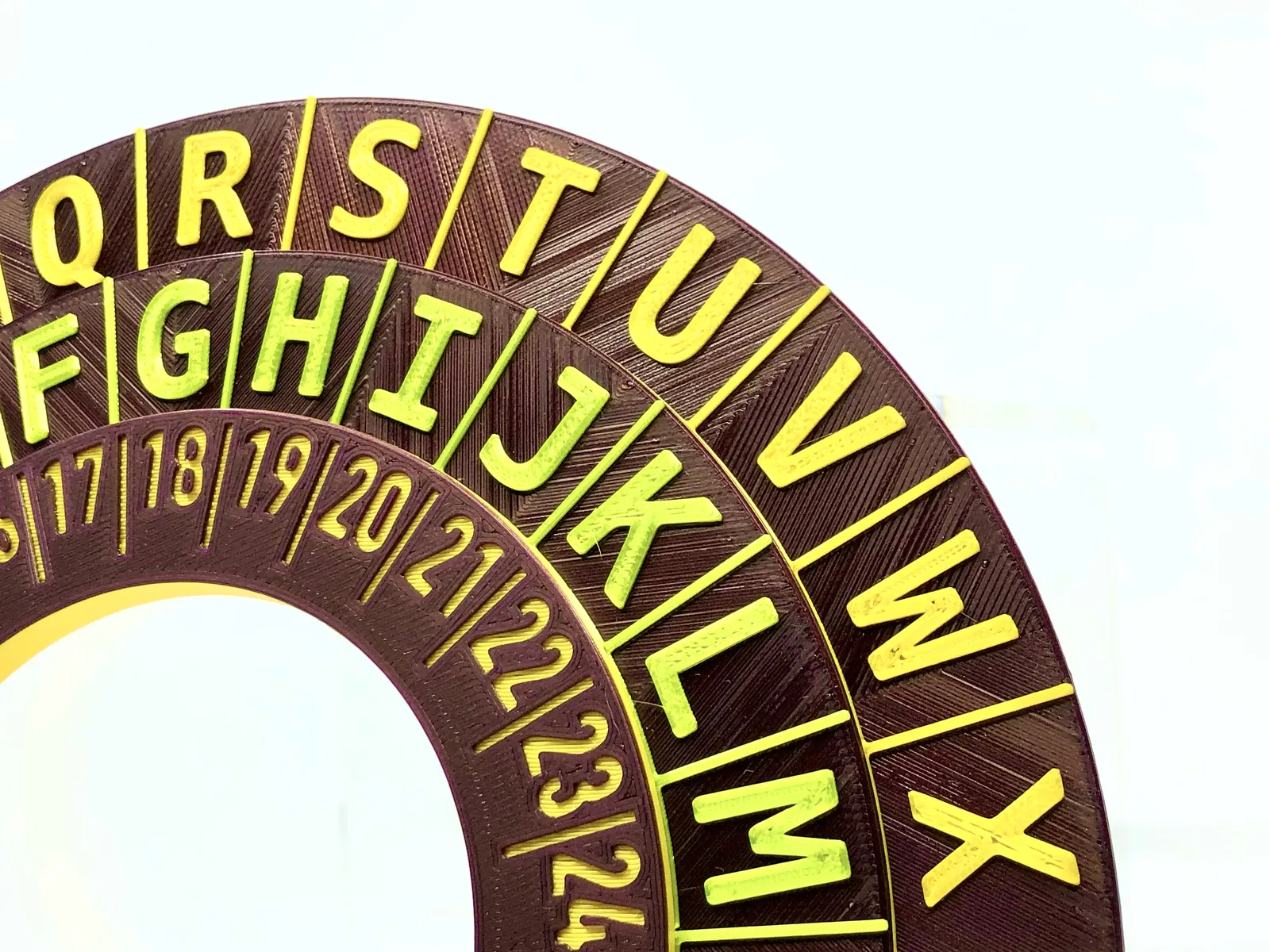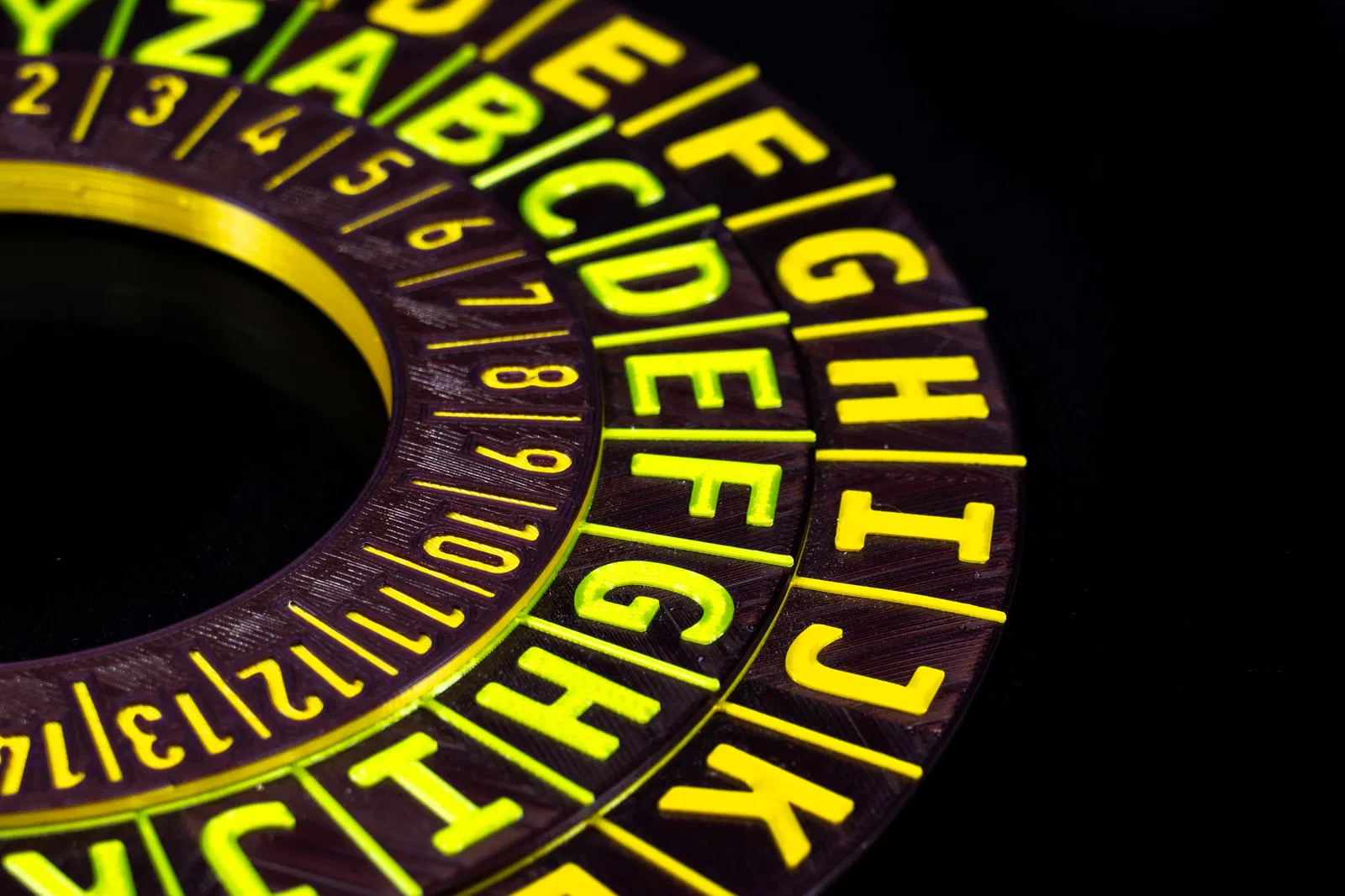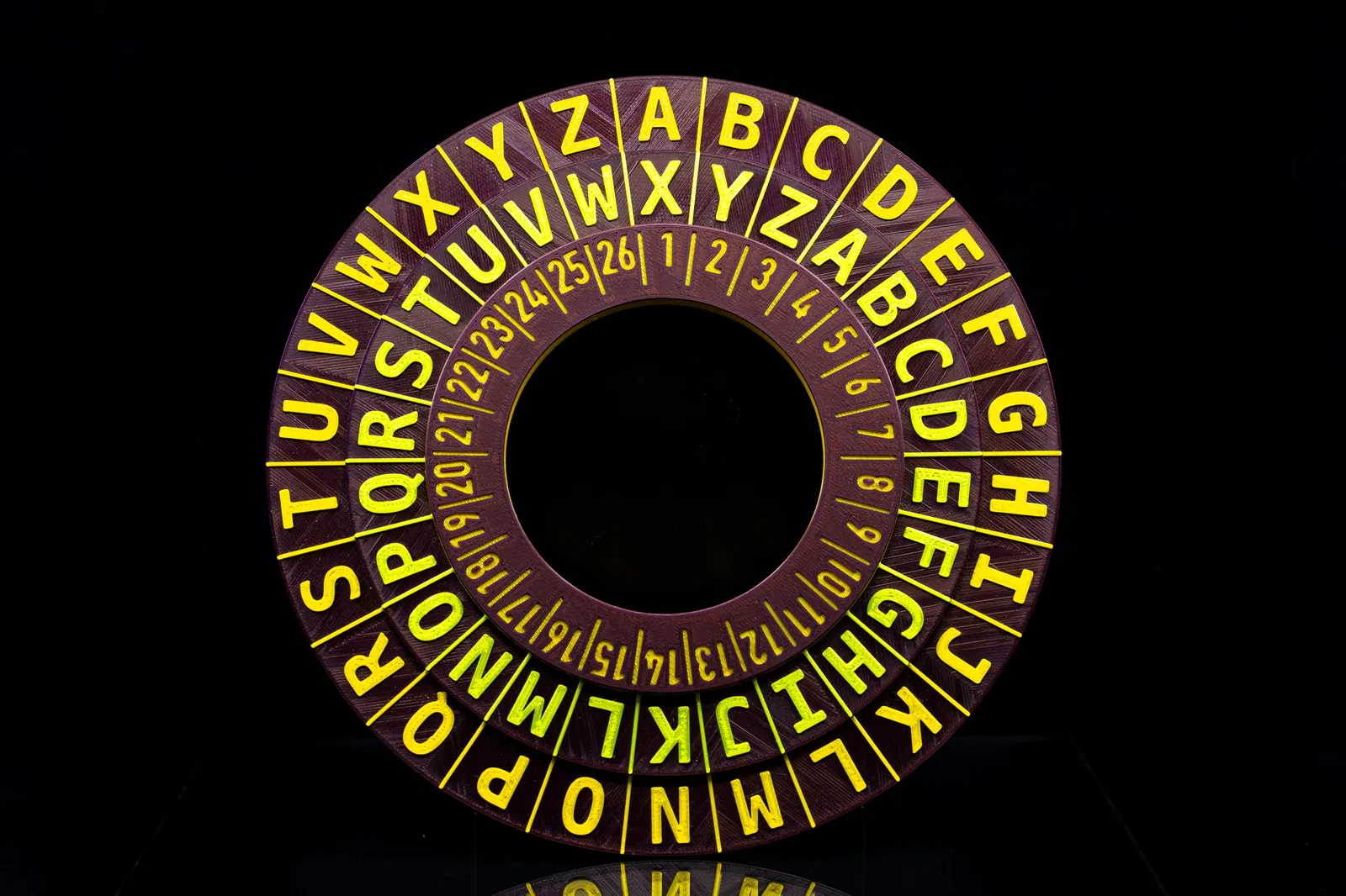 Chiếc nhẫn này là công cụ đơn giản để mã hóa hoặc giải mã văn bản bằng mật mã Caesar. Có thêm vòng xoay với số chữ cái để dễ dàng thay đổi vị trí dịch chuyển. Rất thích hợp để dạy trẻ em về mật mã học cơ bản. Các bộ phận in cần 2 màu, không cần supports. Lắp ráp đơn giản, có thể tùy chỉnh khả năng xoay.