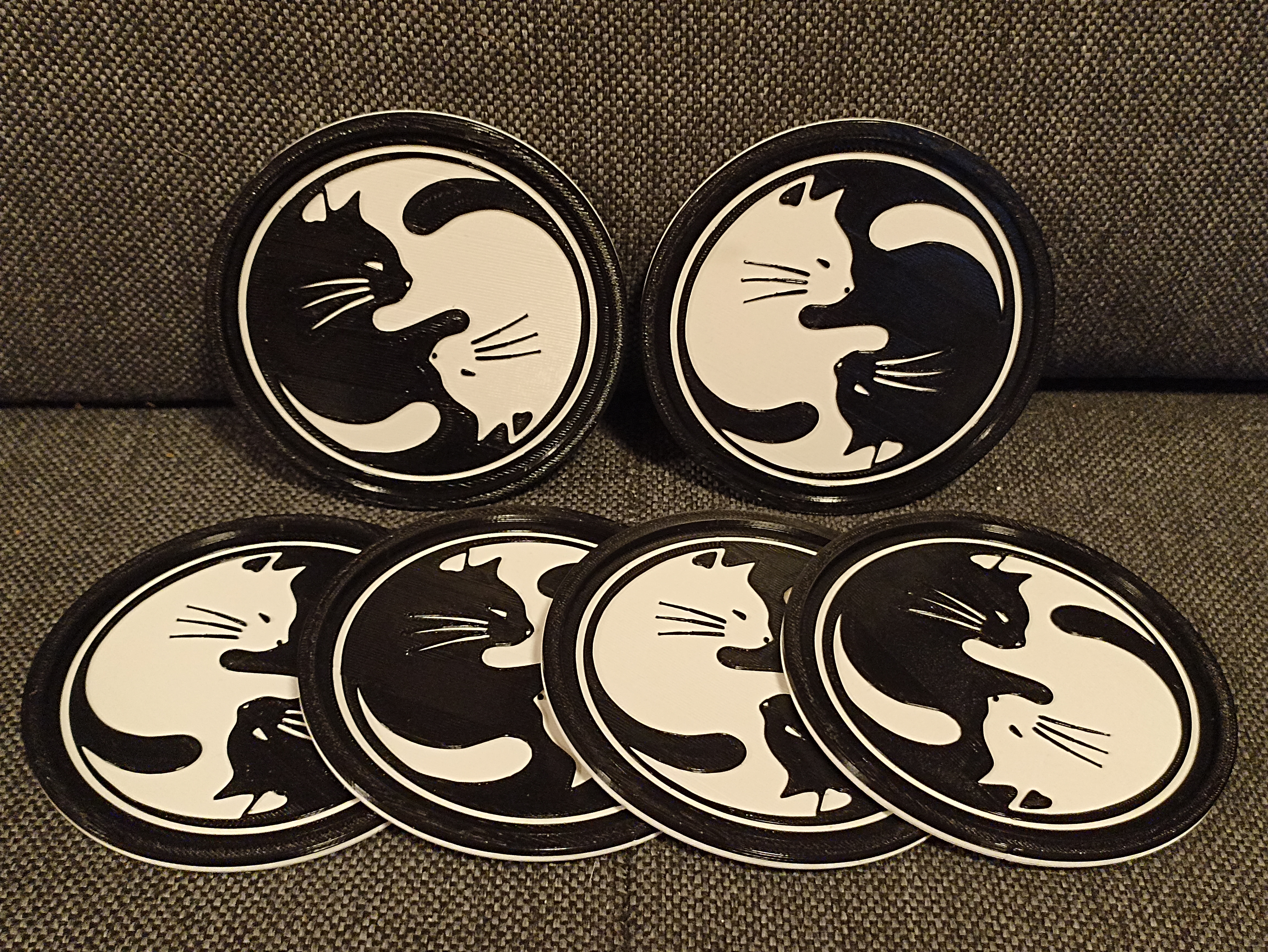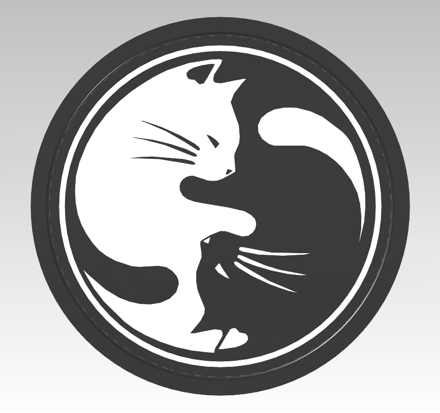 Miếng lót ly hình Mèo Âm Dương, chuyên dùng cho mấy bồ mê mèo nè. Kích thước: 100x4,8 mm. Mô hình dạng file .stl, tối ưu cho in 3D với cài đặt khuyến nghị sẵn có. Hoàn hảo cho bếp hay quầy bar, mang đậm phong cách 'đen trắng' độc đáo.