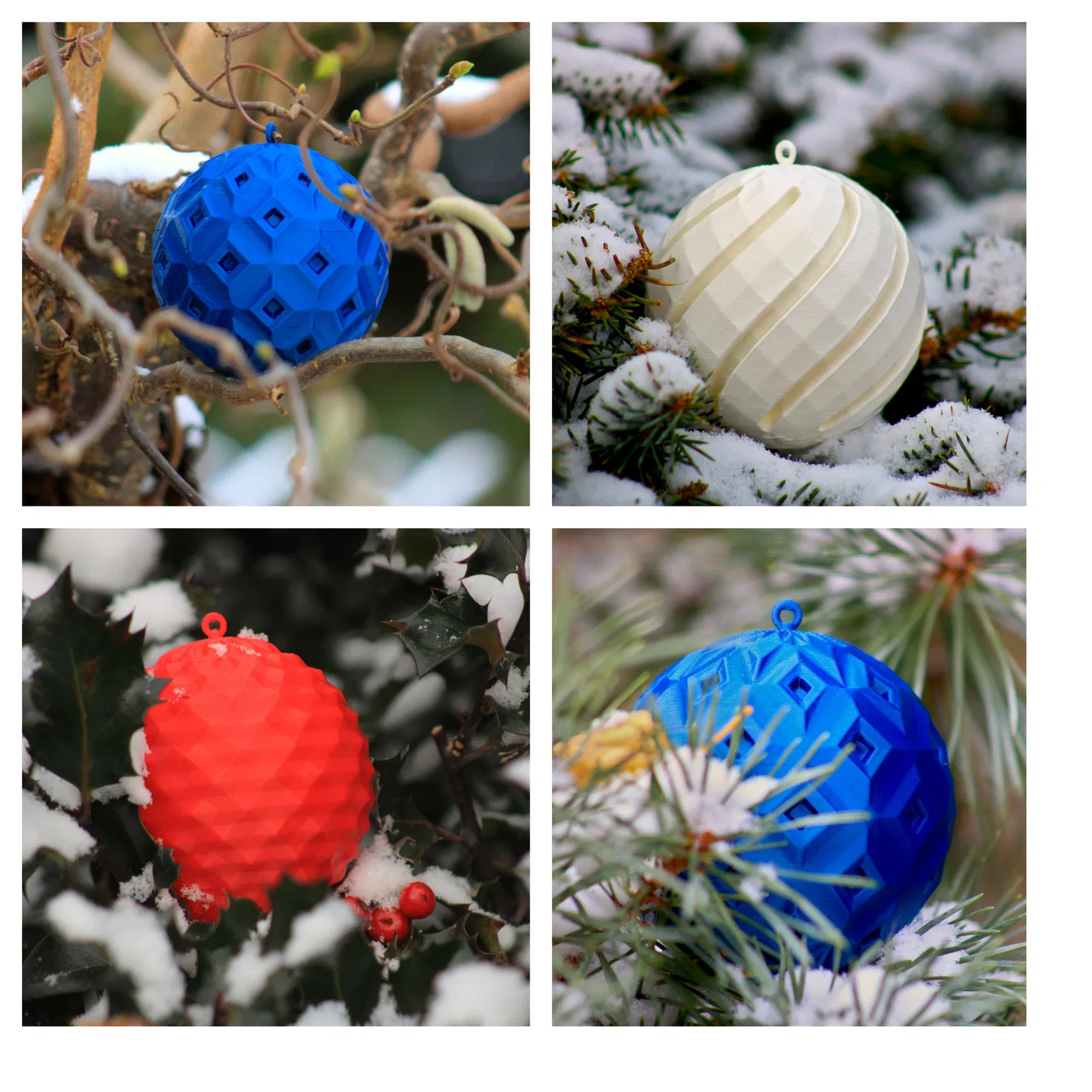 Trang trí Giáng Sinh, Trang trí Cây Thông Noel. Bộ sưu tập gồm 4 mẫu bóng trang trí Giáng Sinh độc đáo cho mùa lễ hội 2025. Tải về ngay để làm mới cây thông nhà bạn!