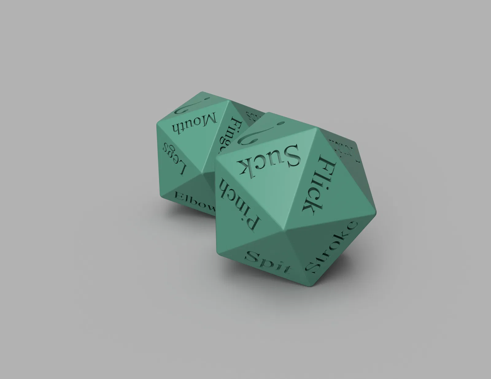 // Tui có thấy xúc xắc hẹn hò d6 rồi, mà thấy chán quá nên tui tự chế cái xúc xắc hẹn hò d20 thay thế. Chúc mọi người chơi vui và an toàn nha!