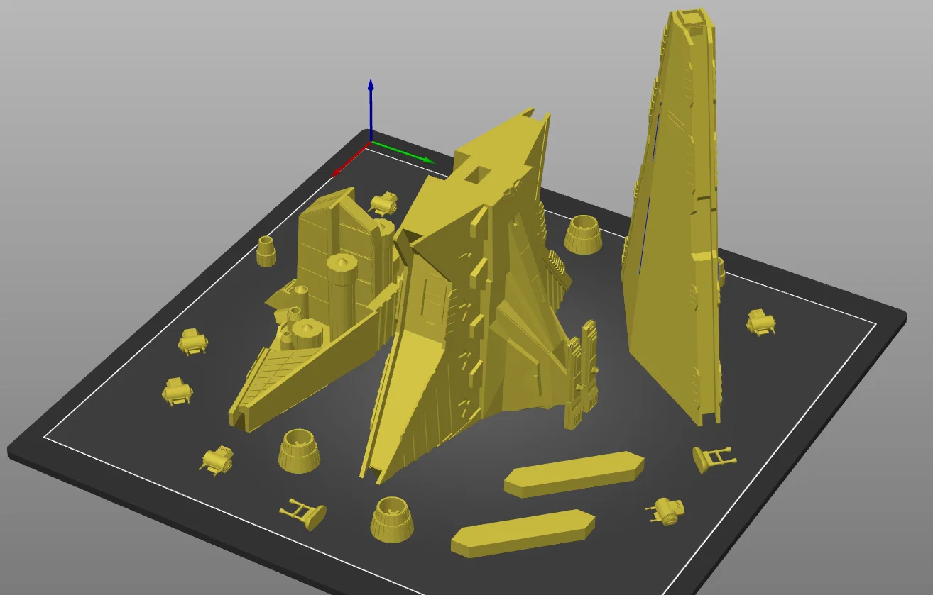 Tái tạo tàu Venator-class Star Destroyer, tối ưu hóa cho việc in dễ dàng hơn: chia thành 3 phần chính, ít cần vật liệu hỗ trợ nhất. Các khớp nối được thiết kế để dán lại với nhau sau khi in, mặc dù các bộ phận khớp nối có thể cần thu nhỏ một chút tùy thuộc vào máy in của bạn.