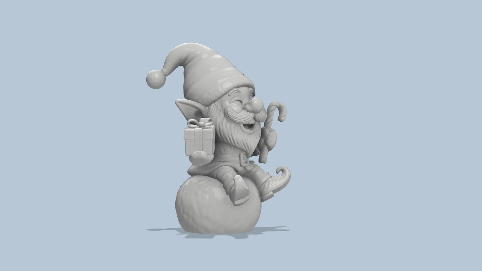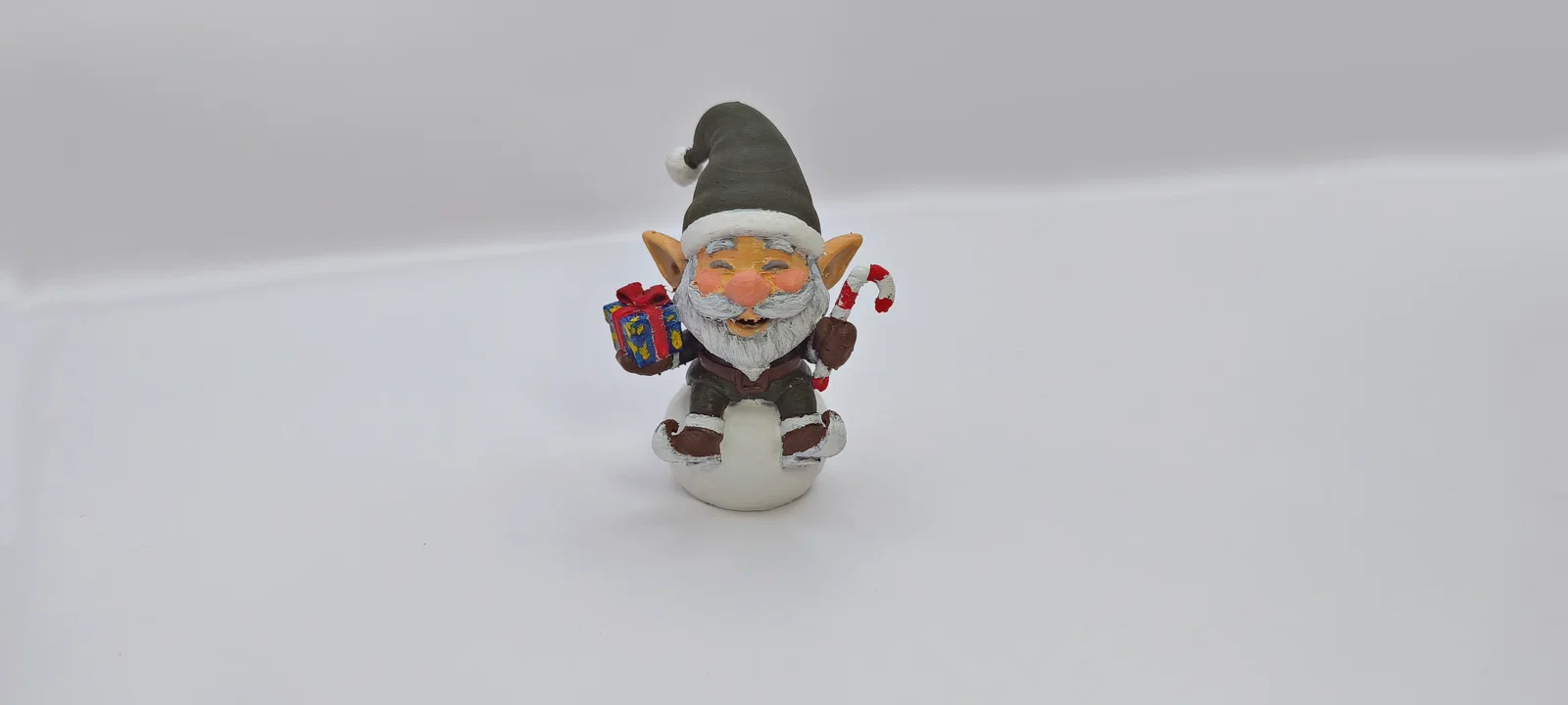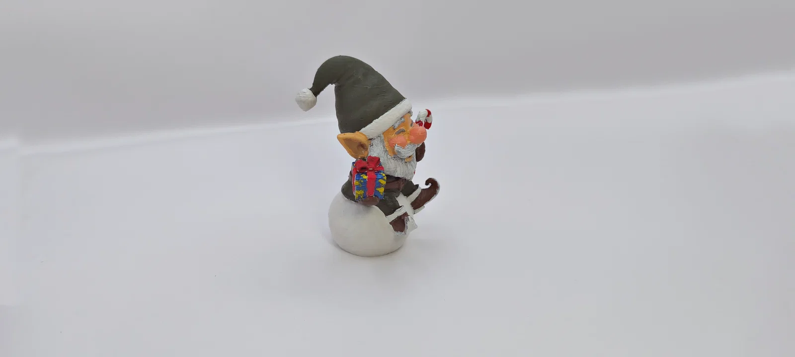 Một chú Yêu Tinh Giáng Sinh Ai với độ phân giải cao, ngồi trên cục tuyết, tay cầm kẹo và quà. Thích hợp làm đồ trang trí Giáng Sinh, mang lại không khí vui tươi, ấm áp cho ngôi nhà của bạn.