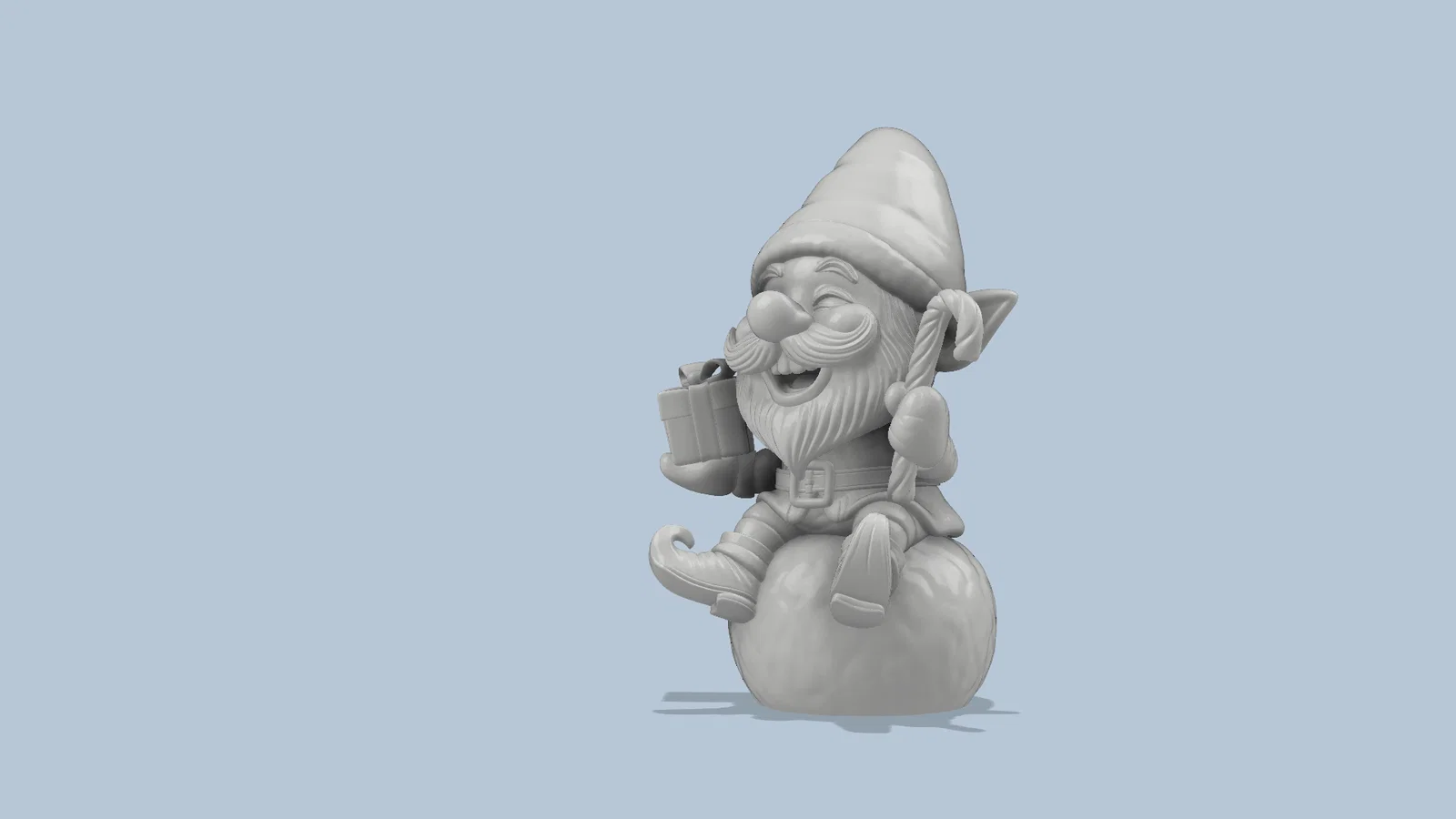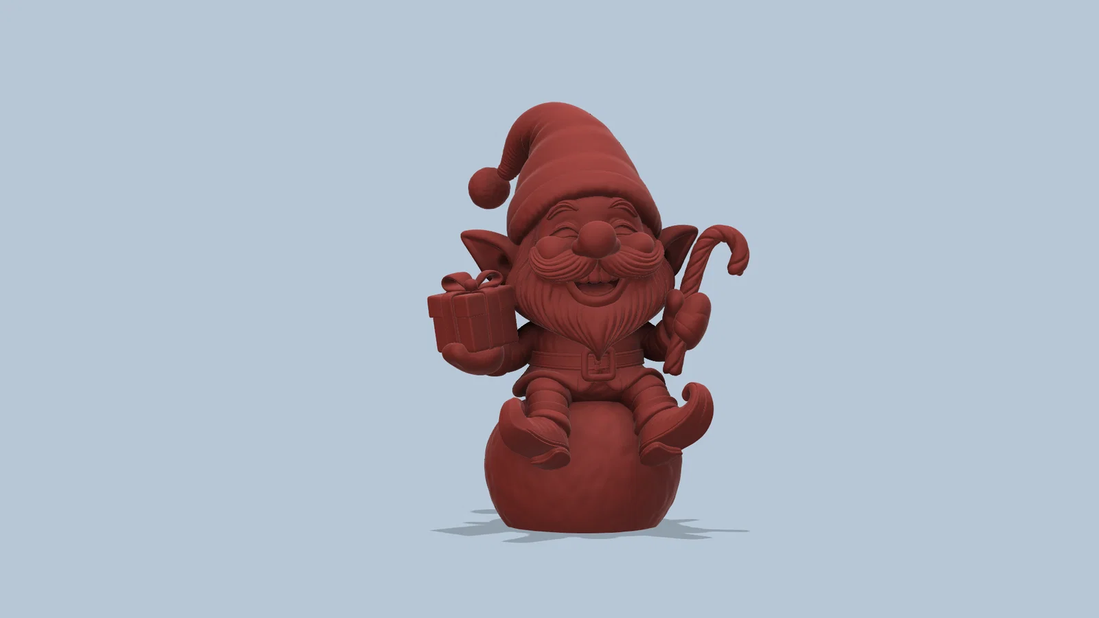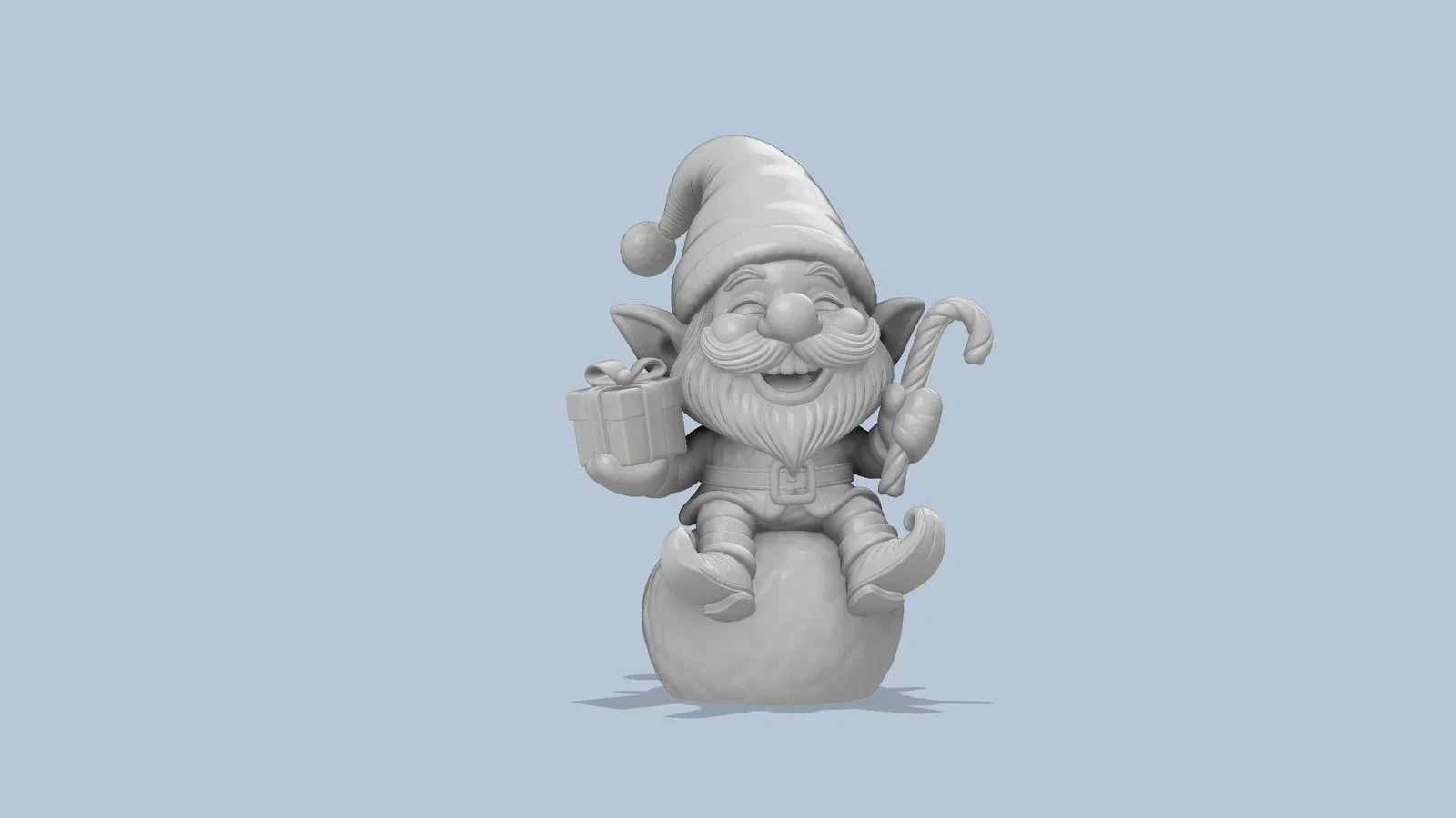 Một chú Yêu Tinh Giáng Sinh Ai với độ phân giải cao, ngồi trên cục tuyết, tay cầm kẹo và quà. Thích hợp làm đồ trang trí Giáng Sinh, mang lại không khí vui tươi, ấm áp cho ngôi nhà của bạn.