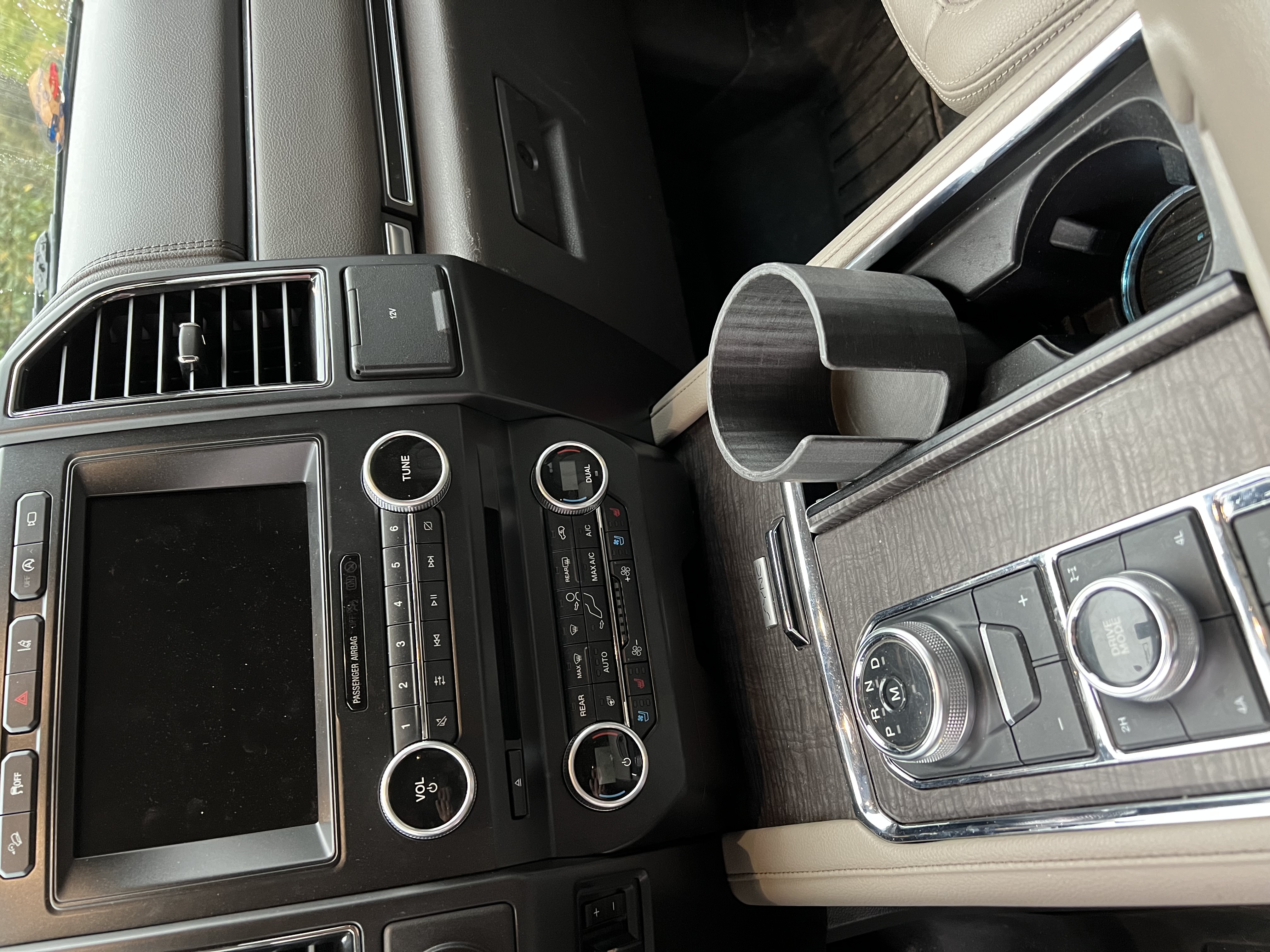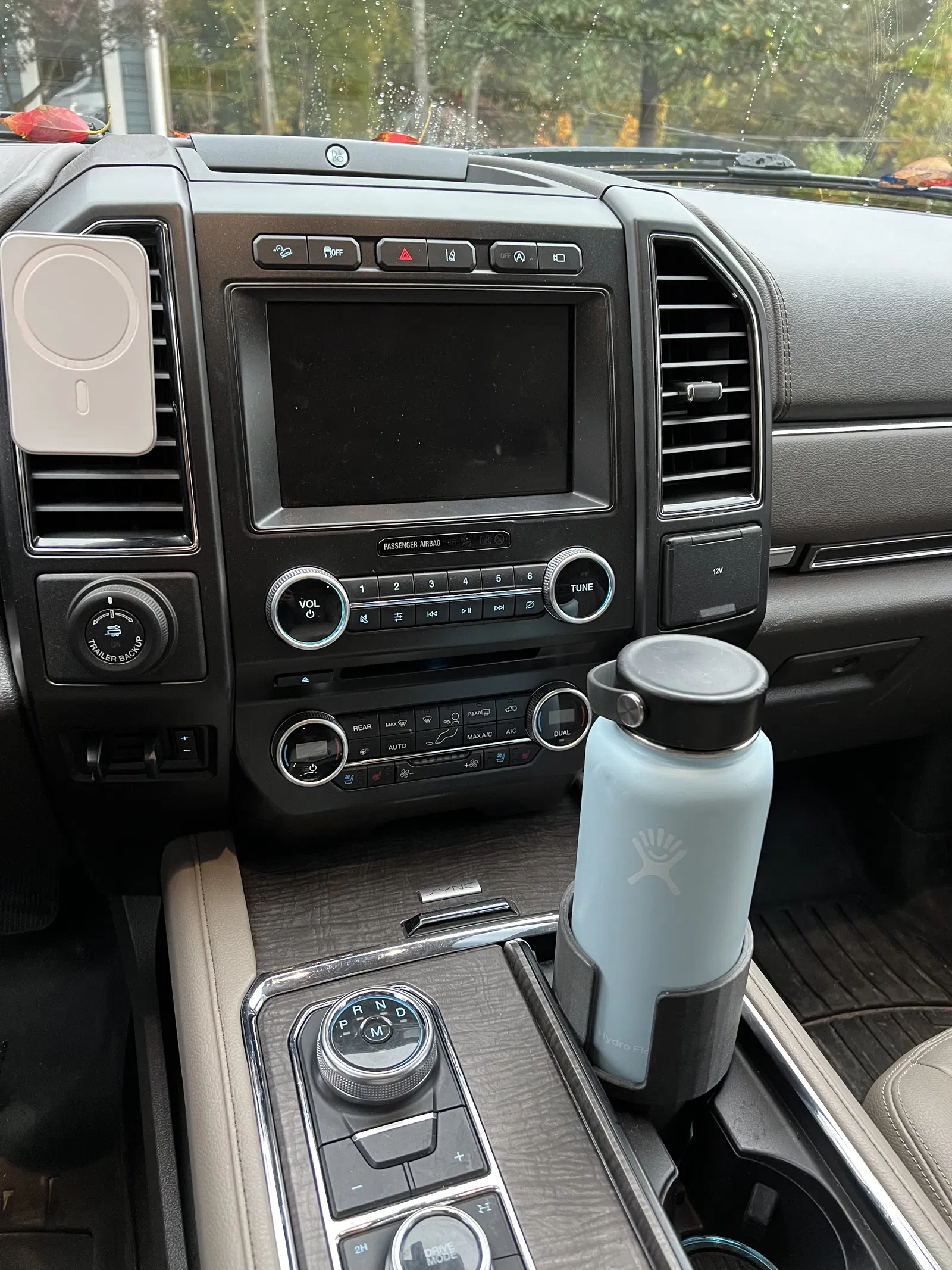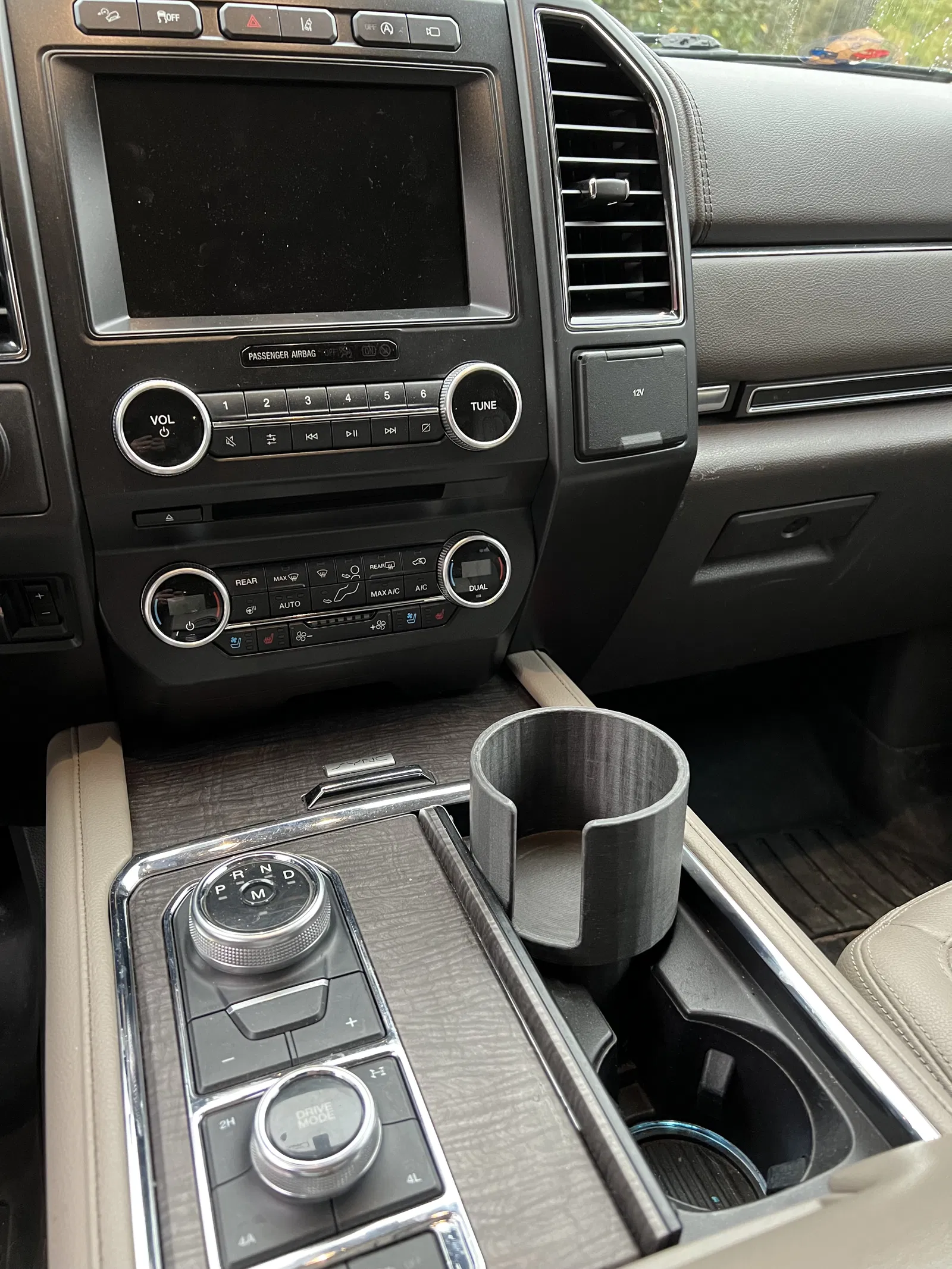 Giá đỡ chai dung tích 1 lít (Nalgene, Hydroflask, v.v.) và ly cà phê, thiết kế cho Ford Expedition đời 2018+. Có thể dùng cho F150 mới hơn. Hướng tay cầm ly về phía tài xế.