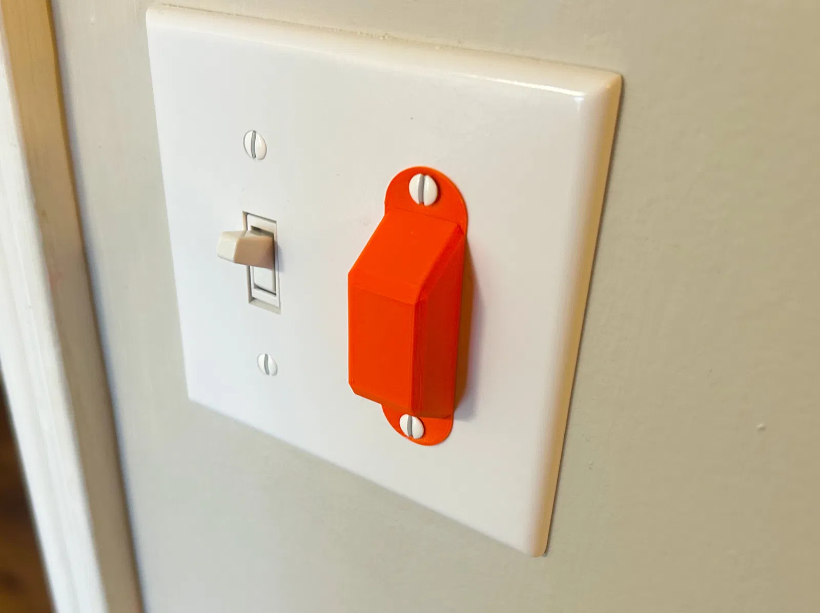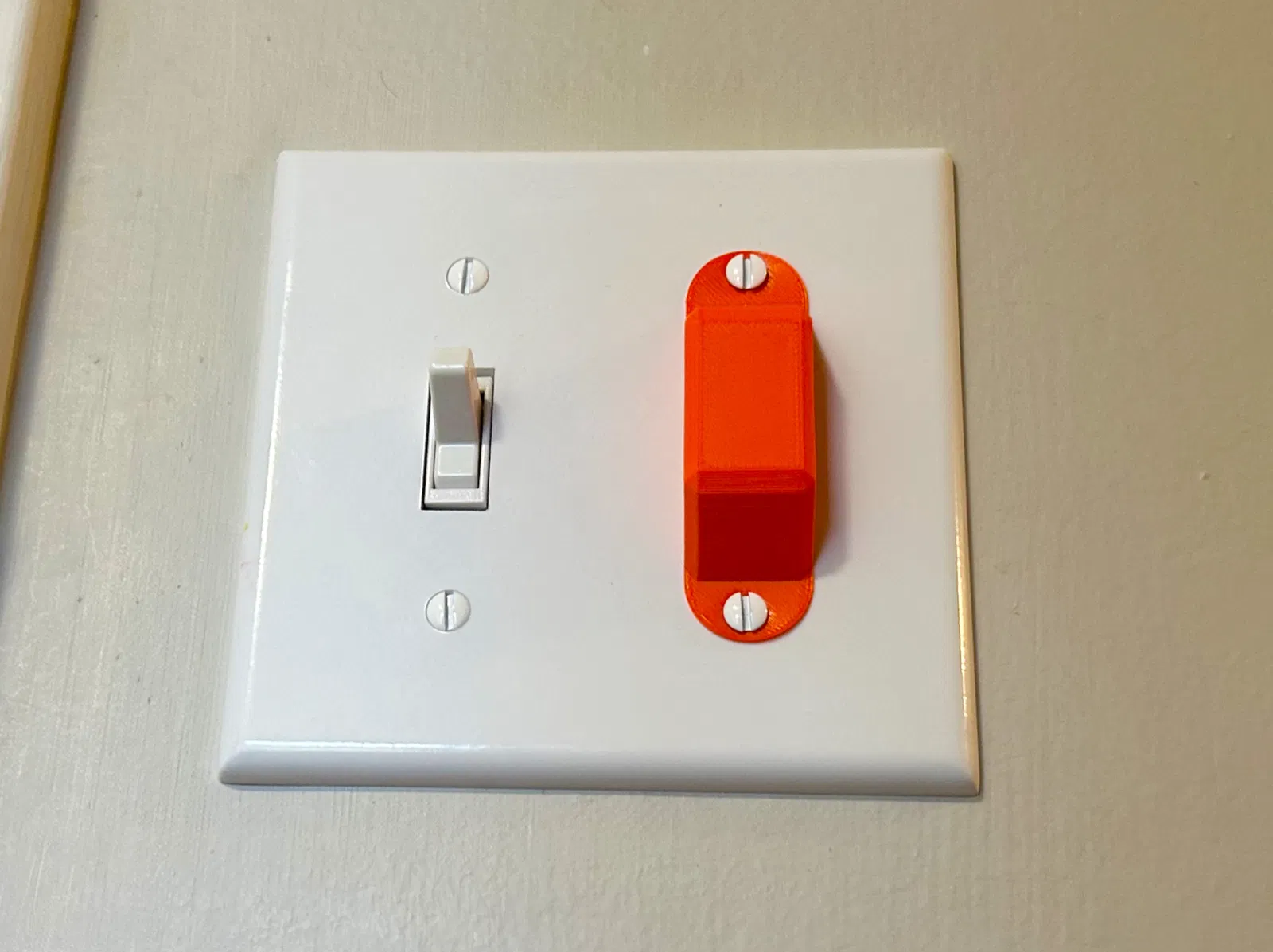 Đây là một cái ốp hoặc cái chắn đơn giản nhưng hiệu quả cho công tắc đèn, dùng để tránh trường hợp lỡ tay bật/tắt.