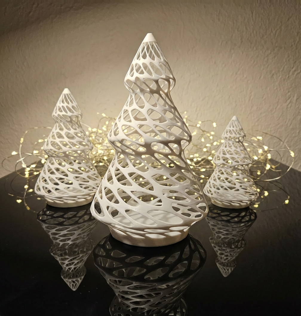 Một cây thông Noel hiện đại, phù hợp để trang trí cho mùa lễ hội. Bạn có thể tùy chỉnh kích thước dễ dàng trong phần mềm cắt lớp (slicer).