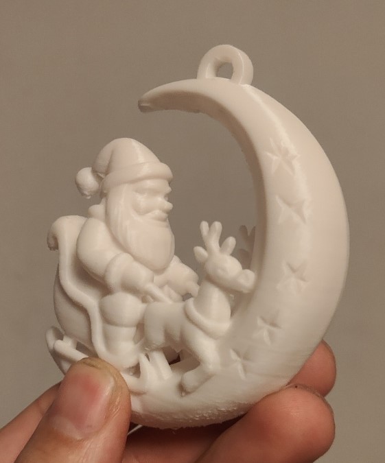Cái mô hình này cần có support ở phần dưới của mặt trăng và khu vực xe trượt tuyết, nhưng mà gỡ support ra thì cũng dễ dàng lắm nhờ các góc nghiêng hợp lý và bề mặt dễ tiếp cận. Mô hình in ngon lành với PLA tiêu chuẩn hoặc vật liệu lụa, và sẽ trở thành điểm nhấn duyên dáng trên bất kỳ cây thông Noel hay đồ trang trí mùa đông nào.