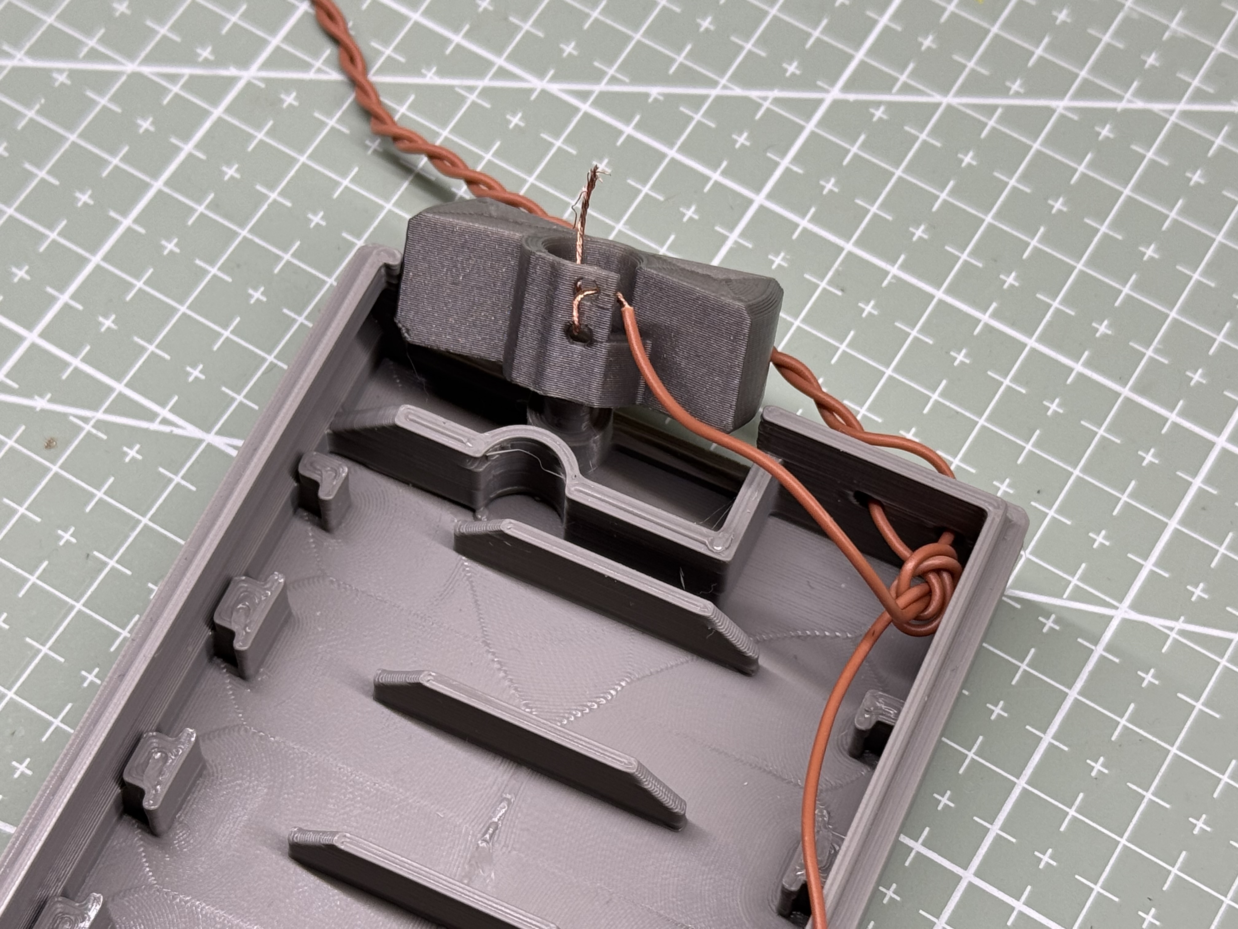 Lắp ráp: Đầu tiên, bẻ nhẹ cái lẫy trong đế, rồi luồn tất cả các bộ phận lại với nhau như trong hình. Minh họa chỉ dùng dây điện tuốt vỏ và xoắn lại thôi nha. Bạn có thể làm gọn gàng hơn bằng cách hàn dây điện đó. Phiên bản làm đại khái vậy vẫn xài tốt nha. Loại dây điện dự định dùng là 0.14mm² (26AWG). Dùng dây khác cũng được nhưng loại này vừa khít với đế.