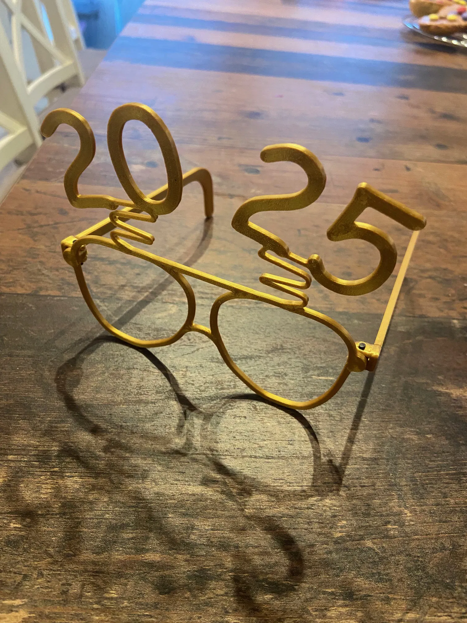 Một cặp kính vui nhộn cho dịp Tết 2025. Bạn có thể tùy chỉnh kích thước cho vừa vặn và dễ dàng lắp ráp bằng hai đoạn filament nhỏ. Chúc bạn năm mới an khang thịnh vượng!