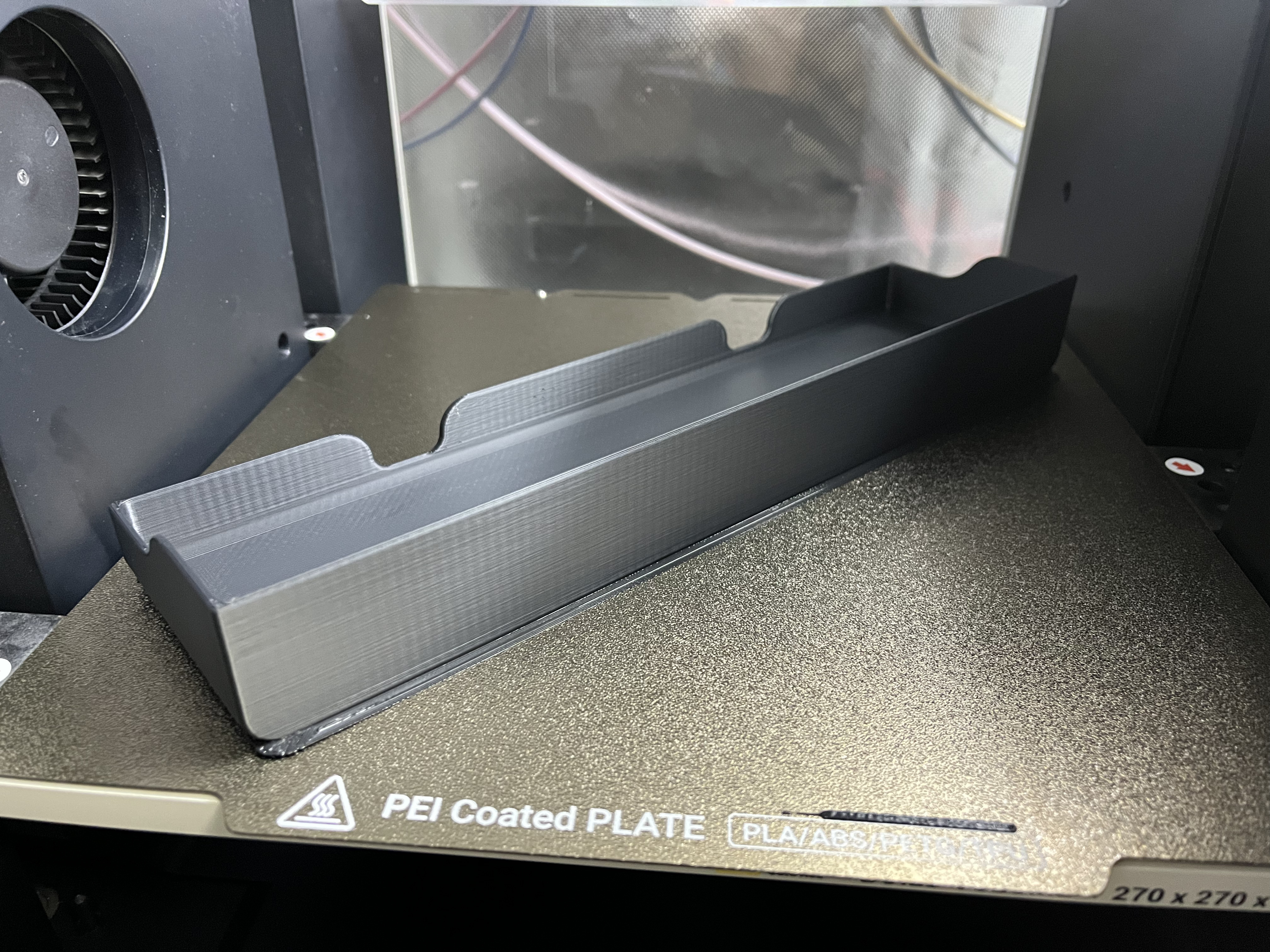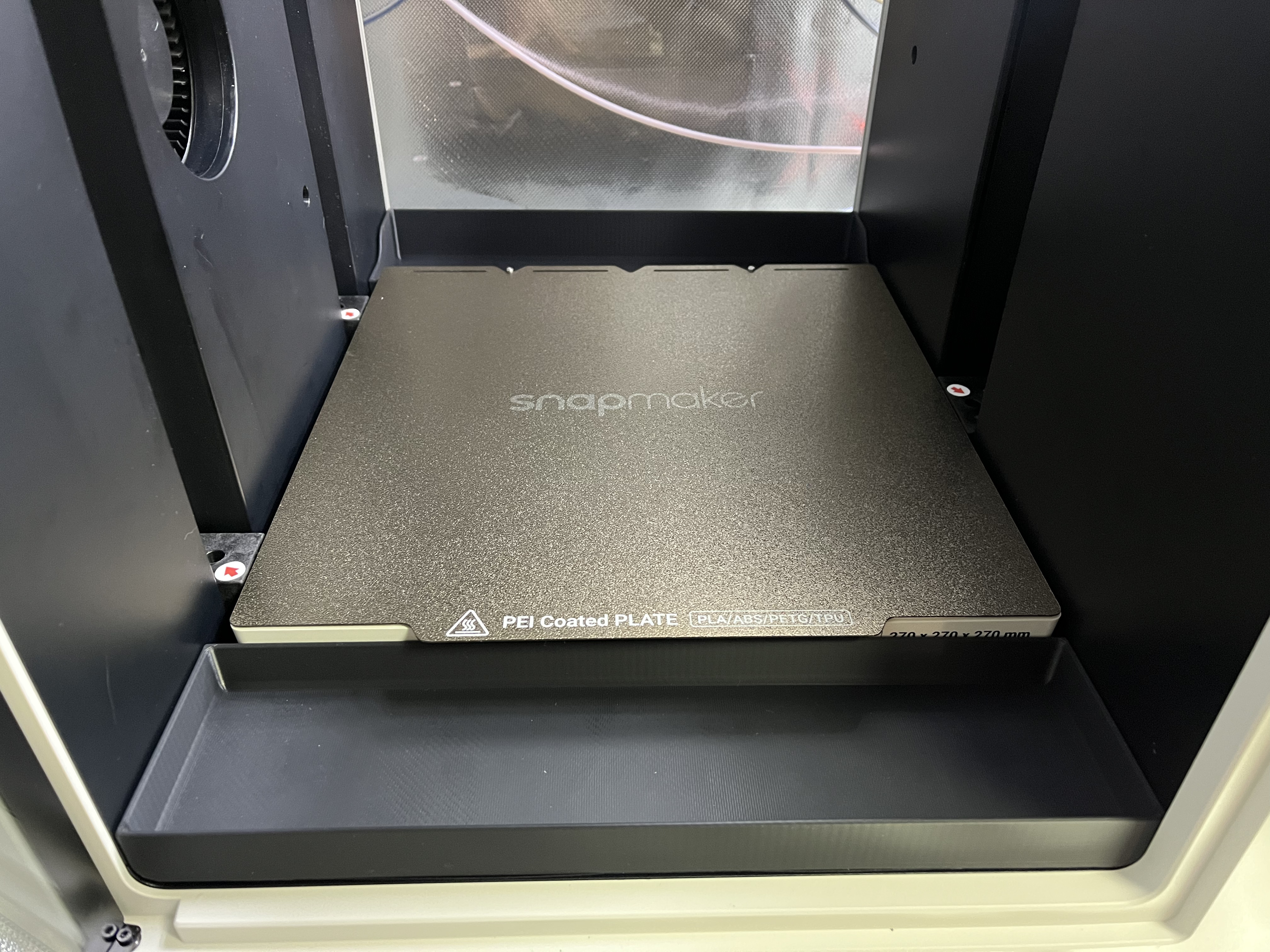 Khay phía trước dùng để bỏ các vật dư thừa như brim, còn khay phía sau thì để hứng các sợi filament đôi lúc bị rơi xuống đáy trong quá trình in đa màu.