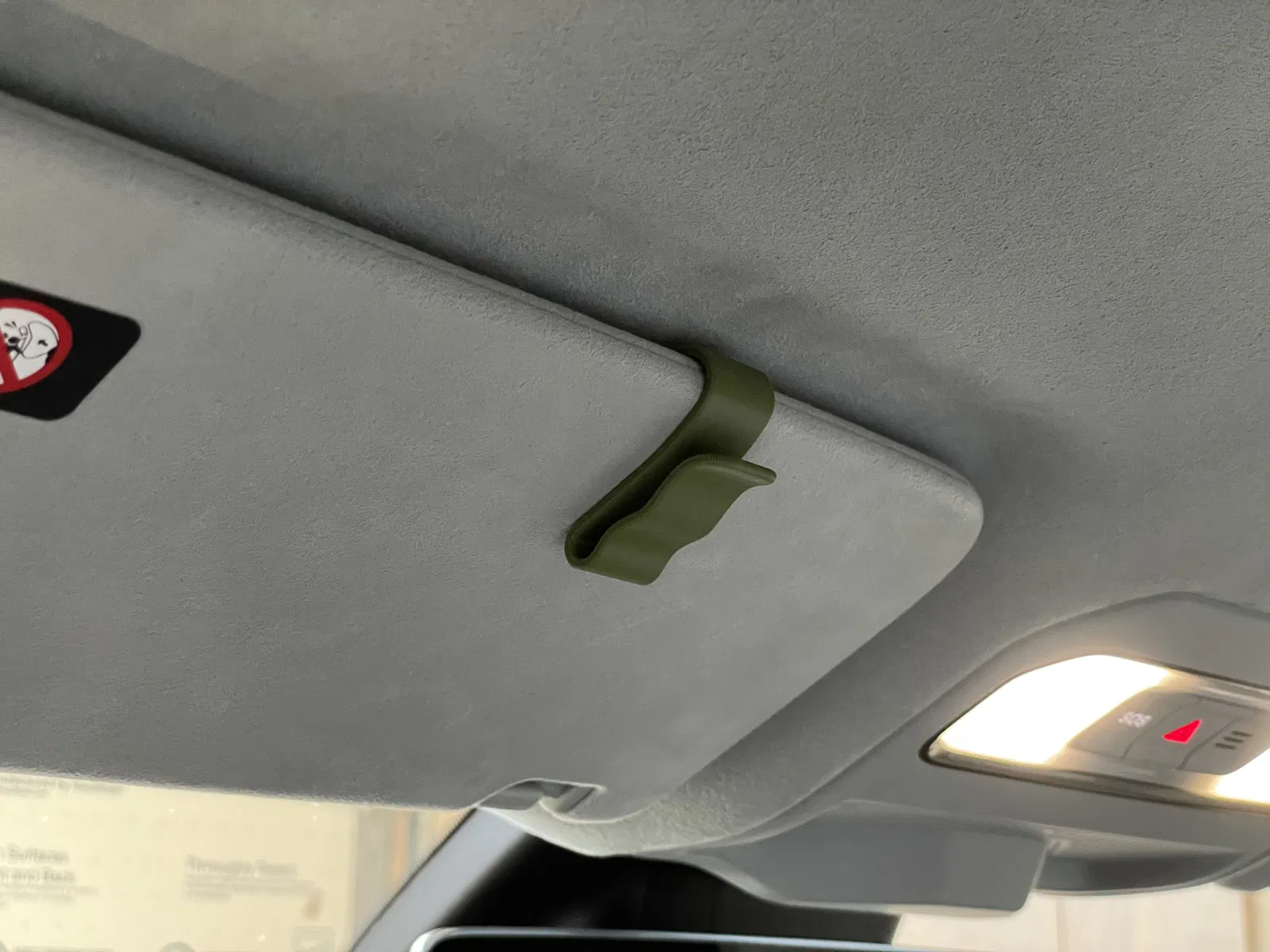 Trong khi cá nhân tôi thích móc gió điều hòa, chúng tôi nhận thấy nó có thể trông lộn xộn với kính râm và chai nước treo ở khu vực đó, vì vậy tôi đã tạo ra một clip gắn vào tấm che nắng để thử nghiệm. Mô hình này giống như bao mẫu khác, nhưng mẫu này được thiết kế đặc biệt để phù hợp với cấu hình của tấm che nắng Rivian và cung cấp độ bám chắc chắn.