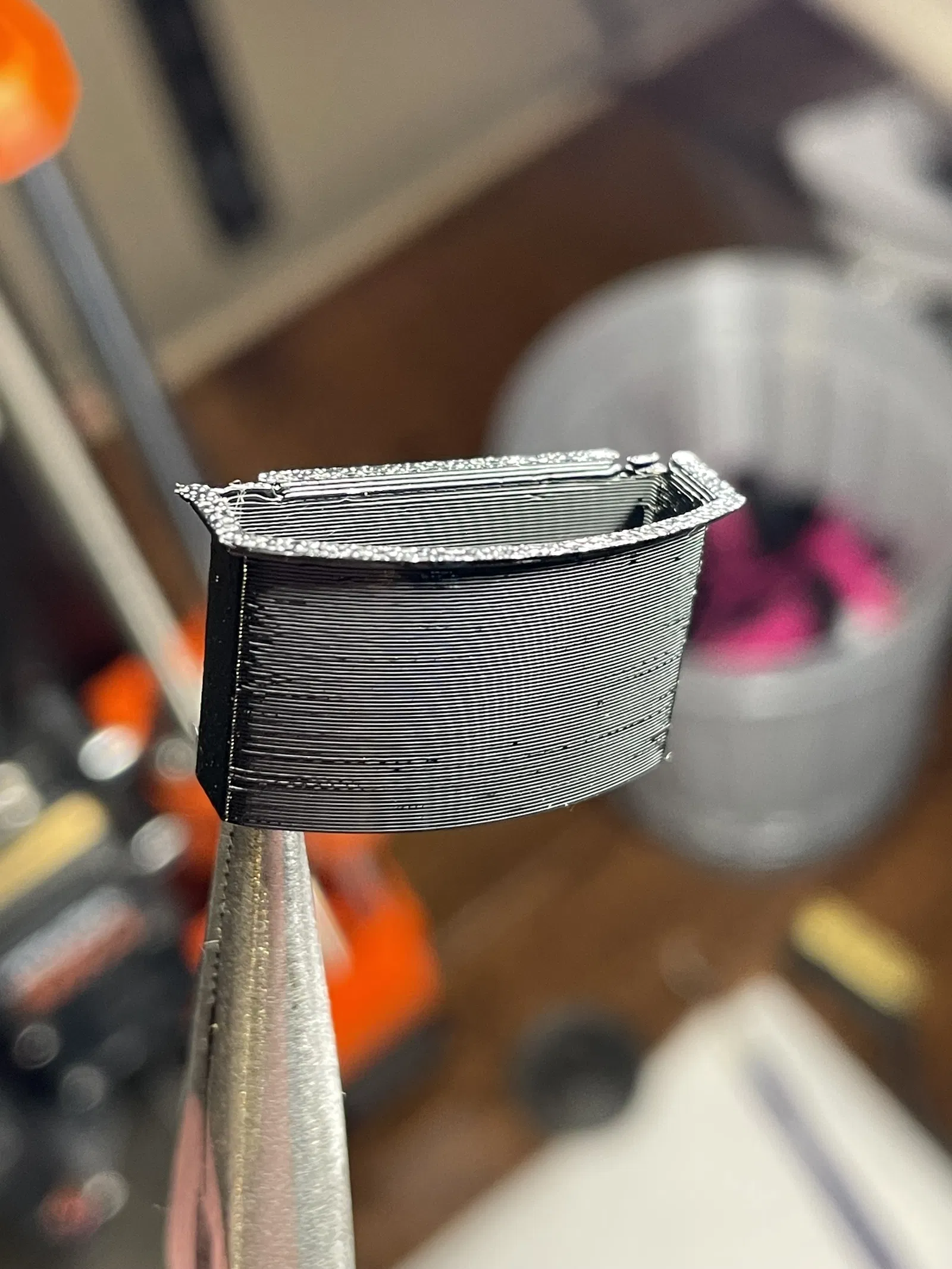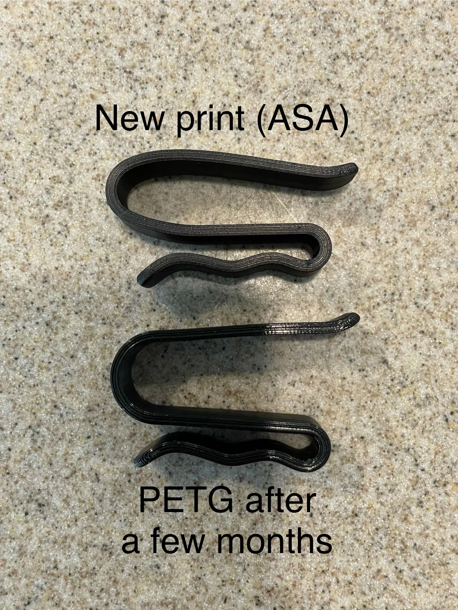 • Khuyến nghị ASA. PETG hầu như hoạt động, nhưng sẽ bị biến dạng theo thời gian (xem ảnh).