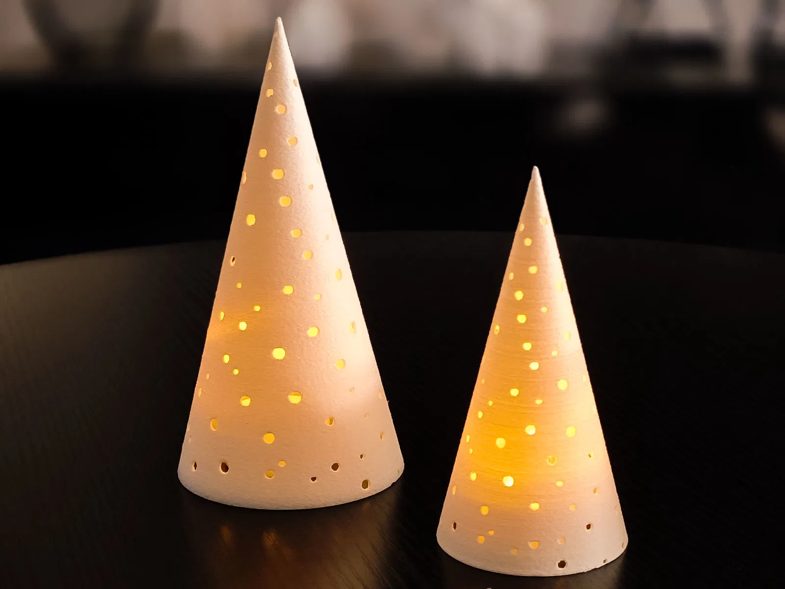 Mấy cái cone này nhìn sang ghê, để trang trí Noel hay trang trí quanh năm gì cũng được hết trơn á. Nhờ mấy cái lỗ nhỏ li ti trên thân mà nó tạo ra cái hoa văn ấm áp, lung linh lắm, nhất là khi mình để nến LED vô thì không khí nó ấm cúng liền.
