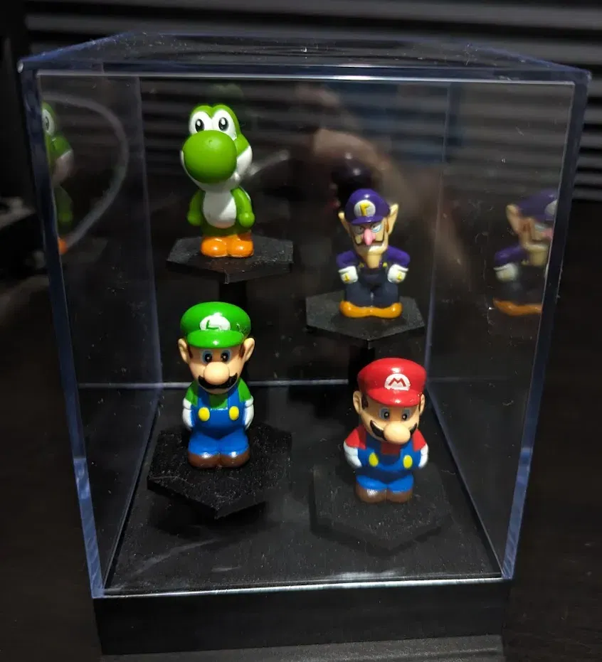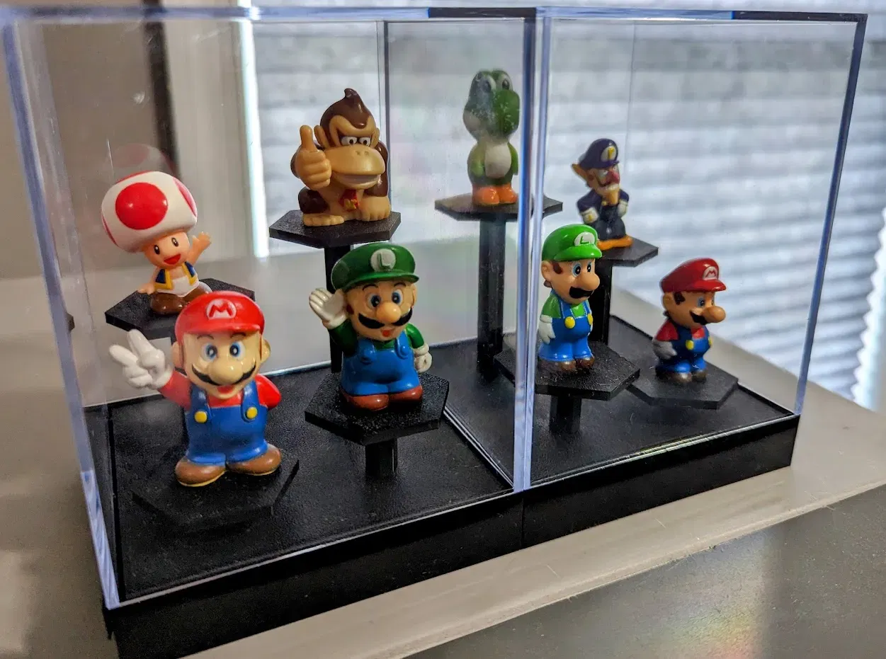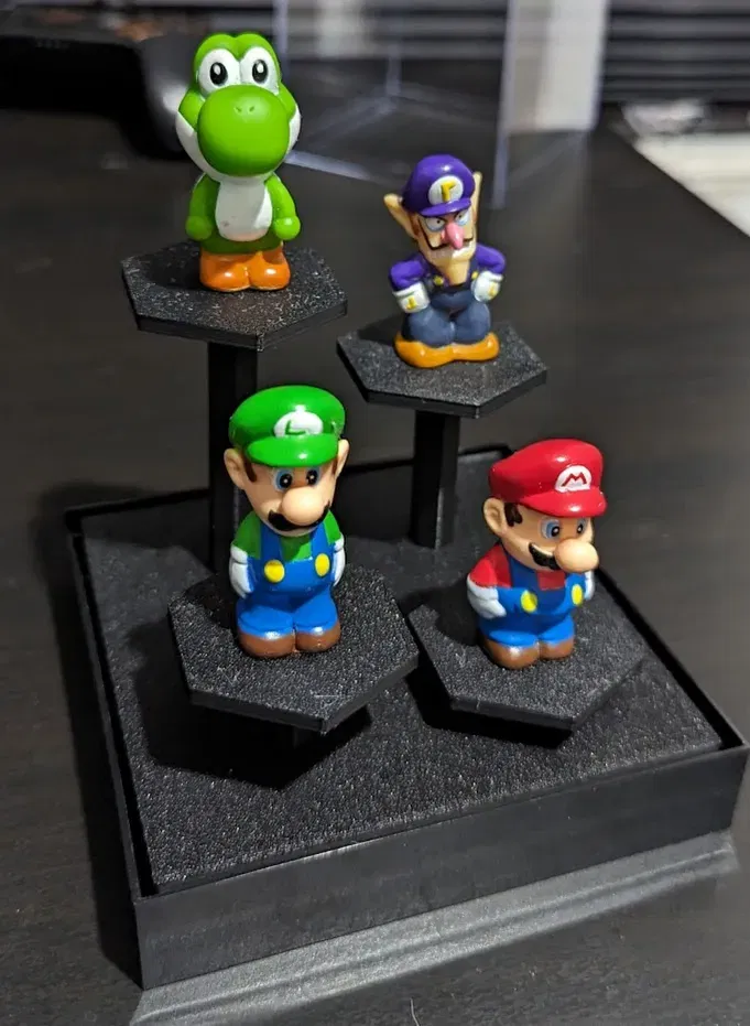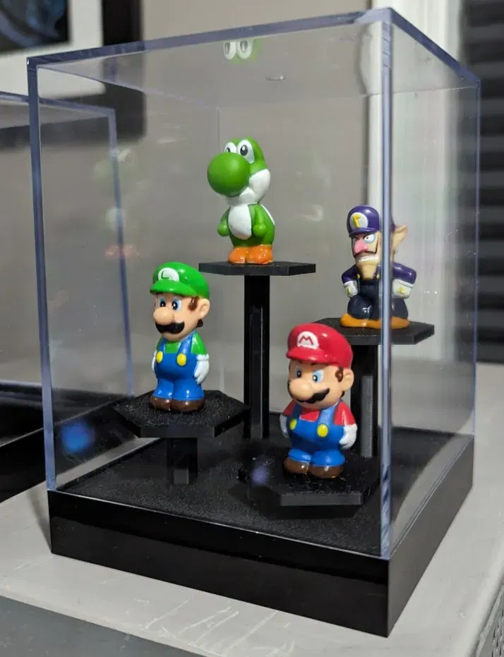 Giá đỡ tầng cho các hình nhỏ (những cái trong ảnh khoảng 1.5 inch). Vừa với hộp trưng bày acrylic kích thước 4x 5.5. Hộp có thể được mua ở đây: