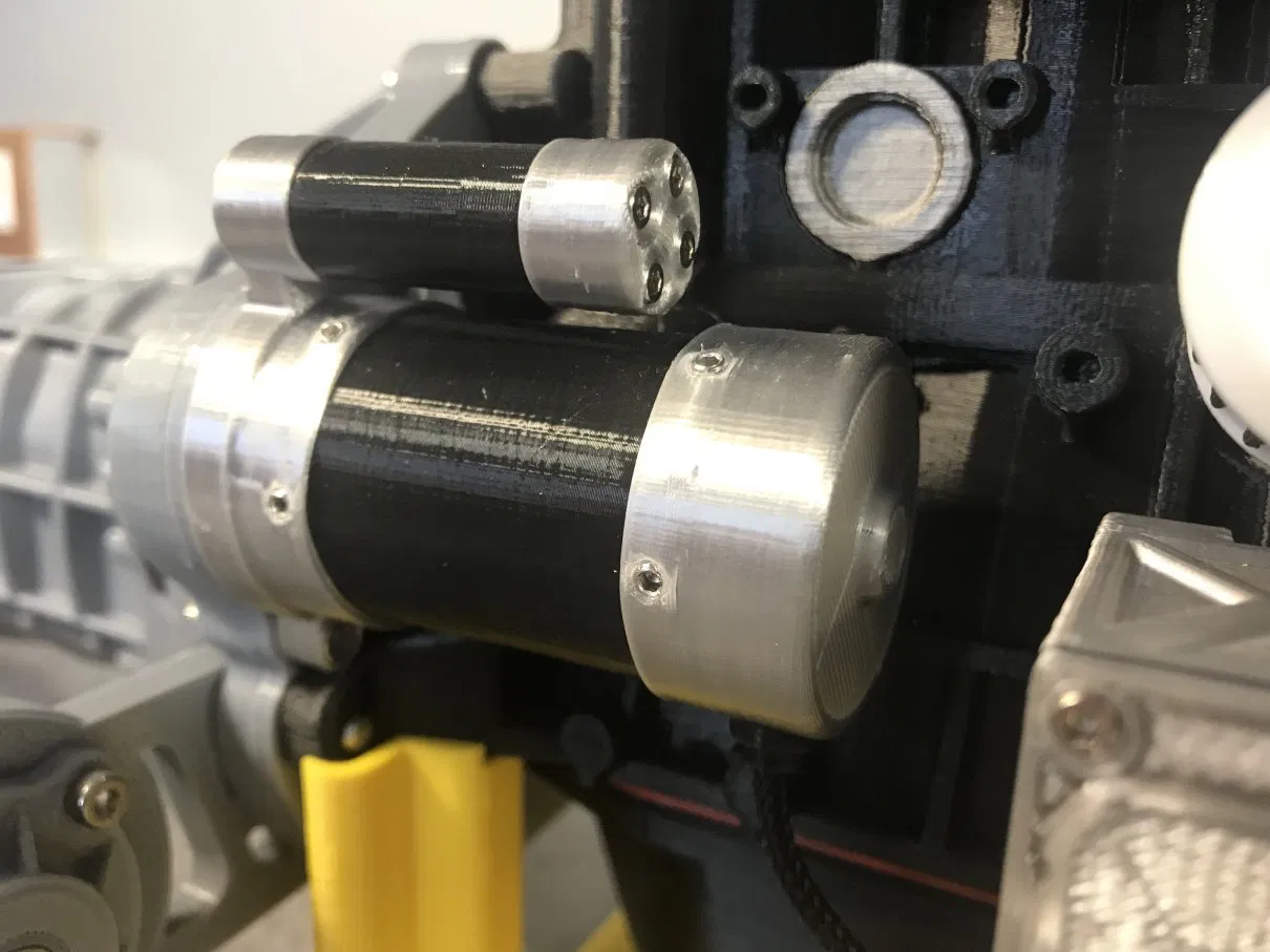 Cố định StarterBody1 vào Bộ truyền động điện bằng các vít m3. Lắp StarterBody2 vào StarterBody1; bạn có thể dán nó hoặc cố định bằng vít m2x10mm (xem hình ảnh; bạn cần tạo lỗ cho việc này). Dán StarterConnector đầu tiên lên StarterBody3. Hàn dây vào Động cơ điện và luồn chúng qua lỗ của StarterConnector trên StarterBody3. Lắp StarterBody3 vào StarterBody2; bạn có thể dán nó hoặc cố định bằng vít m2 (xem hình ảnh; bạn cần tạo lỗ cho việc này). Cẩn thận không kéo dây. Dán StarterConnector thứ hai lên StarterCommandBody (lỗ ở phía bên trái). Cố định StarterCommandBody vào khối động cơ bằng các vít m3; các lỗ trên khối động cơ đã có sẵn (xem hình ảnh). Luồn dây điện vào Vỏ bọc bện và lắp nó vào StarterCommandBody; sau đó kết nối chúng với Bộ điều khiển tốc độ. Chú ý đến cực tính. Kết nối Giắc cắm cái với Bộ điều khiển tốc độ; sau khi Giắc cắm cái được lắp vào StarterCommandDoor, dây sẽ đủ dài để đóng mở dễ dàng. Chú ý đến cực tính. Cố định Bộ điều khiển tốc độ bằng vít m2x5mm và đai ốc m2 vào StarterCommandBody; đây là phần khó nhất. Cố định Giắc cắm cái vào StarterCommandDoor; nếu cần, dán StarterCommandHubcap xung quanh đầu Giắc cắm cái (xem hình ảnh). Cố định StarterCommandDoor và StarterCommandGasket vào StarterCommandBody bằng các vít m2x5mm.