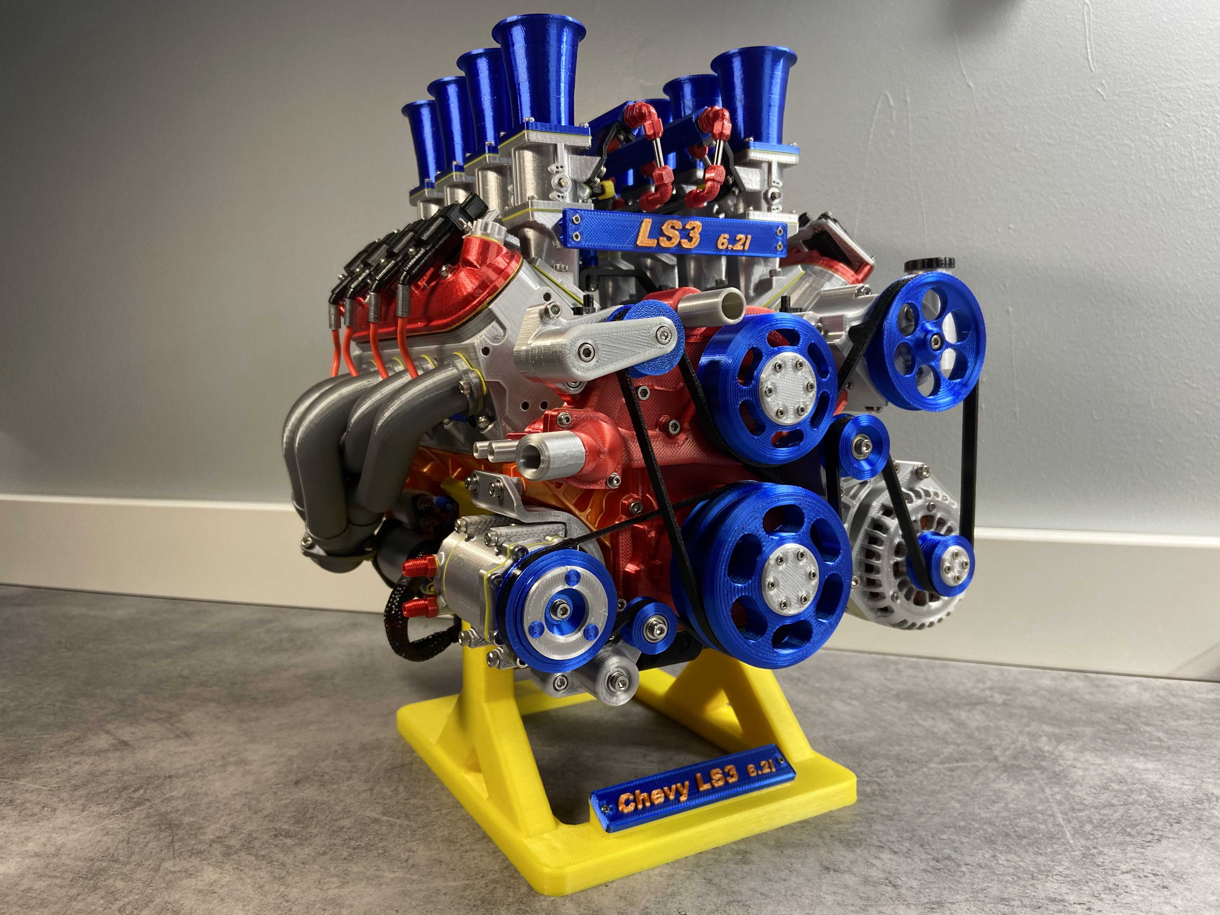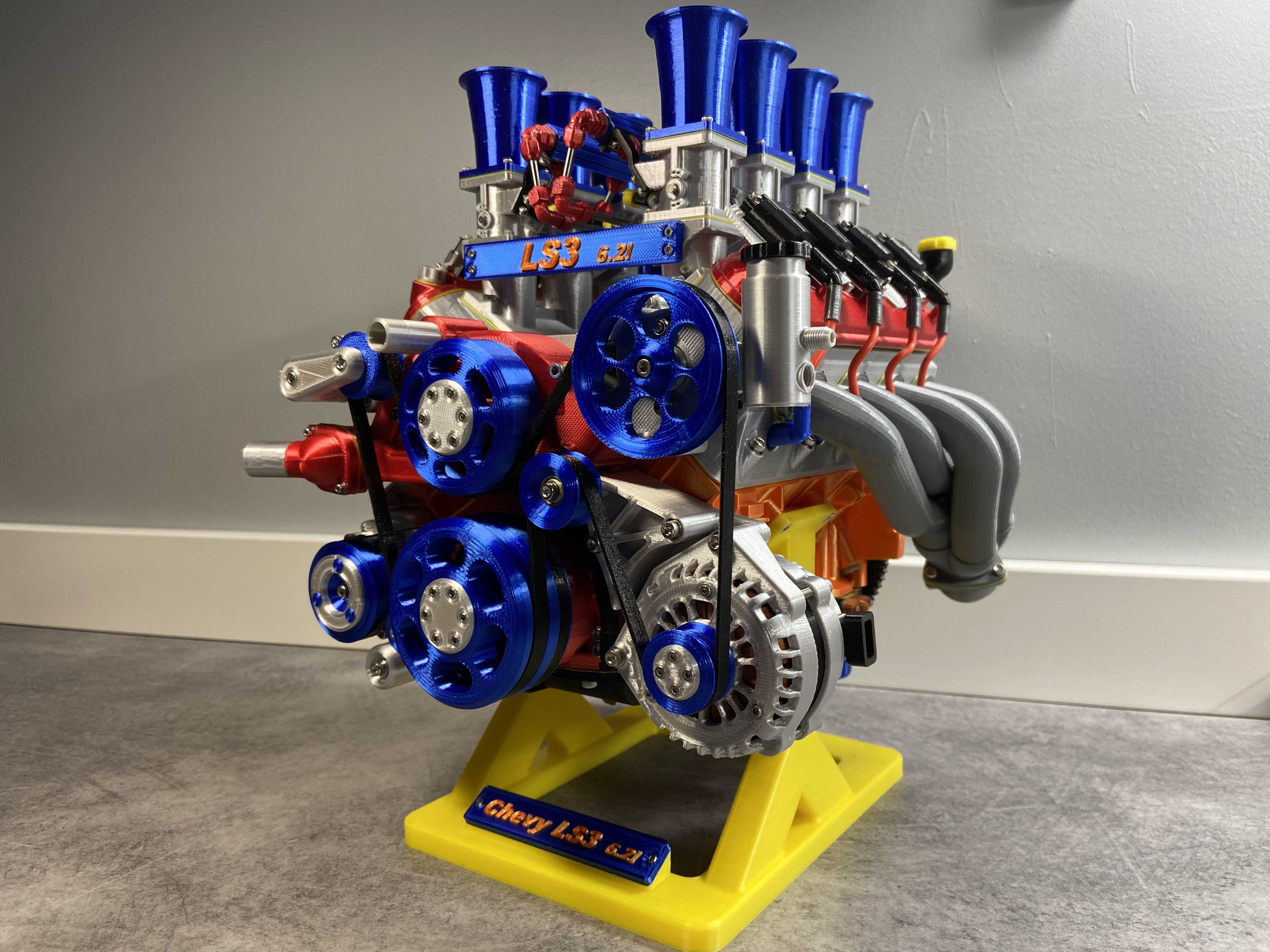 Bộ căng dây curoa chính cho động cơ LS3 Chevy, được thiết kế từ ảnh chụp thực tế. Hướng dẫn in chi tiết với vật liệu PLA và NinjaFlex, cùng với file lắp ráp.
