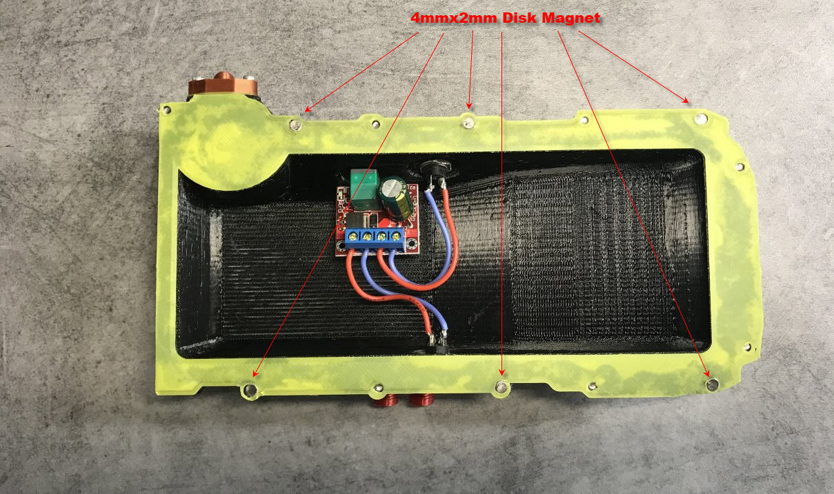 6 x Nam châm đĩa 4mmx2mm 6 x ốc m3x1.5mm SHCS (mình đã cắt ốc m3x3mm để làm ốc m3x1.5mm) 12 x ốc m3x3mm SHCS 2 x ốc m3x5mm SHCS 2 x ốc m2x5mm SHCS 2 x jack cái : https://www.amazon.fr/gp/product/B07TNDKY7V/ref=ppx_yo_dt_b_search_asin_image?ie=UTF8&psc=1 1 x biến trở 12v : https://www.amazon.fr/gp/product/B07B9RFGB6/ref=ppx_yo_dt_b_search_asin_title?ie=UTF8&psc=1