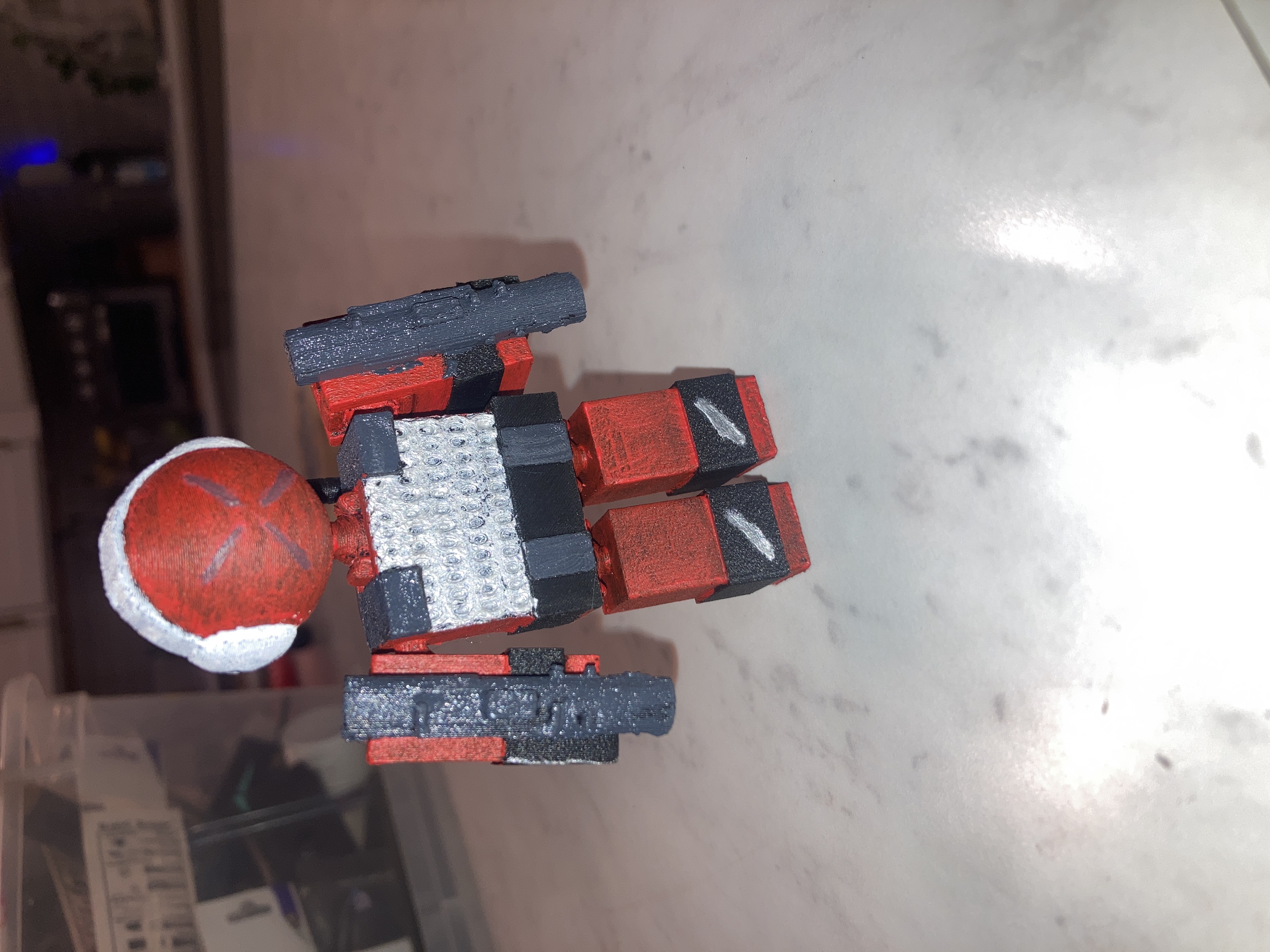 Đây là Killdroid, một robot có súng phóng tên lửa. Mẫu này nên in bằng PETG để khớp không bị lỏng và không nên thu nhỏ dưới 80%. Hình ảnh cũ rồi, mẫu đã được thay đổi. Sơn rồi khoe với mọi người nha!