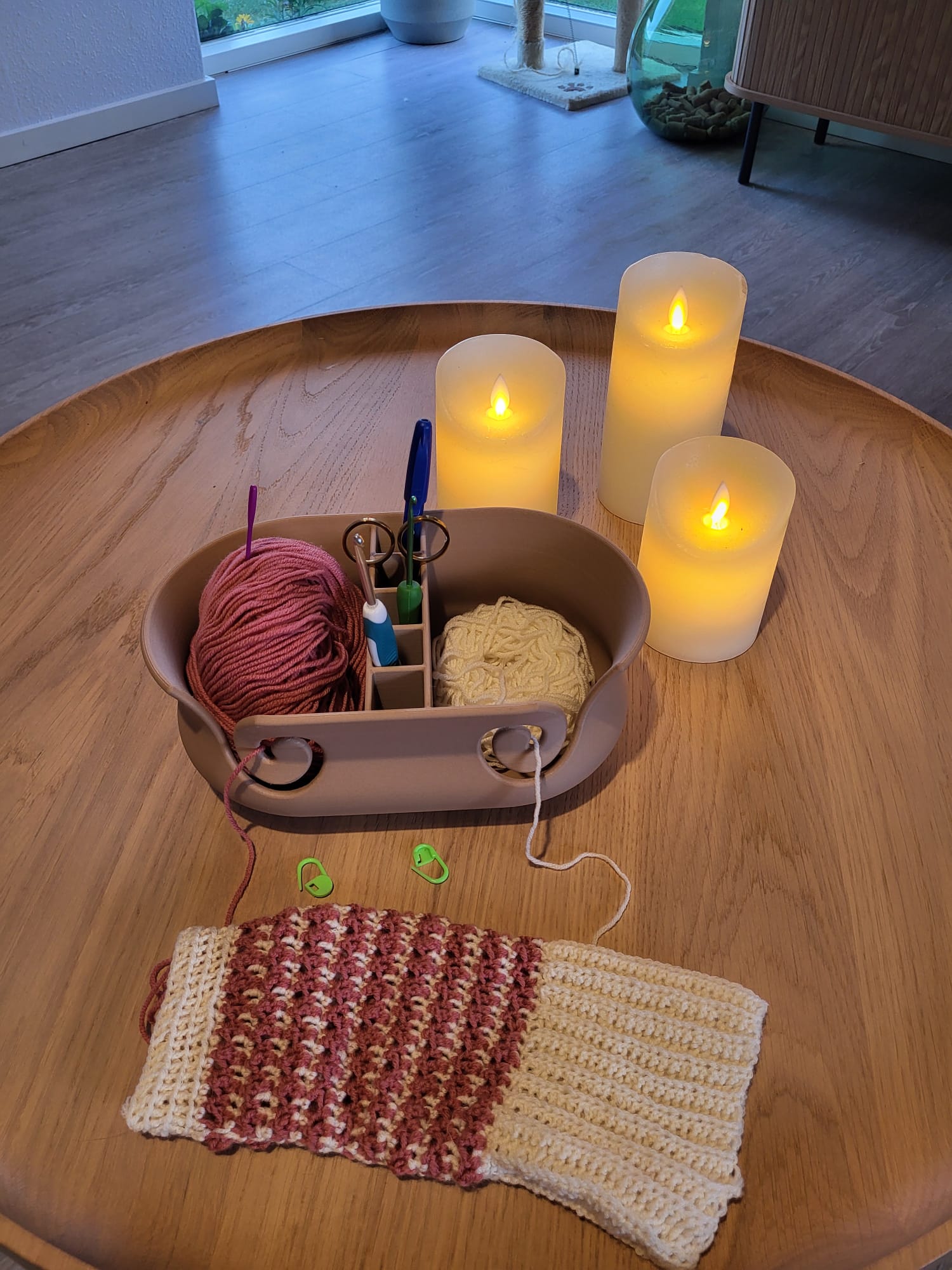 Lấy cảm hứng từ nhu cầu sáng tạo của vợ tôi, chiếc tô này giúp len của bạn không bị rối và các dụng cụ luôn trong tầm tay – người bạn đồng hành hoàn hảo cho mọi buổi sáng tạo.