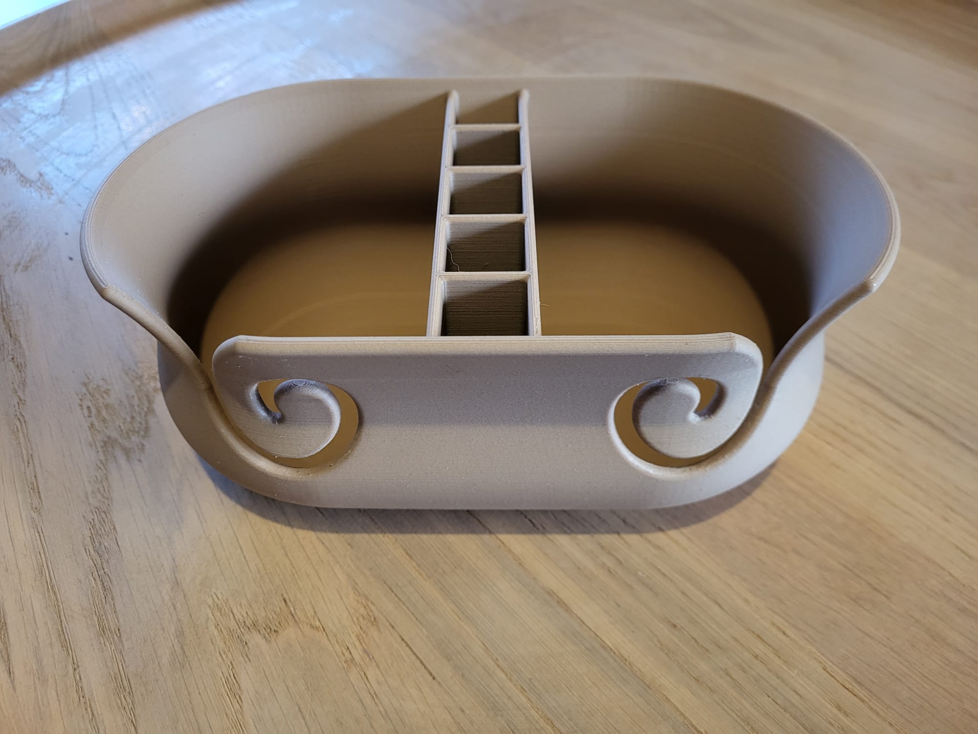 Chiếc tô được trưng bày được in ở tỷ lệ 92% so với mẫu gốc. Tôi đã sử dụng 3 lớp vỏ ngoài, 15% vật liệu độn bên trong và sợi PLA với 30% bột gỗ tái chế.
