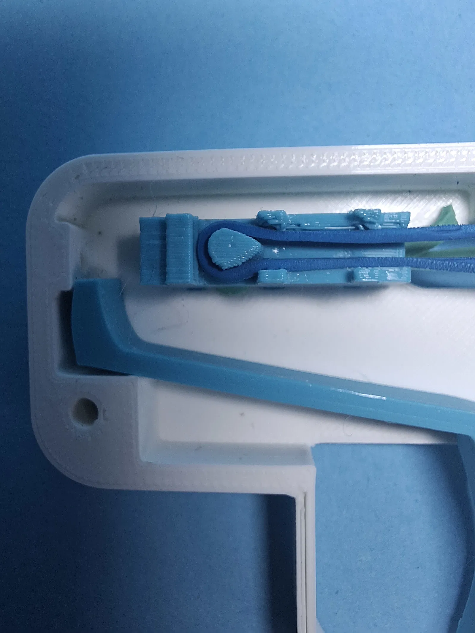 Nếu súng yếu quá, bạn thử dùng nhiều dây thun hơn hoặc dùng gấp đôi dây thun lên nha. Việc nhét dây thun vào có thể hơi khó khăn nhưng chắc chắn sẽ ổn.