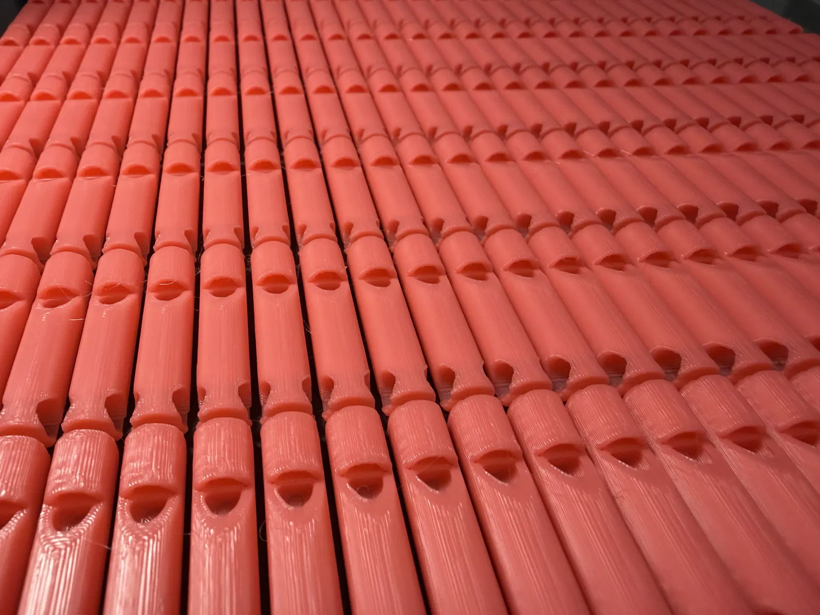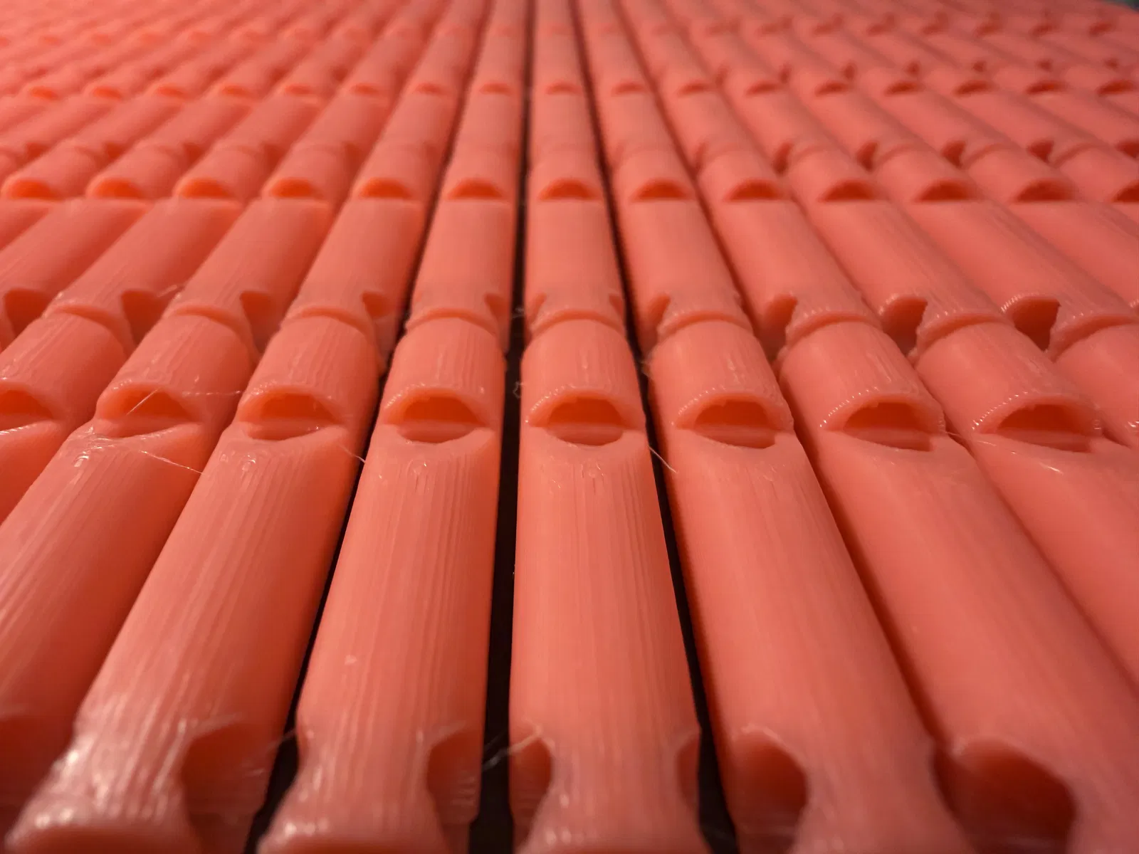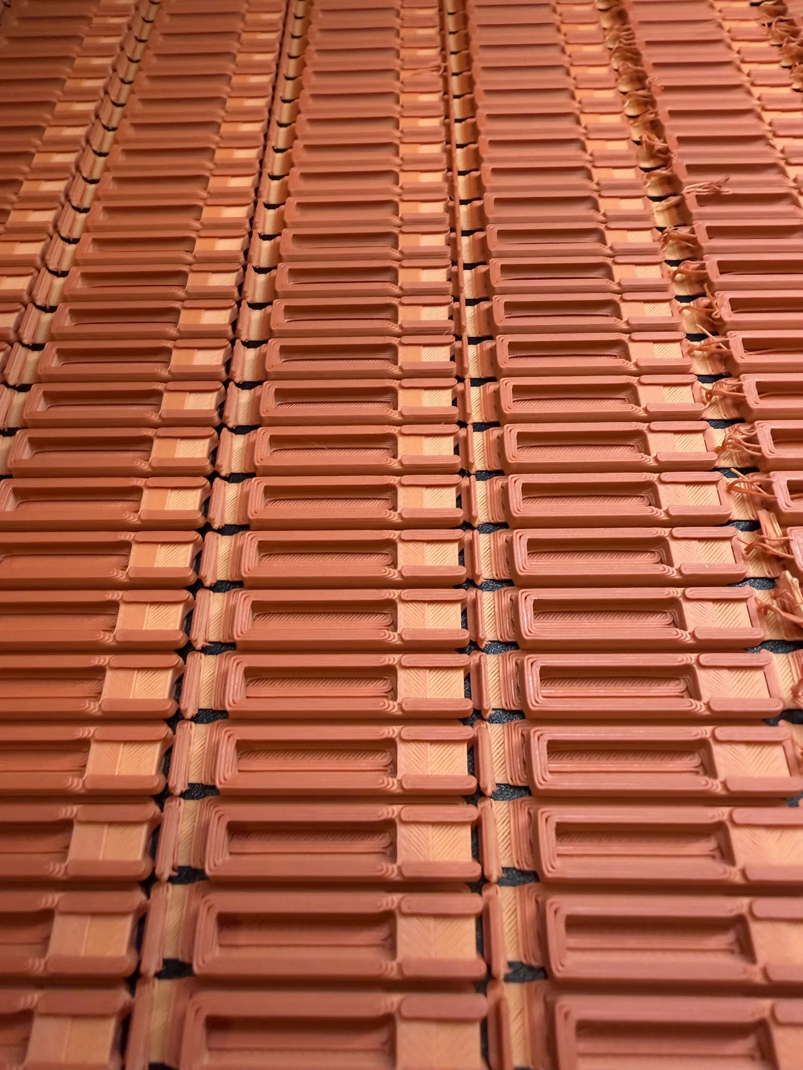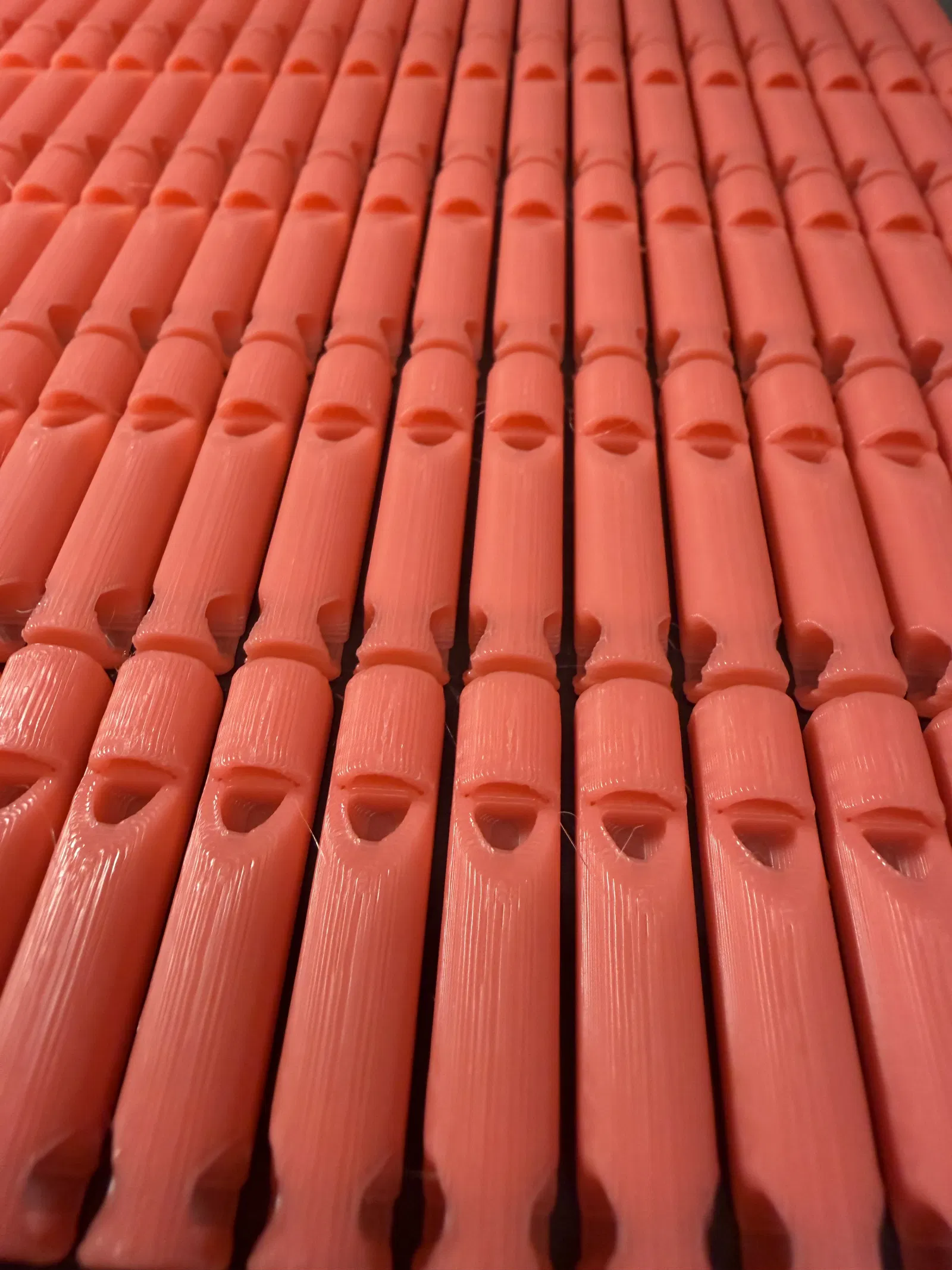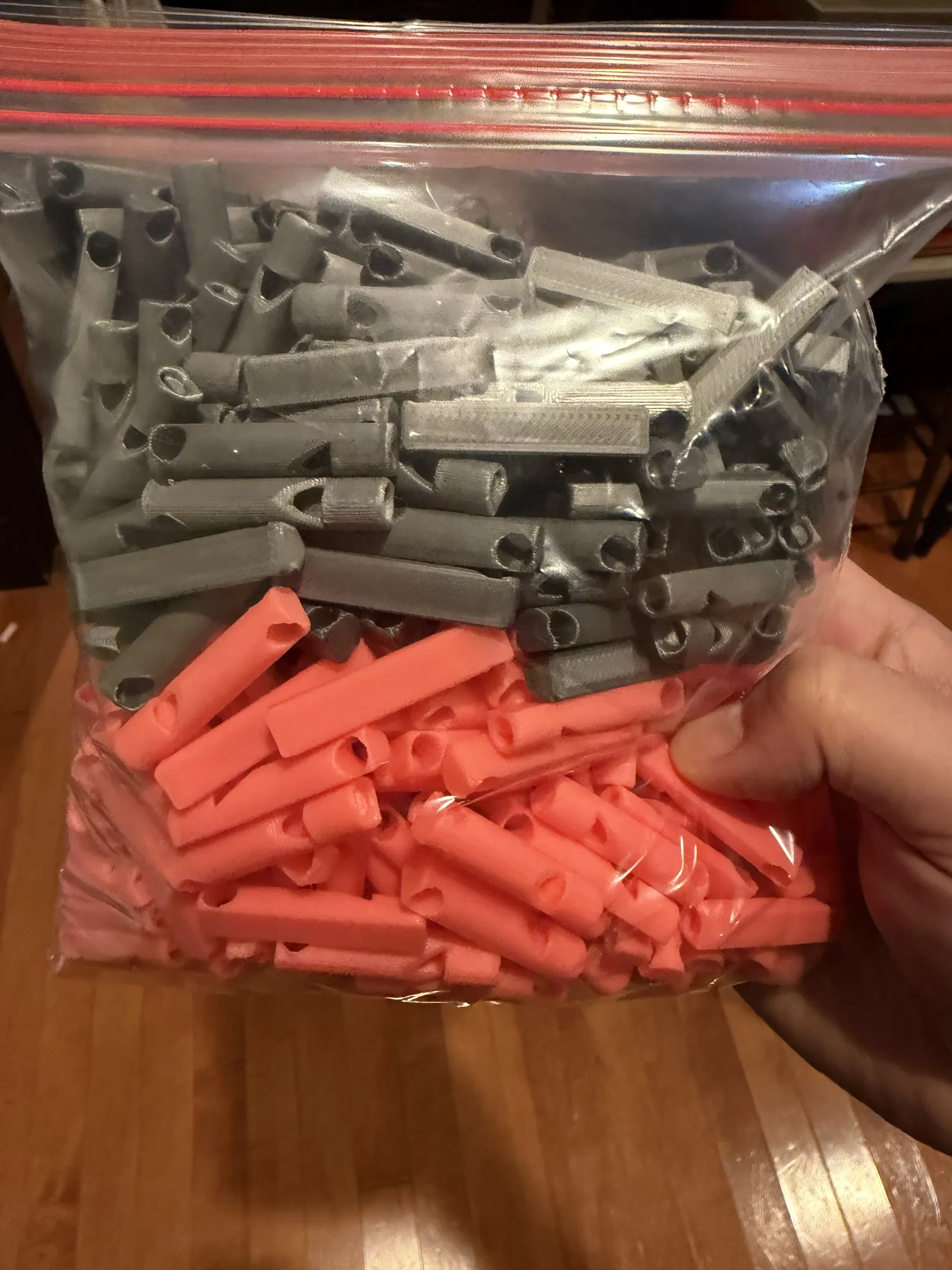 Với bất kỳ bản in nào có nhiều bộ phận nhỏ, tôi phải nhấn mạnh tầm quan trọng của việc đảm bảo máy in được căn chỉnh nhiều hơn bình thường và tôi khuyên dùng các tấm đế Super Tack hoặc bạn nên áp dụng các phương pháp tốt nhất đã biết để có độ bám lớp đầu tiên tối ưu, đôi khi chúng tôi đặt nhiều chiếc lên một bàn làm việc và các tấm PEI cơ bản thường không đủ để bám dính, điều này còn tùy thuộc vào mẫu in. Xin lưu ý điều này khi in hoặc nếu bạn đang cân nhắc in số lượng lớn. Chúng đã được thử nghiệm với số lượng hàng chục ngàn bản in, vui lòng thực hiện các biện pháp phòng ngừa thích hợp, chúng tôi khuyên bạn nên bắt đầu với một số lượng nhỏ và tăng dần khi bạn cảm thấy thoải mái hơn với số lượng lớn hơn. Tấm làm mát Bambu Supertack đã gần như xóa bỏ mọi vấn đề về bám dính trên các máy Bambu, trên Elegoo CC, tấm 5 sao mặt B cũng đã giải quyết mọi vấn đề. Nếu bạn thử in số lượng lớn trên tấm PEI tiêu chuẩn và gặp lỗi, vui lòng cân nhắc chuyển sang tấm đế có độ bám dính tốt hơn hoặc sử dụng các chất hỗ trợ bám dính.