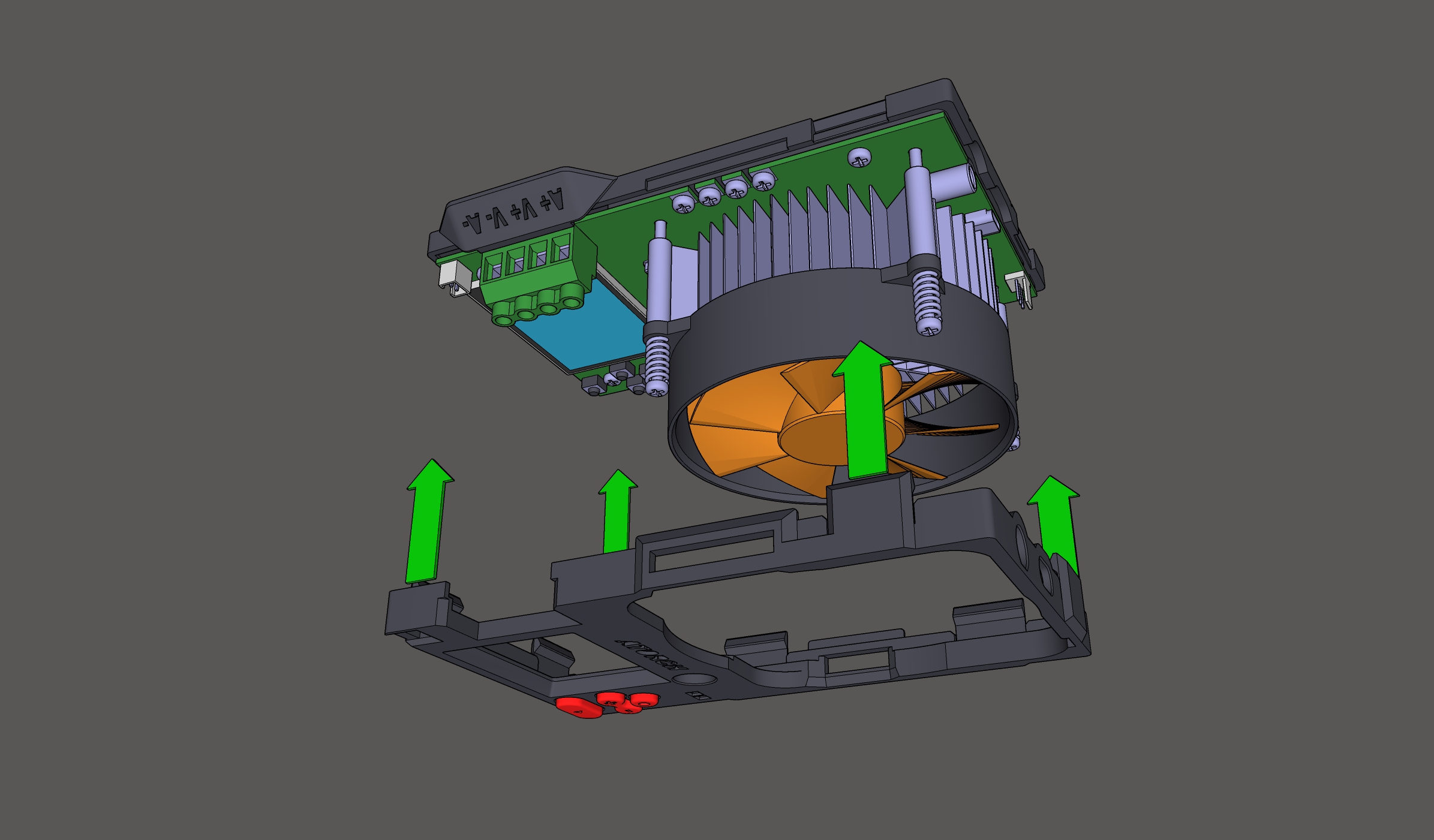 • Nắp trên có thể lắp đặt mà không cần tháo tản nhiệt có quạt và dán lại transistor - Nắp trên chỉ cần trượt qua tản nhiệt và bấm các kẹp vào nắp dưới.
