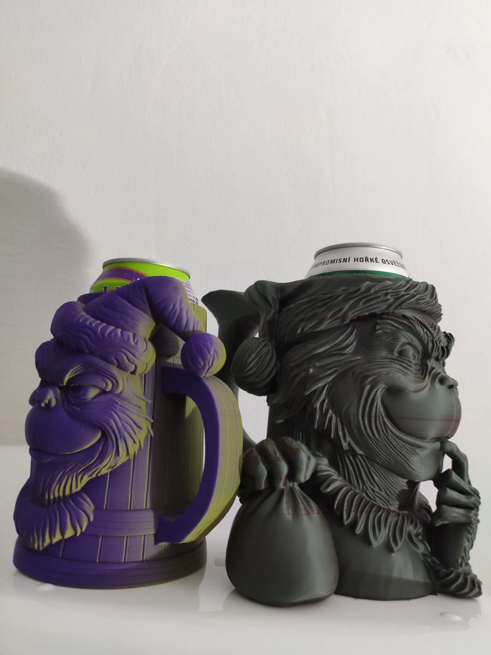 Hai mẫu cầm bia cho lon 0.5L, có kèm insert cho lon 12oz hoặc 330ml. Thích hợp cho mùa Giáng Sinh, anh em có thể chọn mẫu XL hoặc mẫu gọn. In bằng PLA, layer 0.2mm, supports tự động.