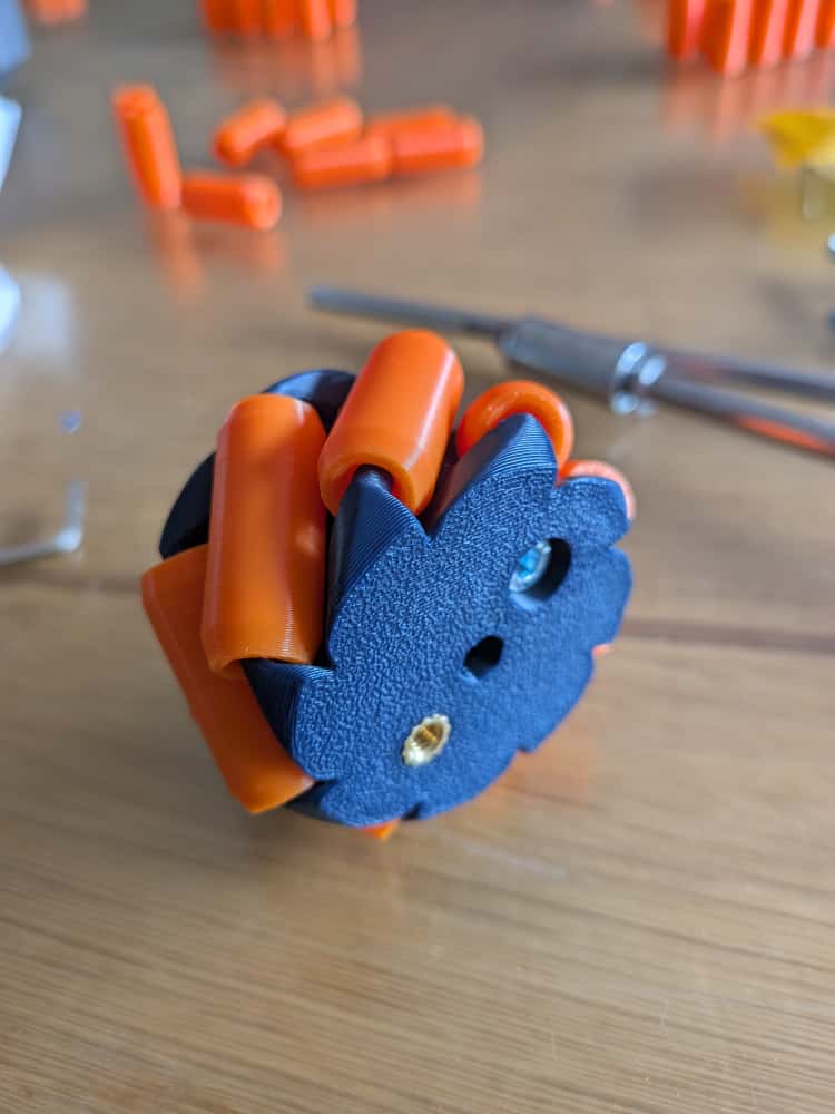 Phiên bản được điều chỉnh của bánh xe hút có hướng để sử dụng trong FTC với trục lục giác rev 5mm. Sử dụng các bộ phận chèn M4 với các bộ phận chèn đặt nhiệt để đóng chúng lại gần nhau.