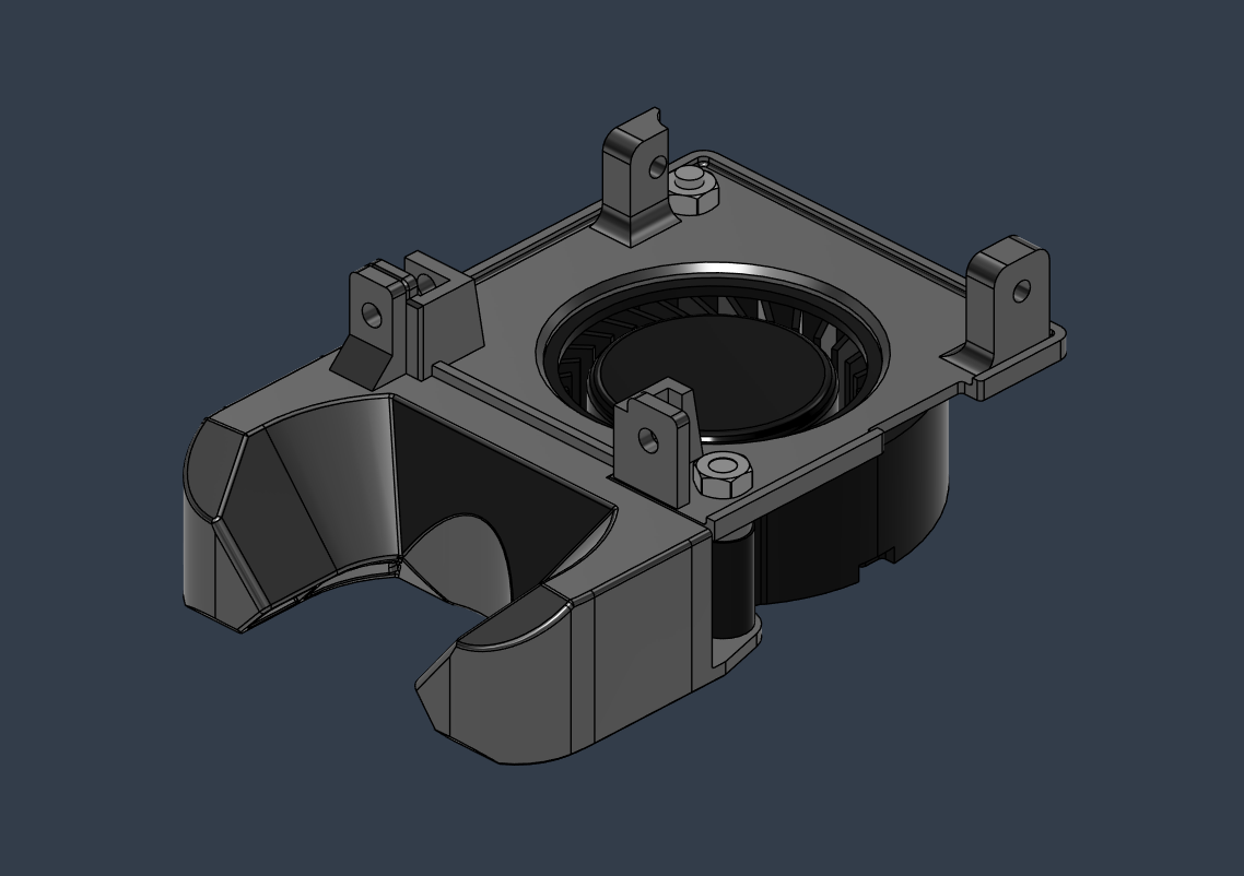 Ống dẫn khí làm mát zin trên Q2 bị mất cân bằng, phía bên trái bị làm mát kém. Tôi đã thiết kế ống dẫn và giá đỡ quạt này để khắc phục và đồng thời cải thiện hiệu suất làm mát. Nó tốt hơn hẳn. Nó cũng nhẹ hơn nhiều, giúp cải thiện kết quả input shaper và hiệu suất máy in của bạn. File STEP đã được cung cấp nên bạn có thể thoải mái điều chỉnh hoặc chỉnh sửa.