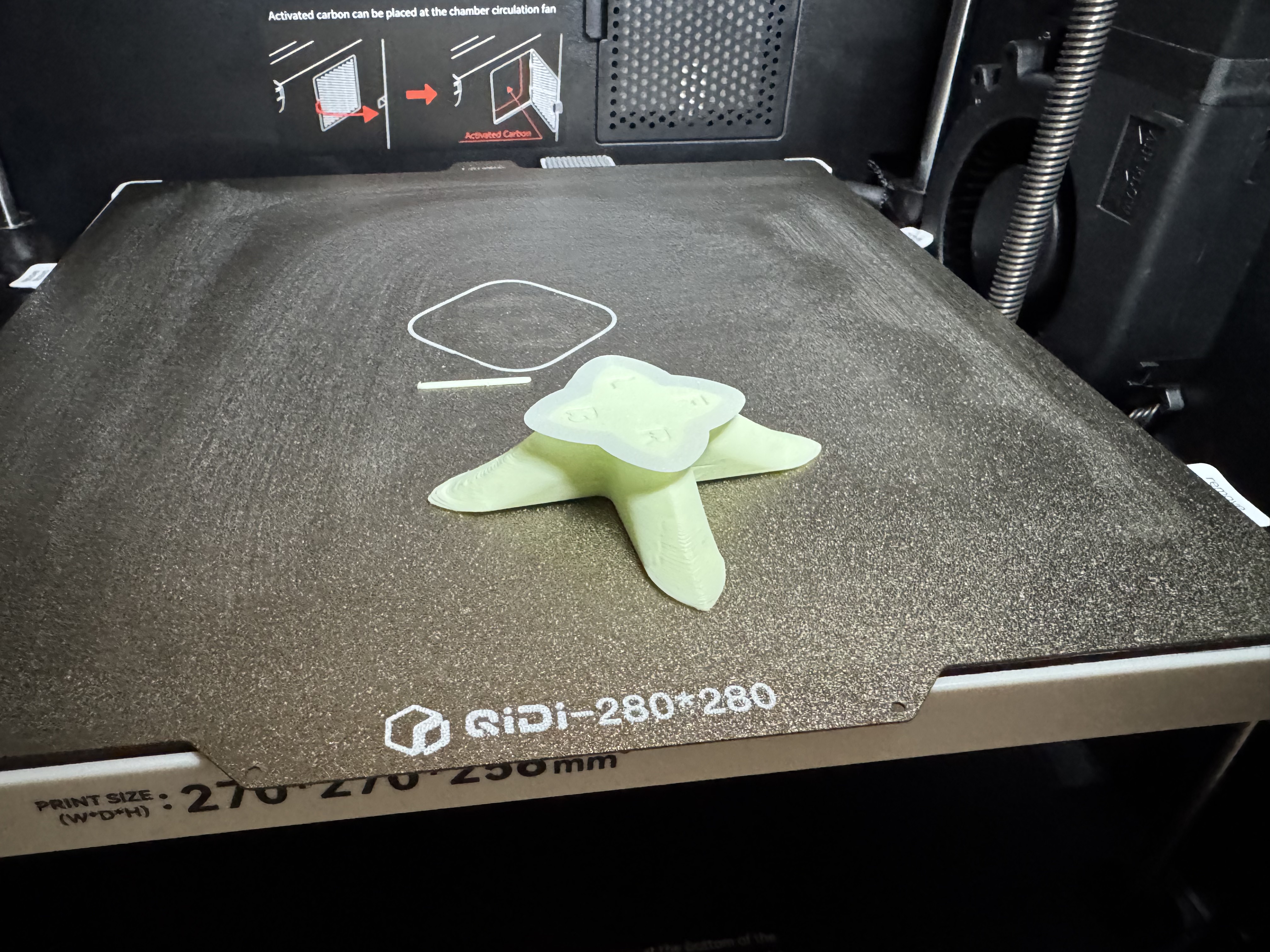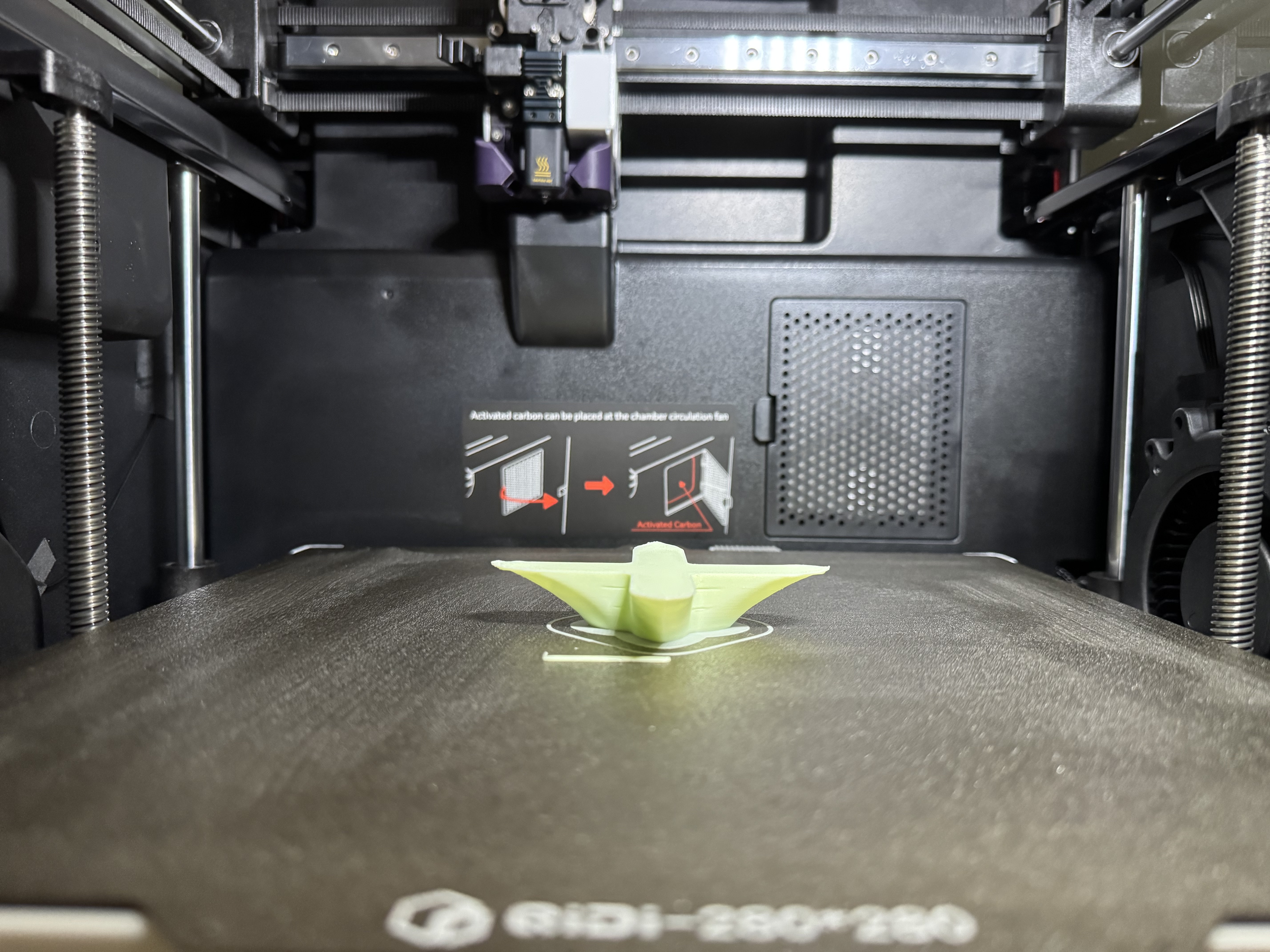 Quạt zin không tốt. Mặc dù bản thân ống dẫn tốt hơn hẳn bản zin, nó sẽ không khắc phục được hạn chế của quạt kém vì quạt là bộ phận di chuyển không khí. Tôi rất khuyến khích sử dụng quạt aftermarket từ GDSTime hoặc honey badger có đầu ra rộng nếu bạn muốn làm mát nhiều hơn. Tôi chủ yếu in ASA và các vật liệu tương tự nên quạt zin là đủ. Bạn có thể xem hình ảnh với bài kiểm tra overhang, cái này được thực hiện với quạt zin.