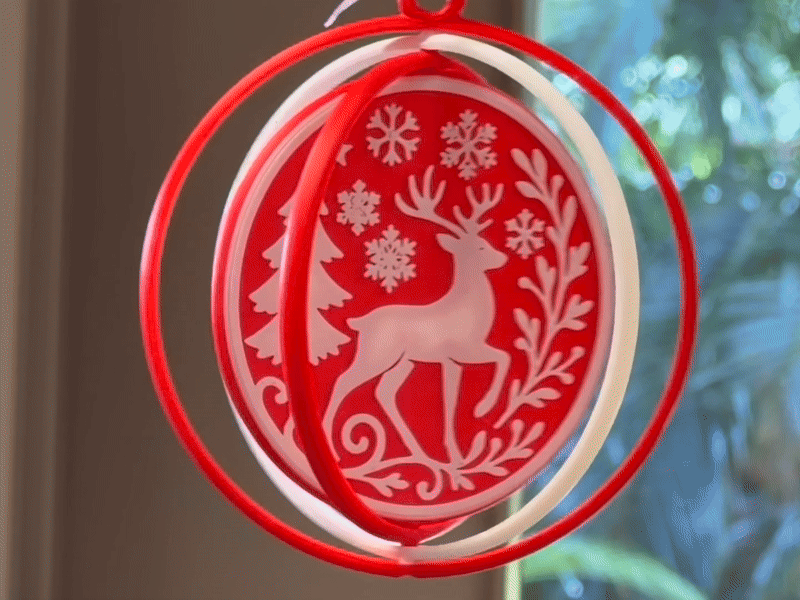Bộ này bao gồm bốn món đồ trang trí Giáng sinh xoay, được thiết kế để bắt mắt, nhẹ và dễ in nhiều màu mà không cần AMS. Hiệu ứng hai tông màu được tạo ra bằng cách tách phần họa tiết và phần ruột màu ra các lớp khác nhau.