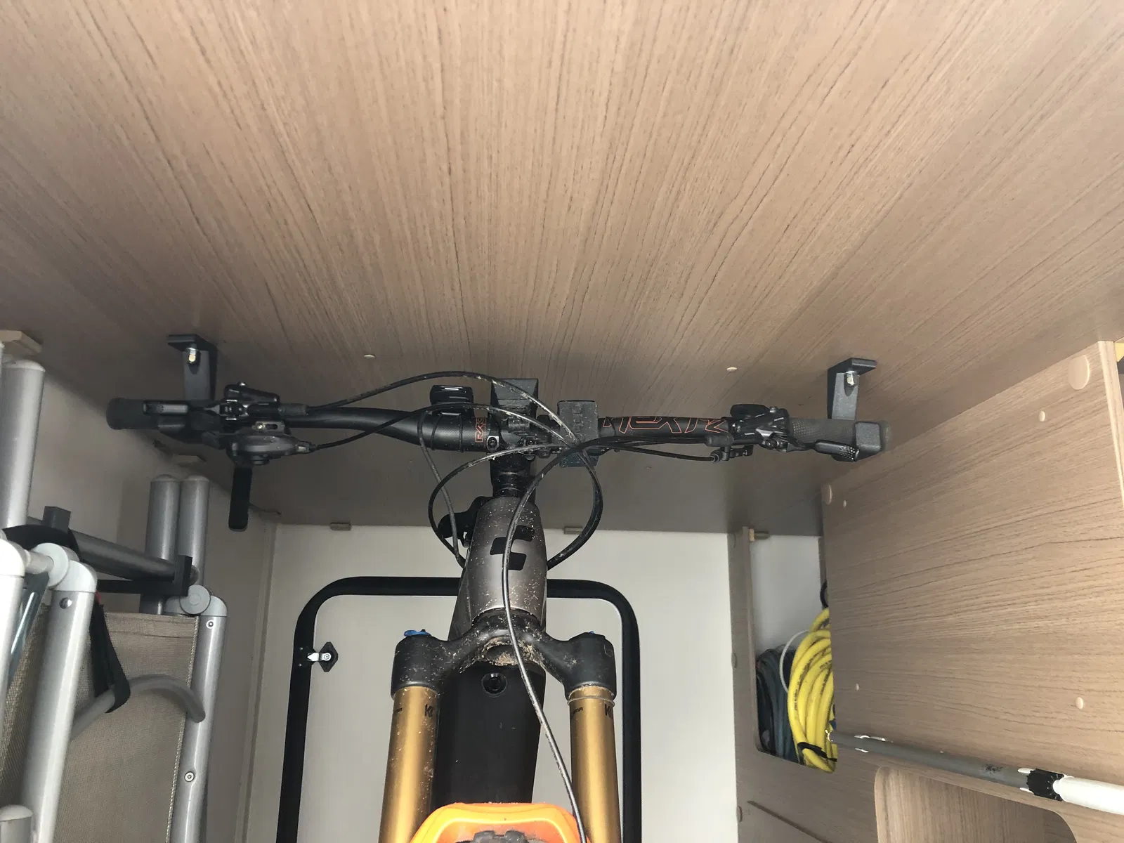 Giá đỡ dùng để vận chuyển xe đạp trong nhà xe hoặc các phương tiện khác. Gắn lên trần xe để treo ghi đông xe đạp.