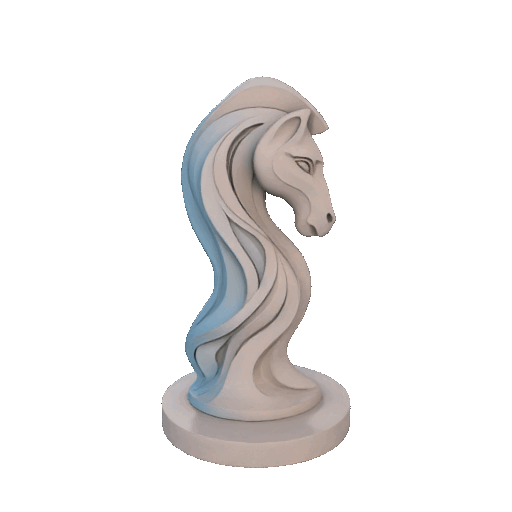 Một giọt nước chuyển động – lướt đi êm ái như sương sớm giữa chiến lược và giấc mơ. Tượng "Kỵ Sĩ" Organica này, với đầu giống hộp sọ ngựa và bờm lá, thể hiện sự chuyển động thuần khiết và tinh thần hoang dã, vượt qua mọi giới hạn.