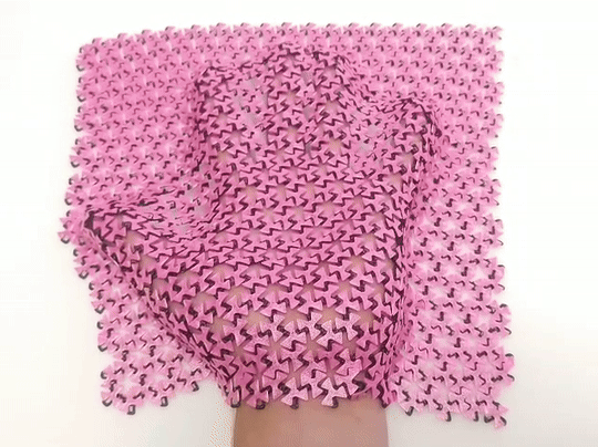 Gấp ba lần Cái gì cơ? Khả năng gấp của một miếng vải/giấy/gạch nói lên sự co giãn của nó. Một tờ giấy bình thường nổi tiếng là chỉ gấp được 7 lần trước khi chồng giấy quá dày không thể uốn cong được nữa. Nhưng hầu hết các loại vải in 3D chỉ gấp được một lần, may lắm thì hai lần. Điều này là do hầu hết các loại vải in hoạt động giống như bìa cứng mỏng, ngay khi bạn bẻ cong theo một hướng, thì hướng còn lại trở nên rất cứng.