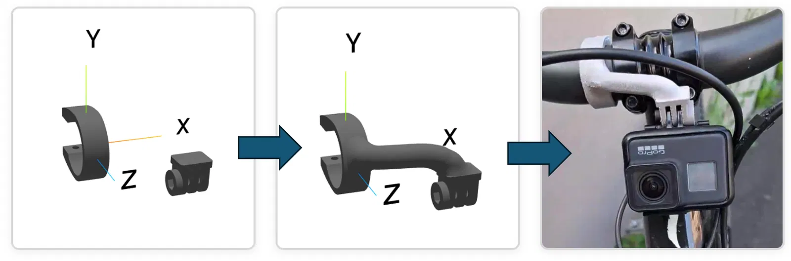 Với MIKE, bạn có thể tự động thiết kế pát gắn cho đèn, camera hành trình, máy tính xe đạp, và nhiều thứ khác — tất cả đều được tùy chỉnh theo đúng chiếc xe của bạn. Không cần hàng giờ dựng CAD đâu nha!