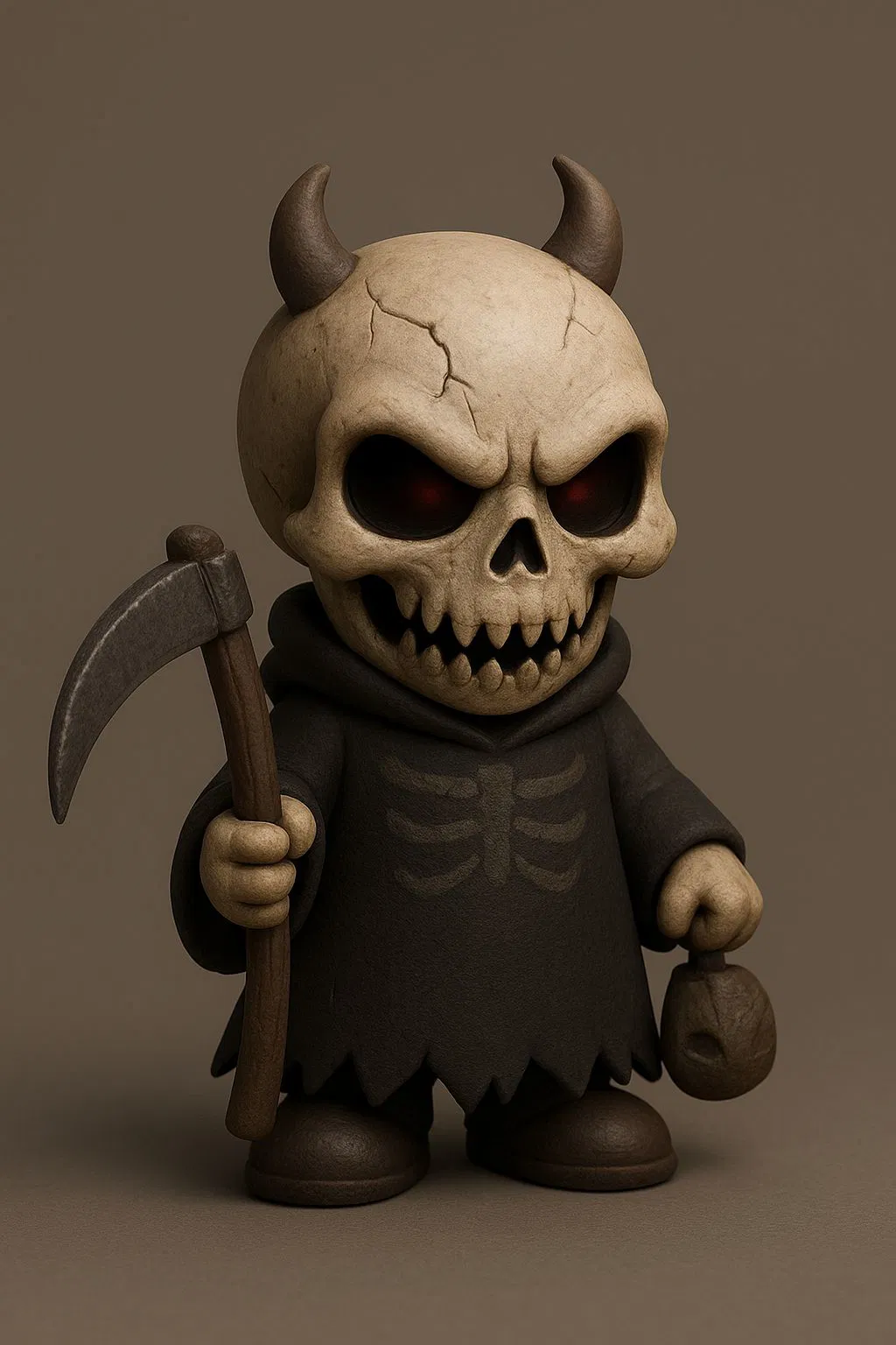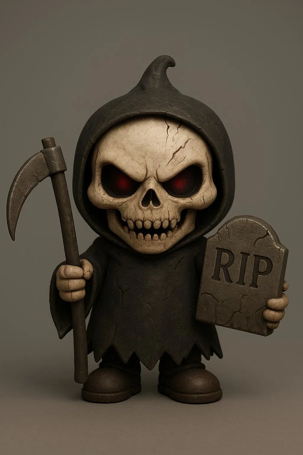 Tỷ lệ chibi vui nhộn với các chi tiết bộ xương rùng rợn Bao gồm áo choàng, lưỡi hái và bia mộ Được thiết kế để in chắc chắn và dễ sơn Cấu trúc nhỏ gọn, bền bỉ