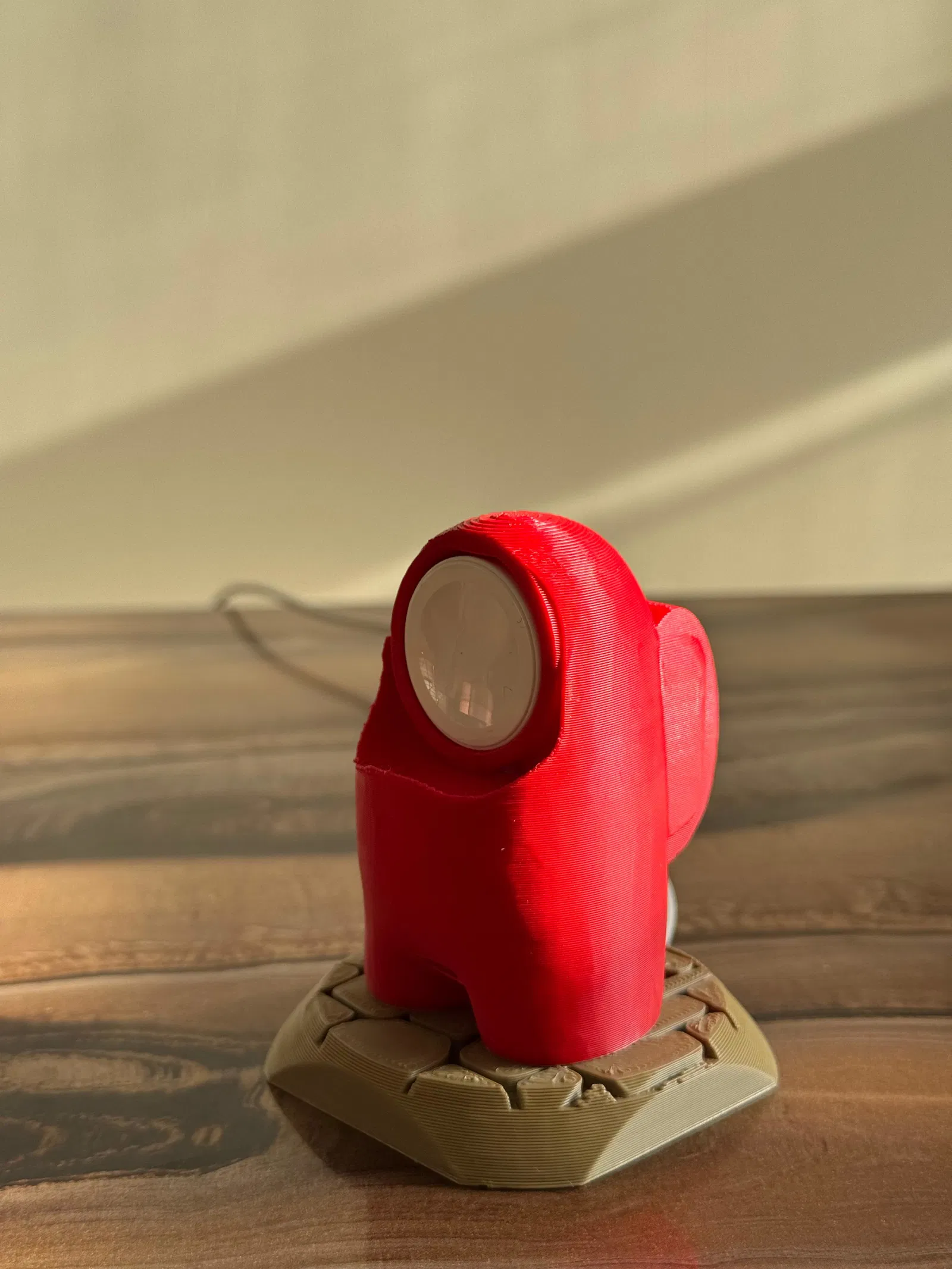 Dành cho các fan của Among Us. Đây là một cái đế sạc nho nhỏ vui nhộn mà mình đã làm tặng cho người yêu mình, cô ấy đang dùng Apple Watch SE. Đường kính cho phần sạc là 28mm, đây là kích thước tiêu chuẩn của sạc Apple Watch.