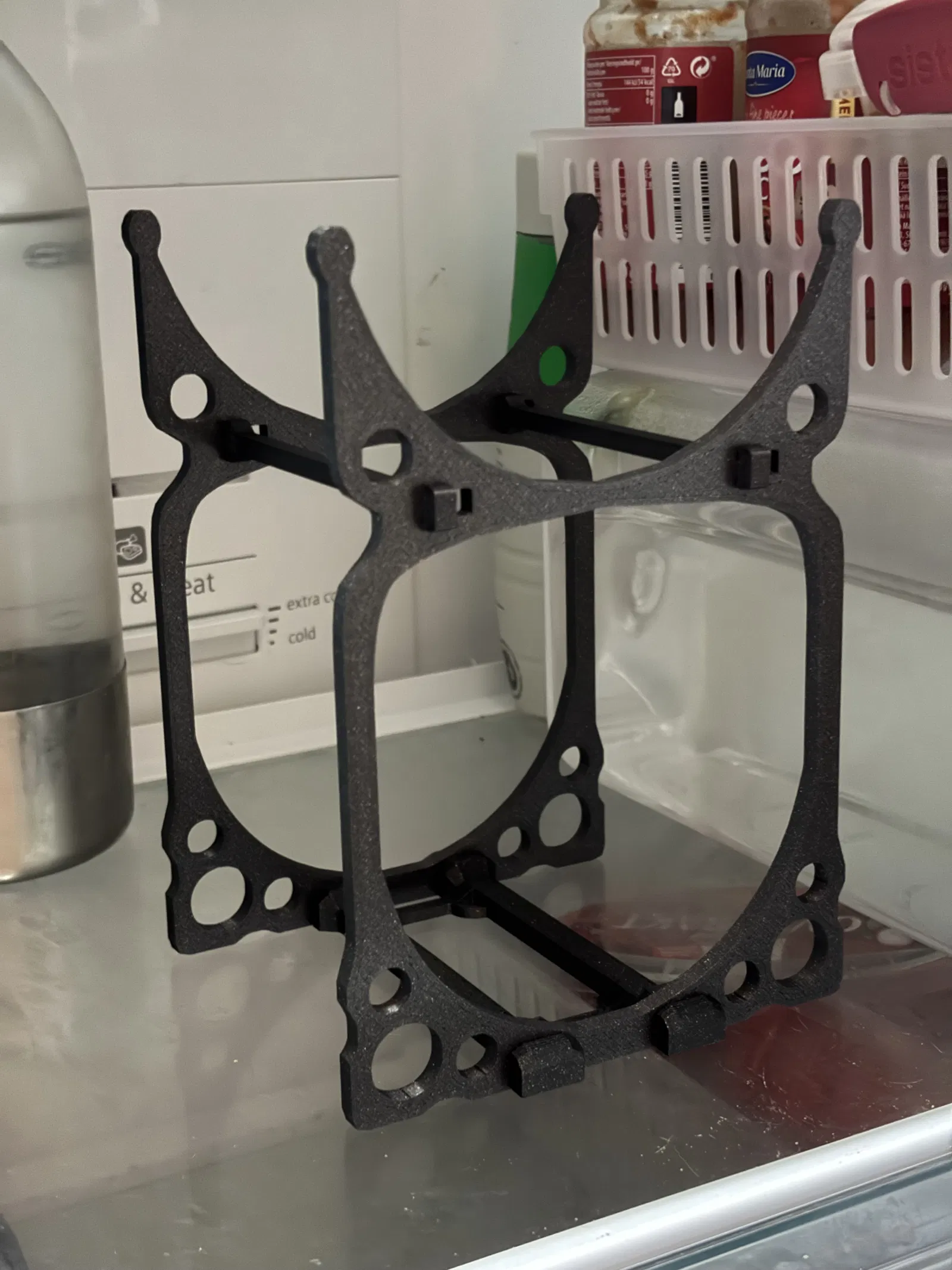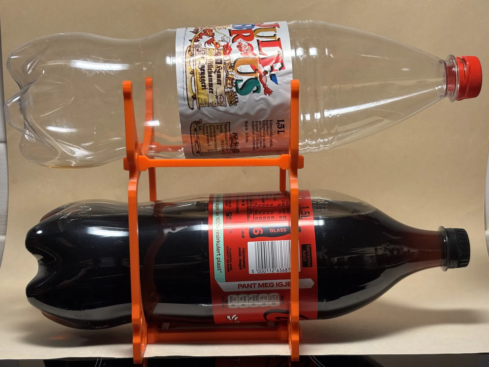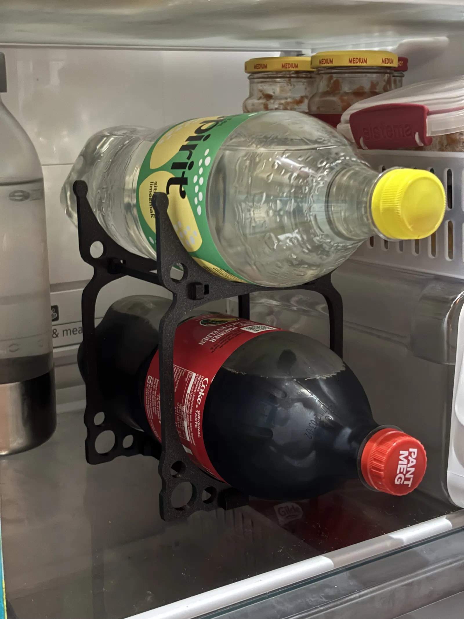 Bạn muốn tiết kiệm không gian tủ lạnh bằng cách xếp chồng hai chai nước ngọt 1,5L lên nhau? Giá đỡ này sẽ giúp bạn. Thiết kế đơn giản, chắc chắn, dễ lắp ráp và tháo rời, in ấn không cần hỗ trợ hay đế chống. Sản phẩm đầu tay của người mới làm quen với in 3D.