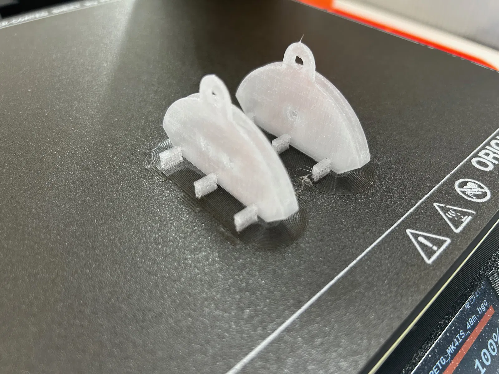 Xem hình trên bản in. Mã Bg cho mỗi cái bao gồm hỗ trợ cho các tấm giằng và vành để hỗ trợ độ bám dính và độ ổn định khi in. Các tấm giằng là một phần của STL, chúng chỉ được gắn bằng các đoạn 0.5mm và có thể dễ dàng làm sạch cùng với vật liệu hỗ trợ. Các STL sẽ yêu cầu bạn tự thêm hỗ trợ & vành (được khuyến nghị). Các lỗ (bao gồm cả dây buộc) không cần hỗ trợ.