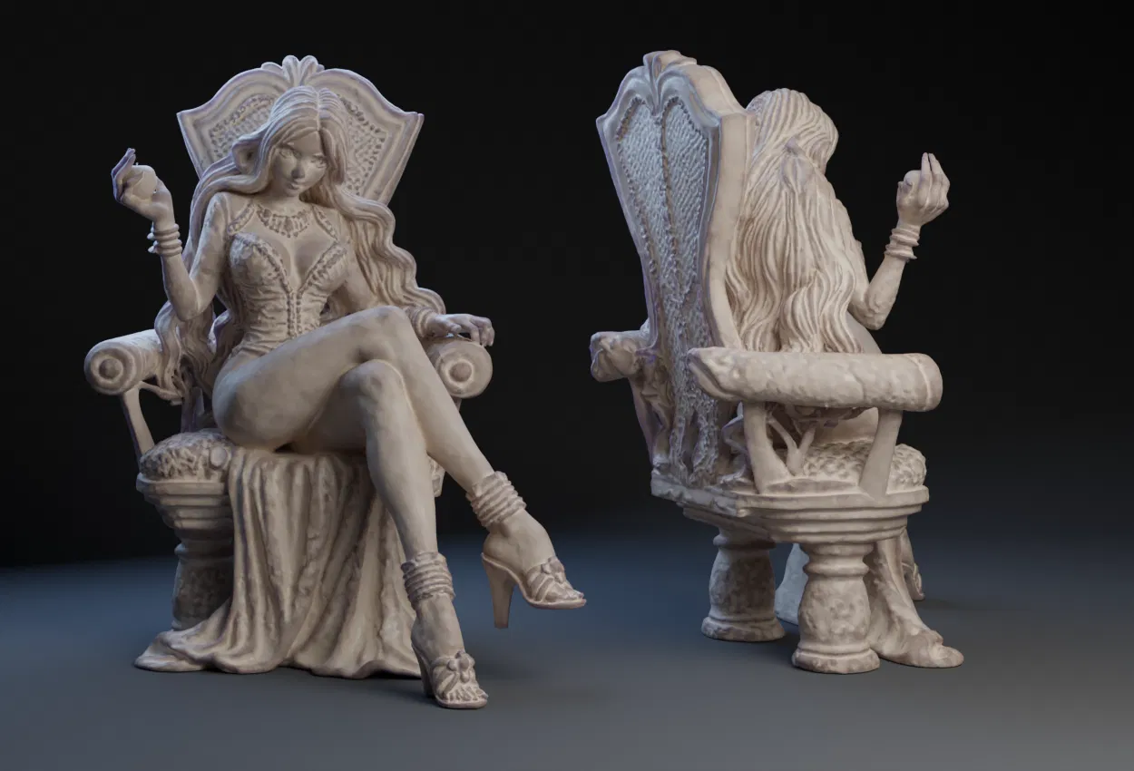 Mô hình 3D 'Eve và Táo' mô tả hình ảnh Eva đang thư giãn bên quả táo, gợi lên một câu chuyện ngụ ngôn đầy ý nghĩa. Thích hợp cho các dự án in 3D liên quan đến chủ đề tôn giáo, thần thoại hoặc nghệ thuật.