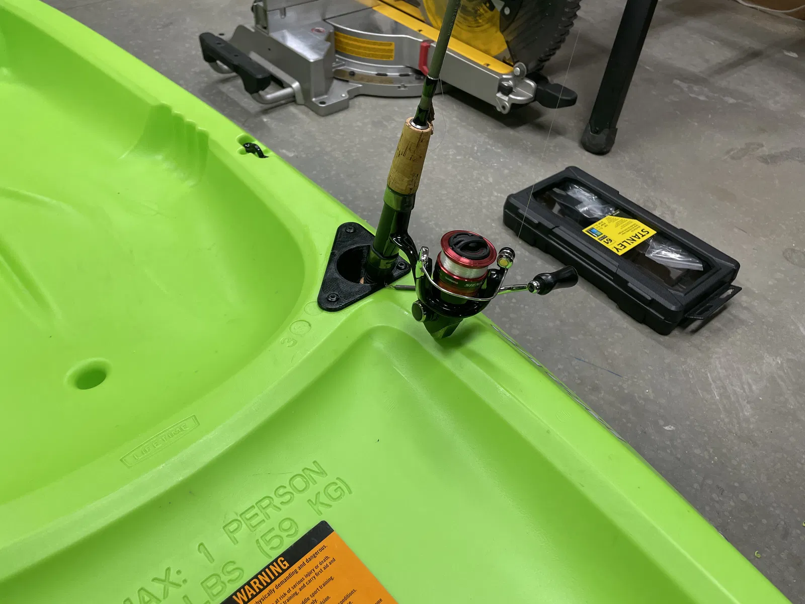 Giá đỡ cần câu gắn âm cho thuyền kayak Lifetime Youth Wave. Kích thước 6in, có thể in mẫu mặt bích để làm khuôn cắt. Gắn bằng keo silicone và tán rút.
