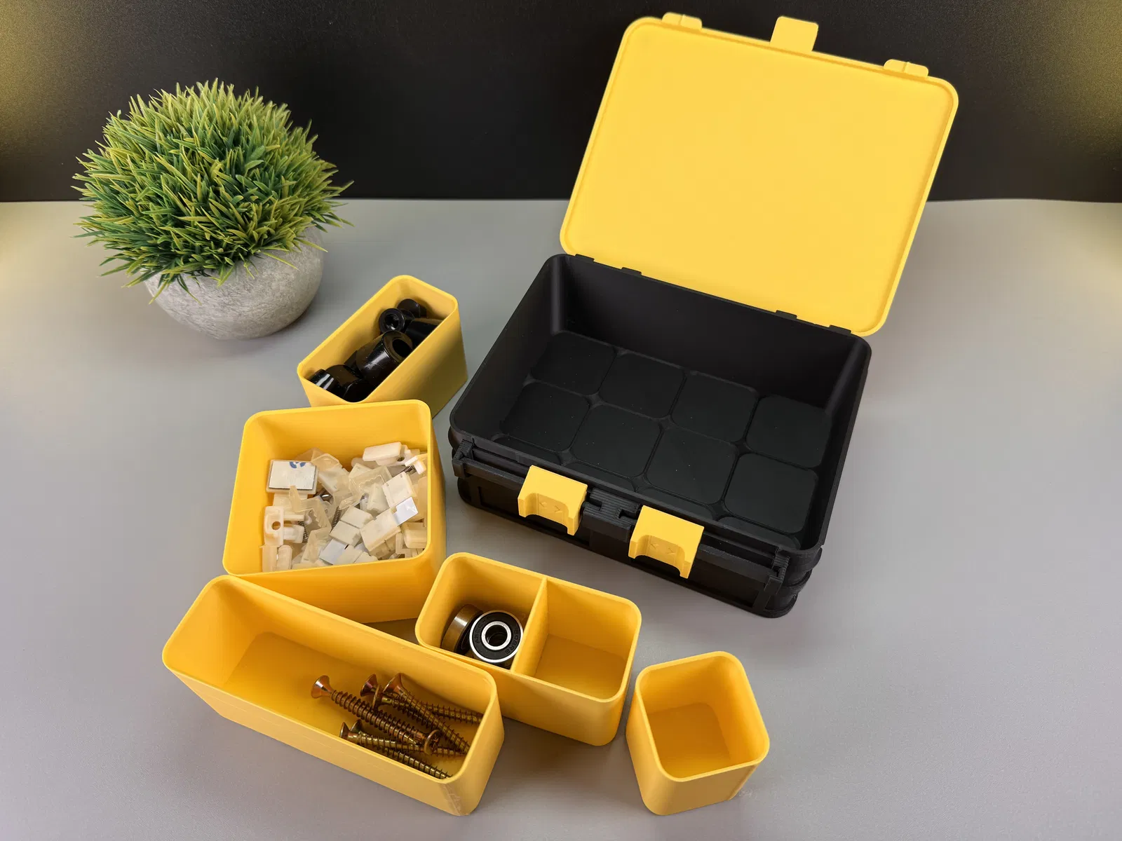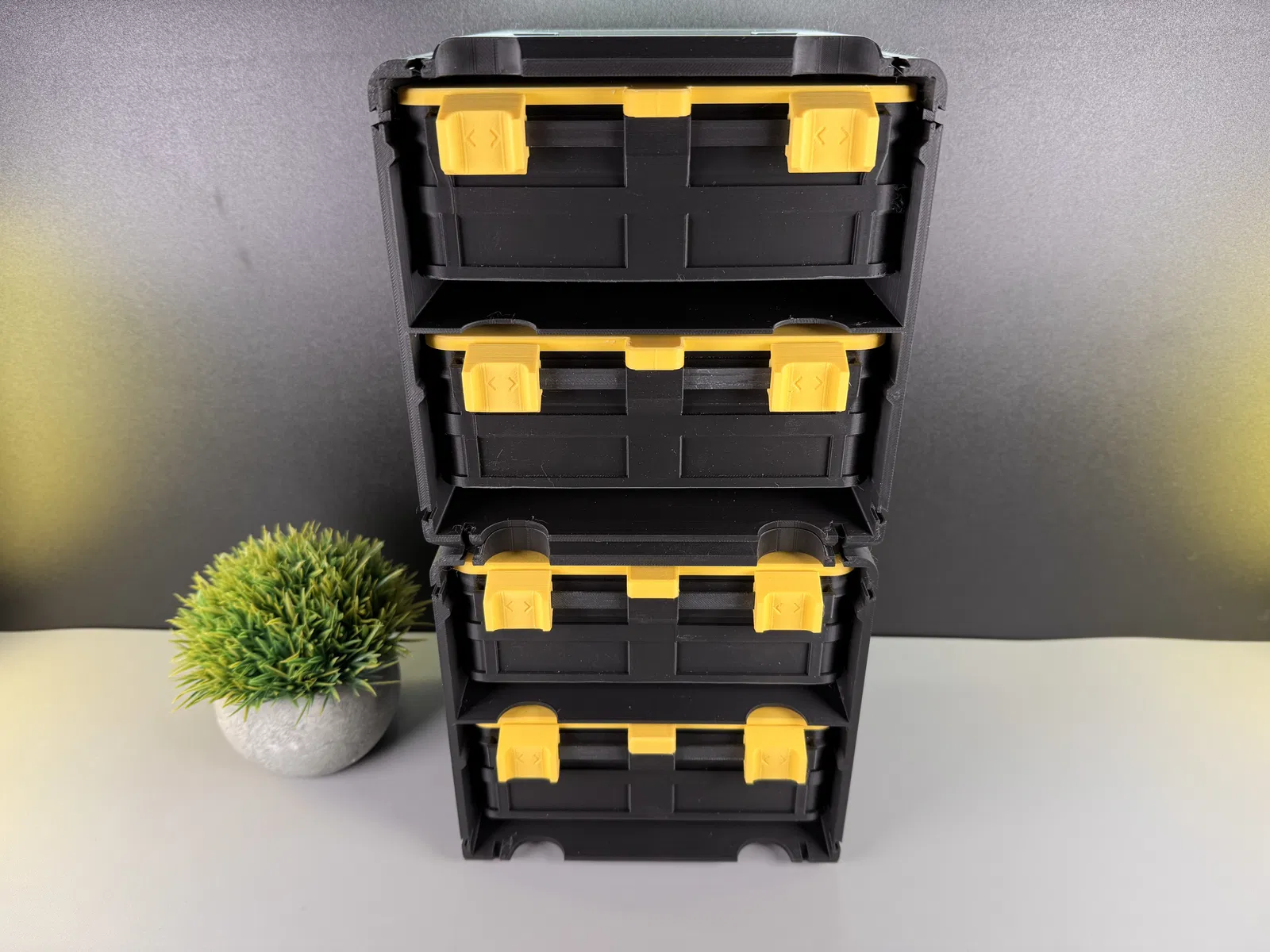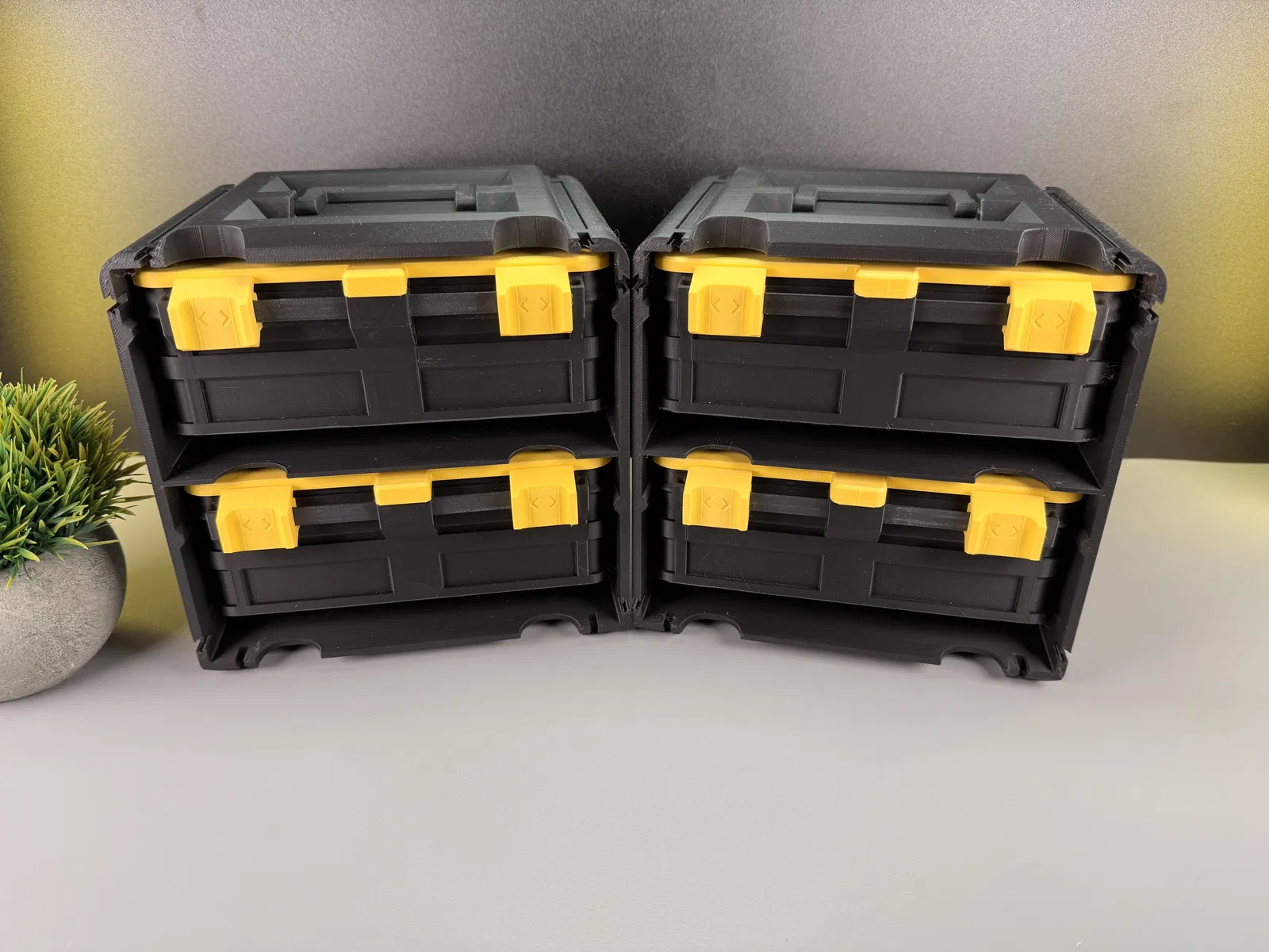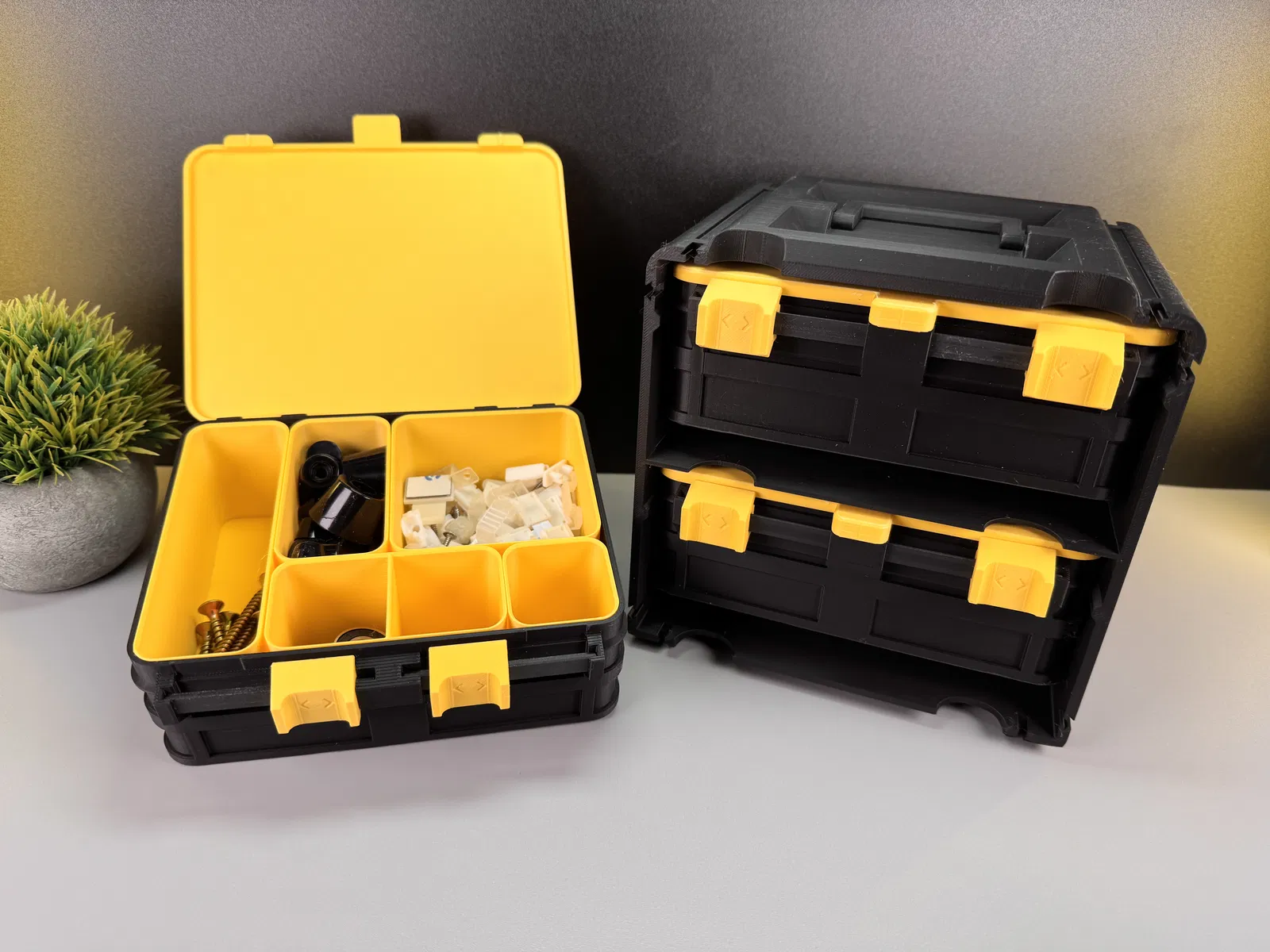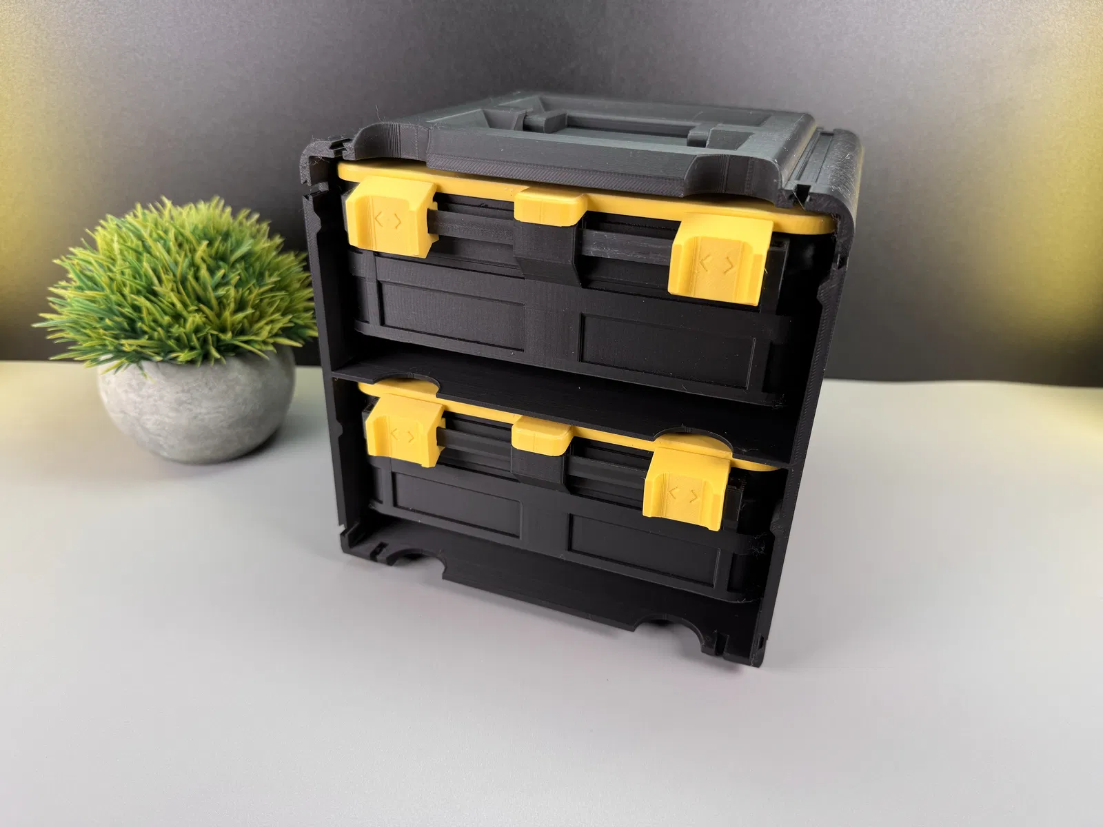 Mẫu Hộp Đựng Đồ Nhỏ Đôi này có cơ chế trượt khóa, các hộp có thể xếp chồng và kết nối với nhau. Phiên bản này cao gấp đôi, được gia cố và các ngăn bên trong đã được làm lại. Hướng dẫn in chi tiết và mẹo khắc phục sự cố cũng được cung cấp để đảm bảo hoạt động hoàn hảo.