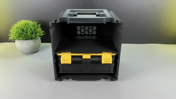 Cái hộp đựng đồ này (Phiên bản Nhỏ Đôi) có cơ chế trượt có thể khóa lại. Các hộp có thể được cất vào khay giữ với số lượng lên đến 2 cái. Bạn có thể kết nối các khay giữ với nhau bằng các khớp nối theo bất kỳ hướng nào và giữ chúng lại với nhau. Các ngăn thì có đủ mọi kích cỡ, nhưng mình sẽ bổ sung thêm theo thời gian nha!