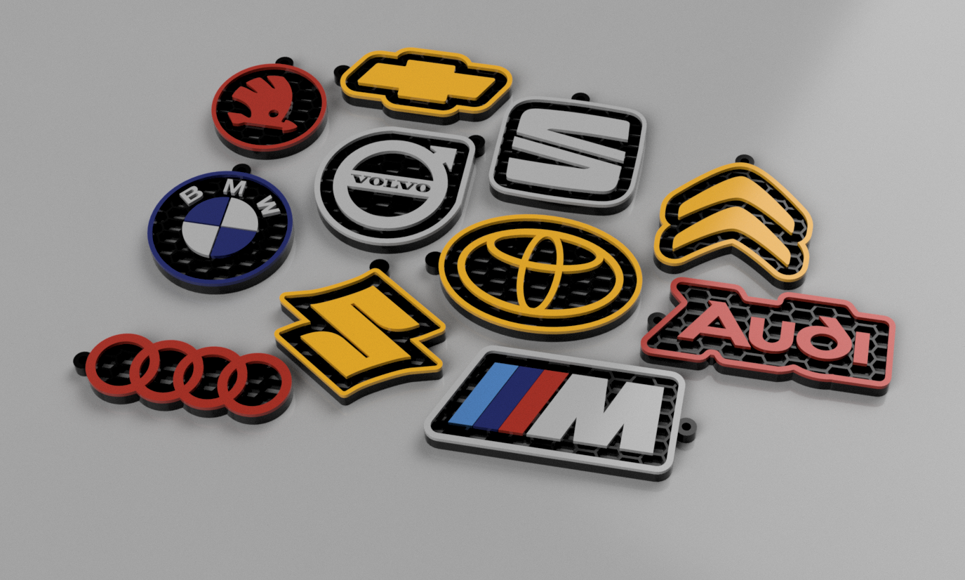 Tui đã thiết kế loạt móc khóa kiểu tổ ong với logo các hãng xe. Thiết kế vừa phong cách, vừa bền, dễ in. Tuyệt vời cho dân mê xe hoặc làm quà tặng cá nhân. Để lại bình luận nếu thích nha!