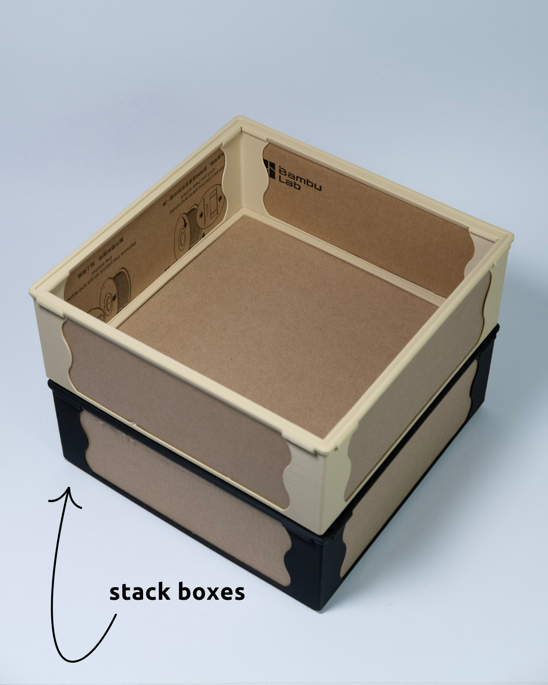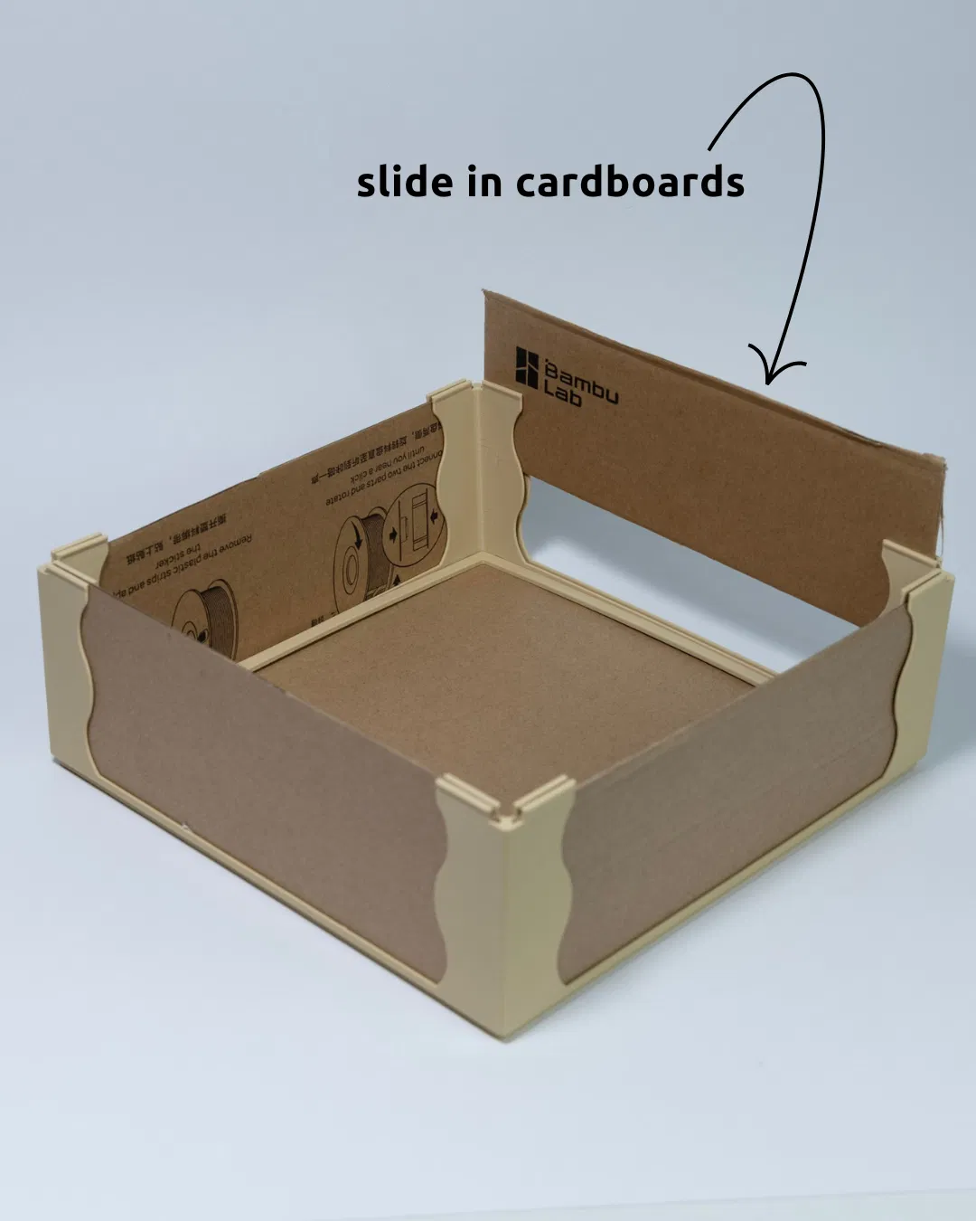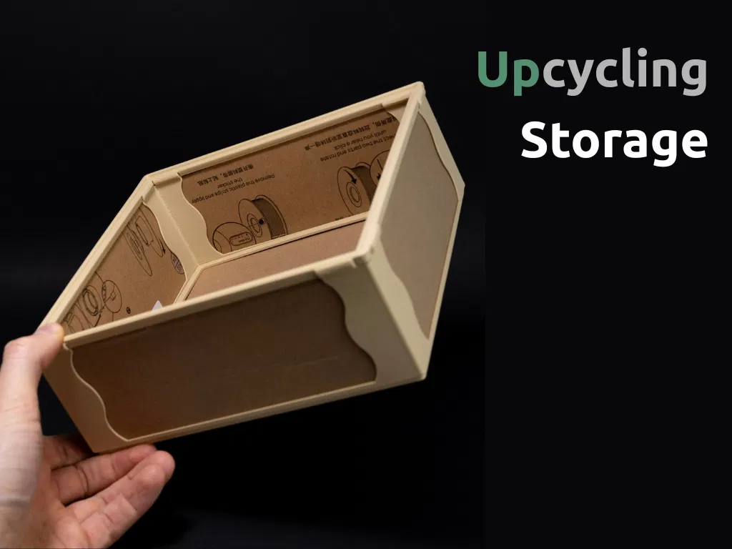 Biến hộp đựng filament cũ thành hộp lưu trữ module, tái chế. Chỉ cần cắt hộp giấy và trượt vào khung in 3D là có ngay hộp mới, không cần keo hay ốc vít. Thiết kế phù hợp cho hộp giấy BambuLab 184x184mm và 195x195mm.