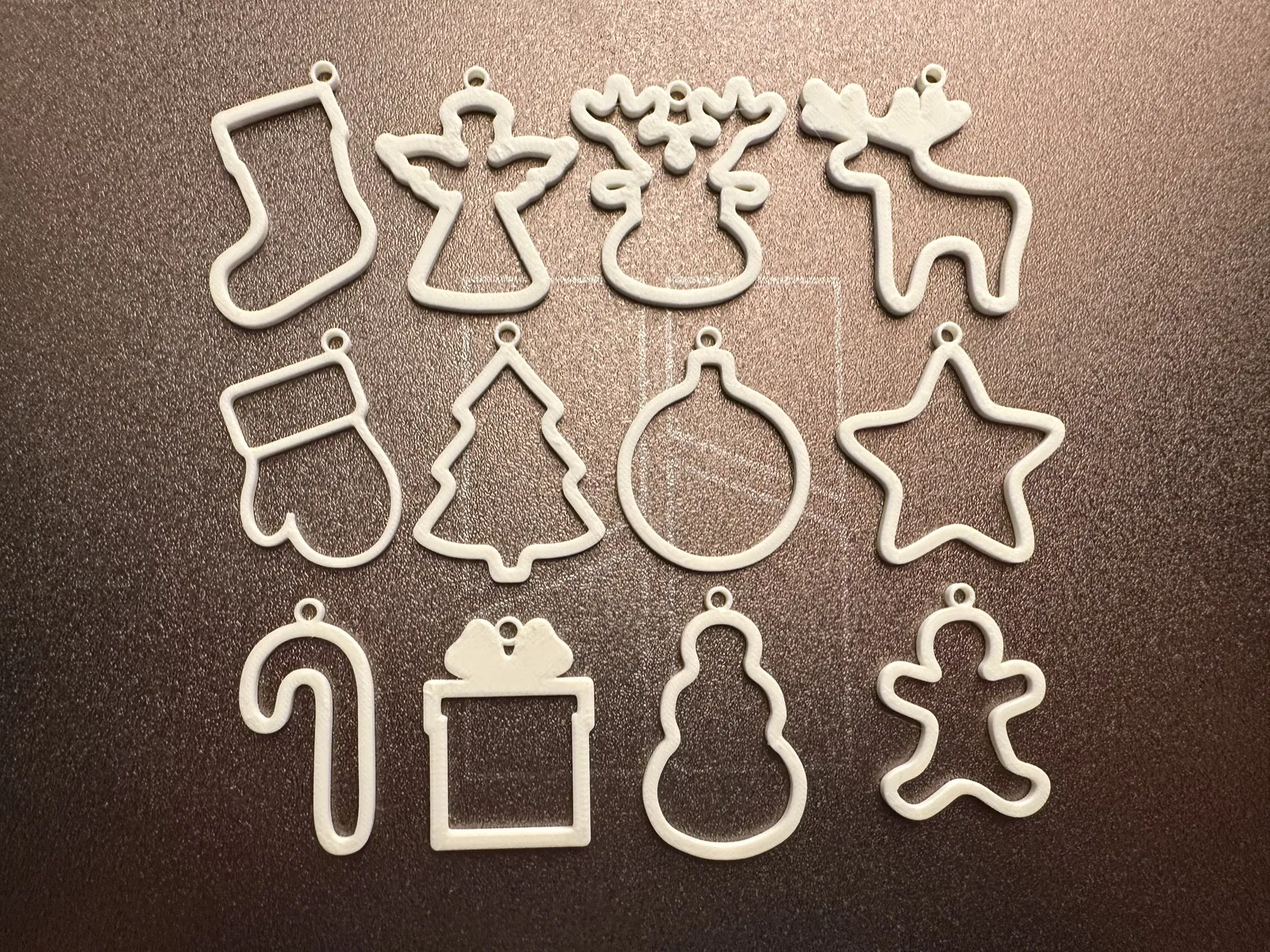 Những món đồ trang trí kiểu dáng phác thảo, nhẹ nhàng này in nhanh, phẳng, và không cần support. Hoàn hảo cho cây thông Noel, gói quà, vòng nguyệt quế, đồ thủ công cho trẻ em, hoặc trang trí ngày lễ nói chung.