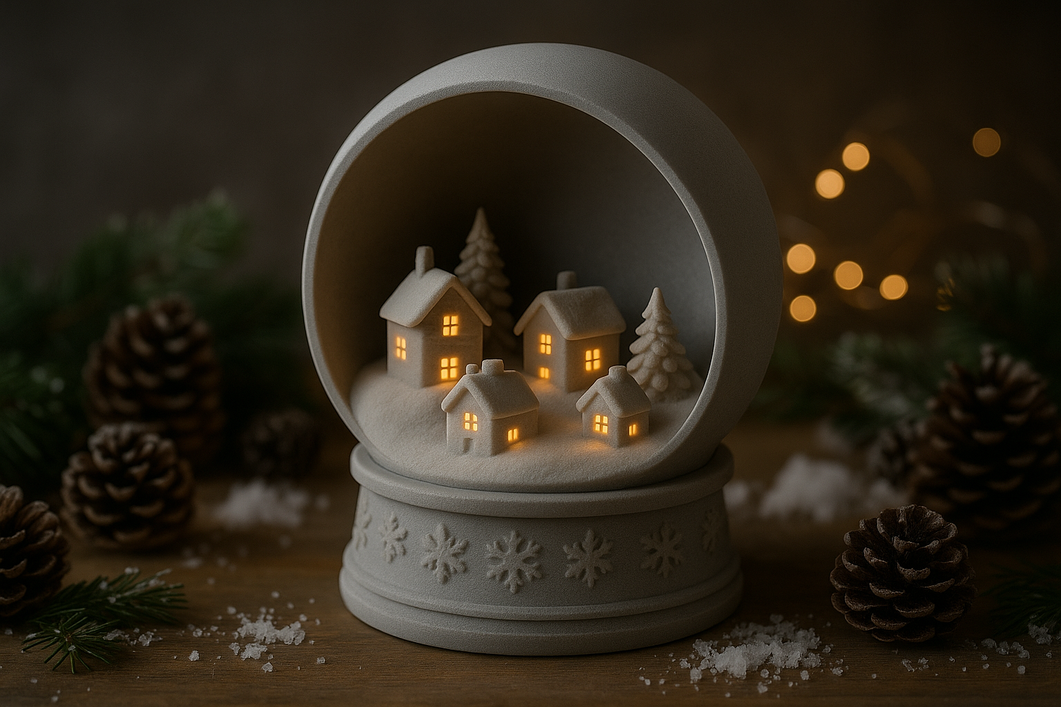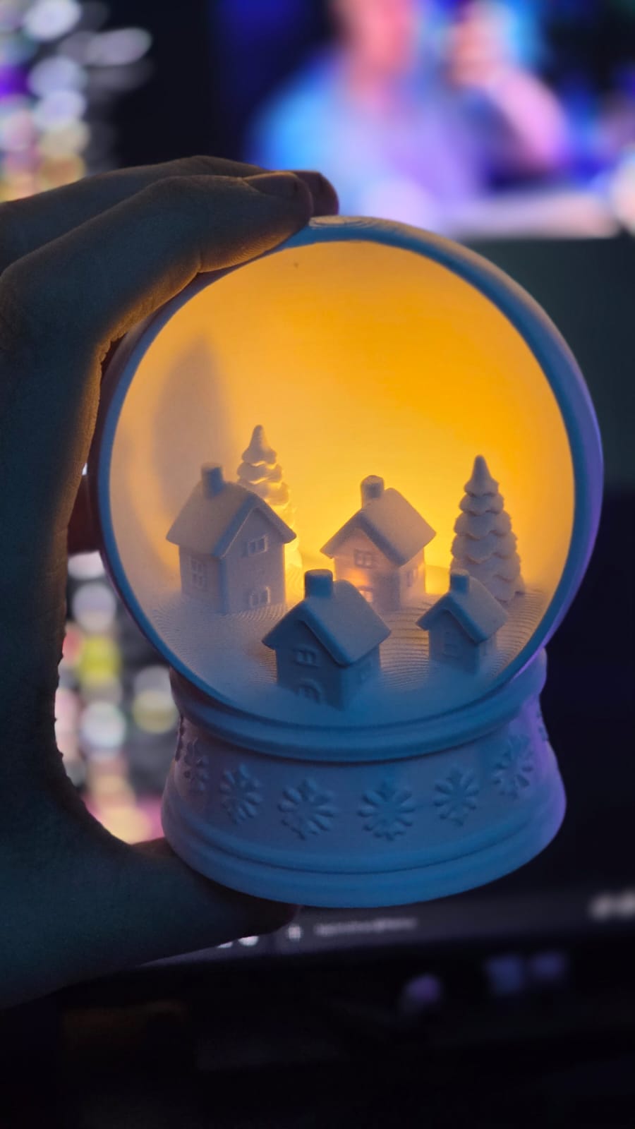 Khám phá mô hình 3D Quả Cầu Tuyết Làng Mùa Đông, một ngôi làng nhỏ phủ tuyết với ba ngôi nhà ấm áp, chân đế trang trí và tương thích với nến LED. Hoàn hảo cho mùa lễ hội!