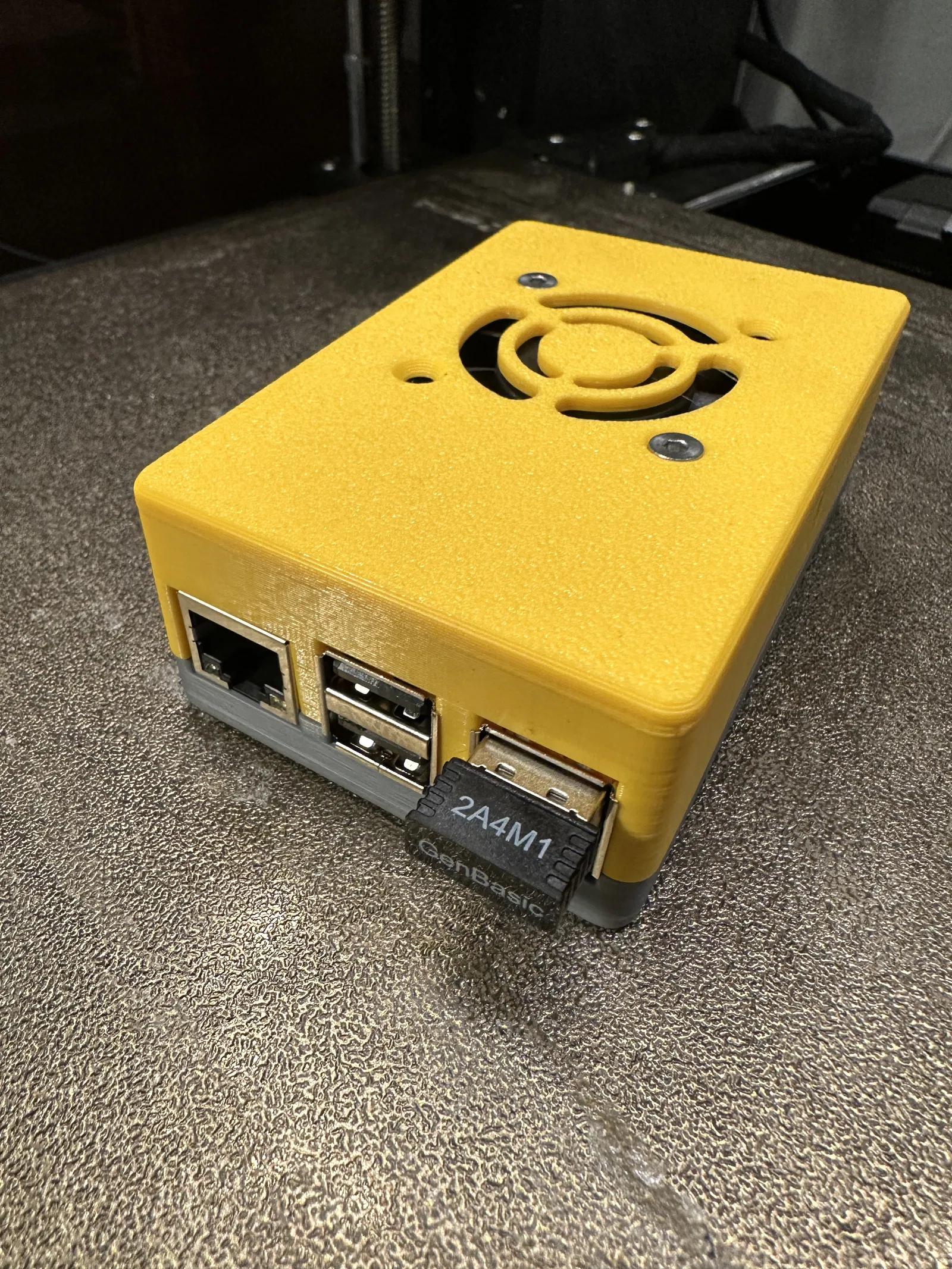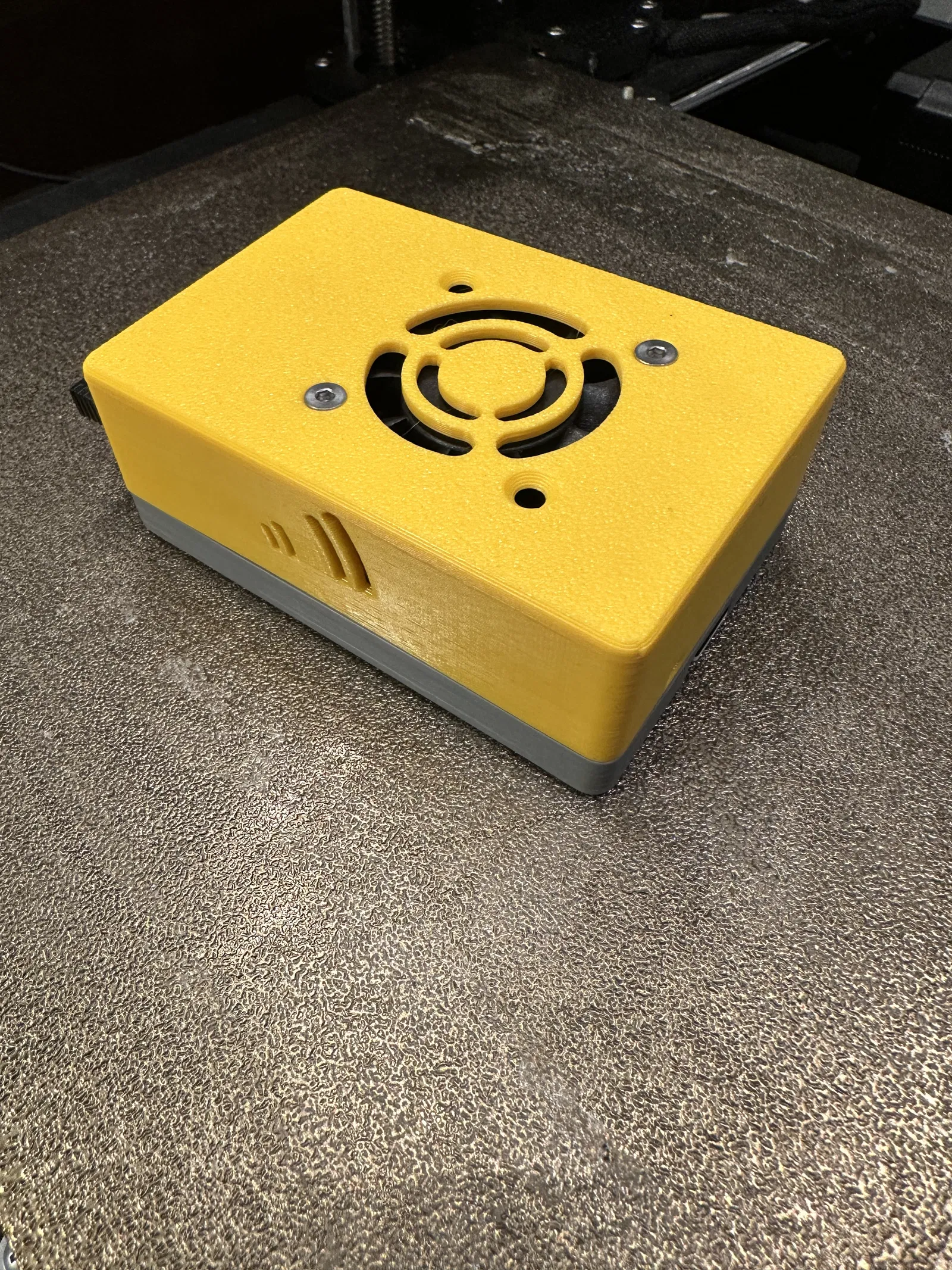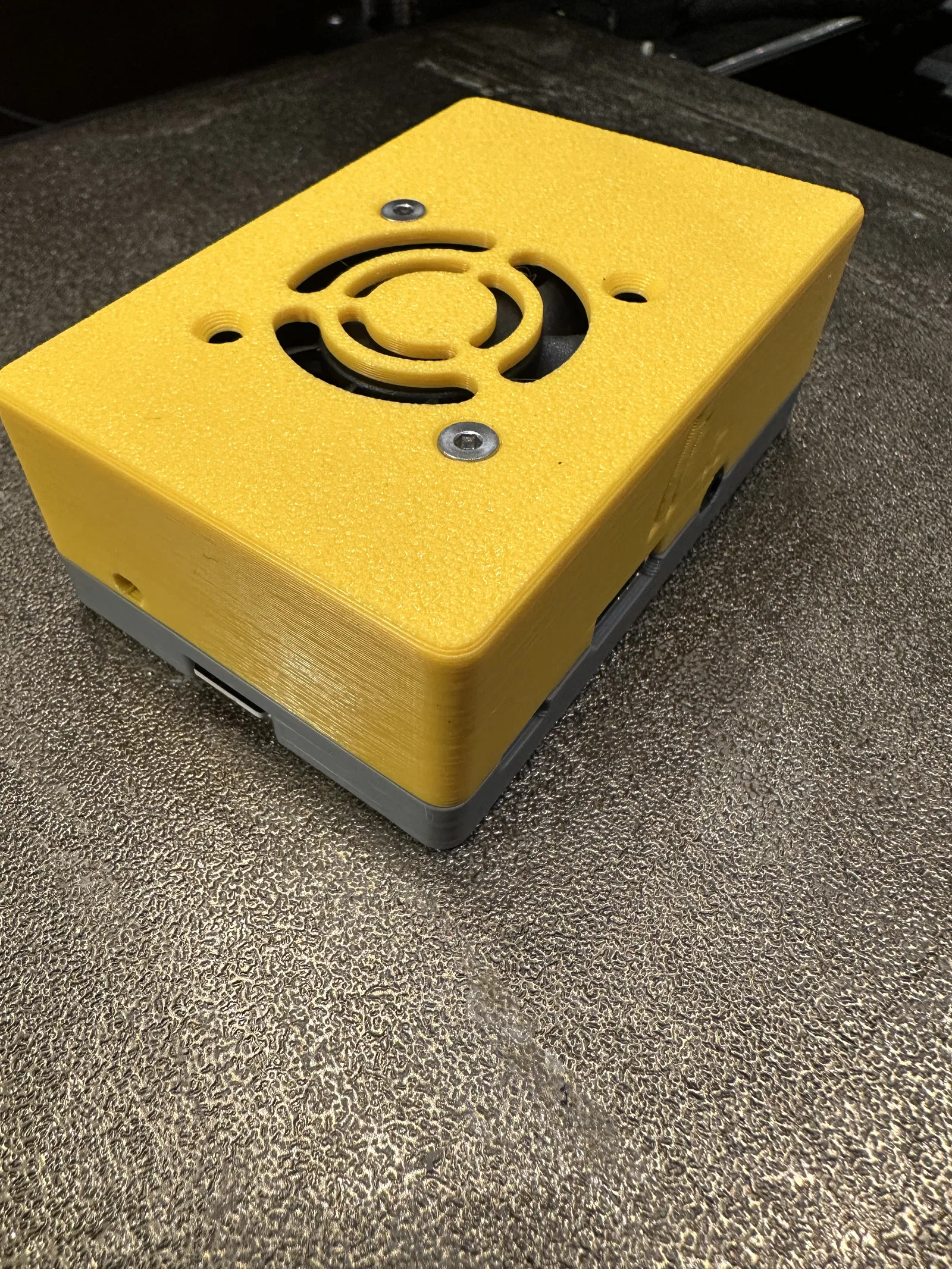 Phần trên có khoét cho quạt 40mm x 40mm với lỗ vít cỡ cho ốc M3. Có các khoét khác xung quanh vỏ để cho phép các kết nối dây khác nhau trên bo mạch được luồn ra bên ngoài vỏ.